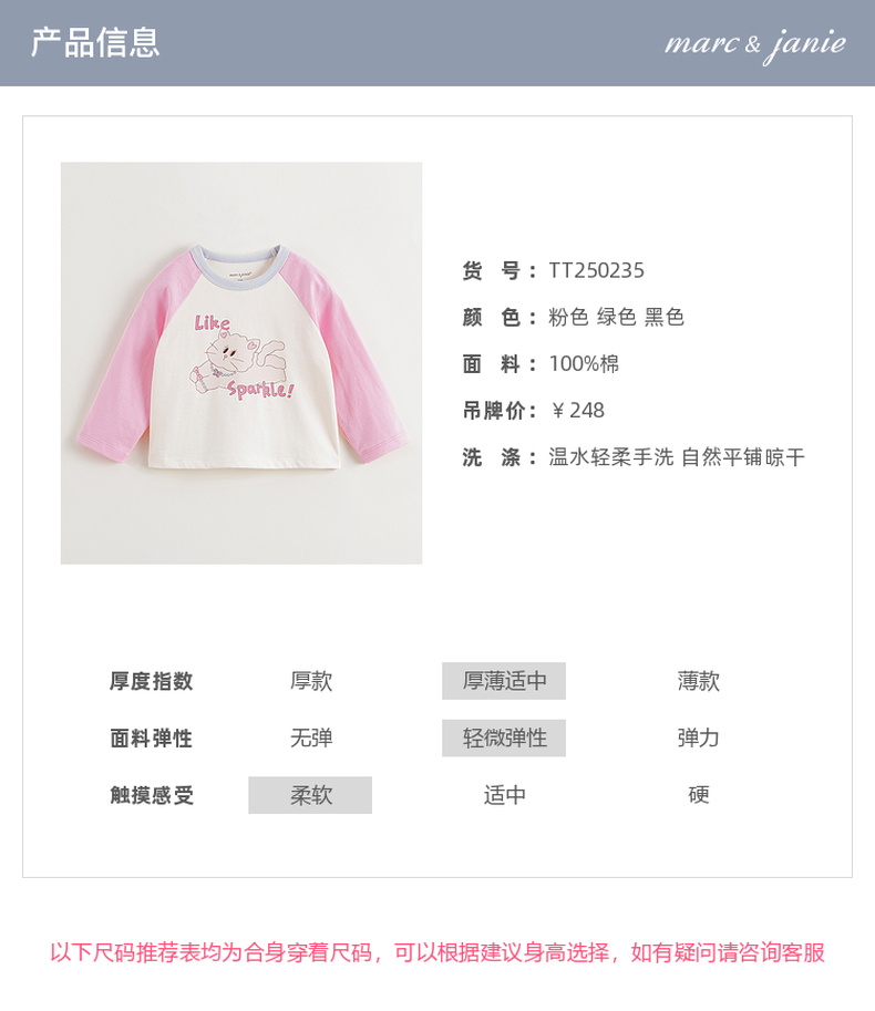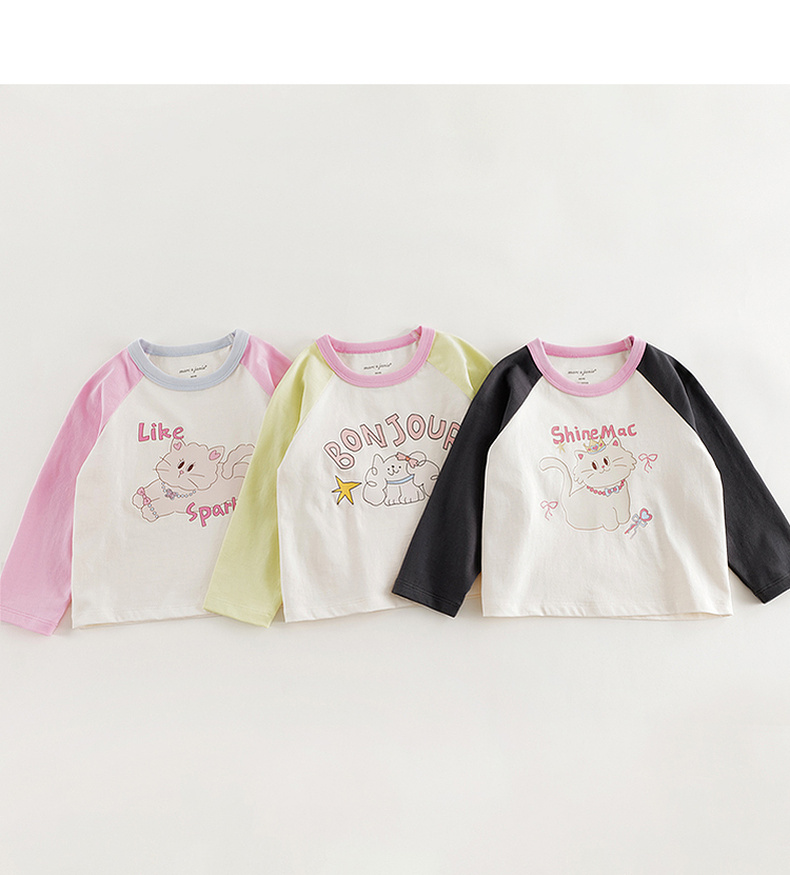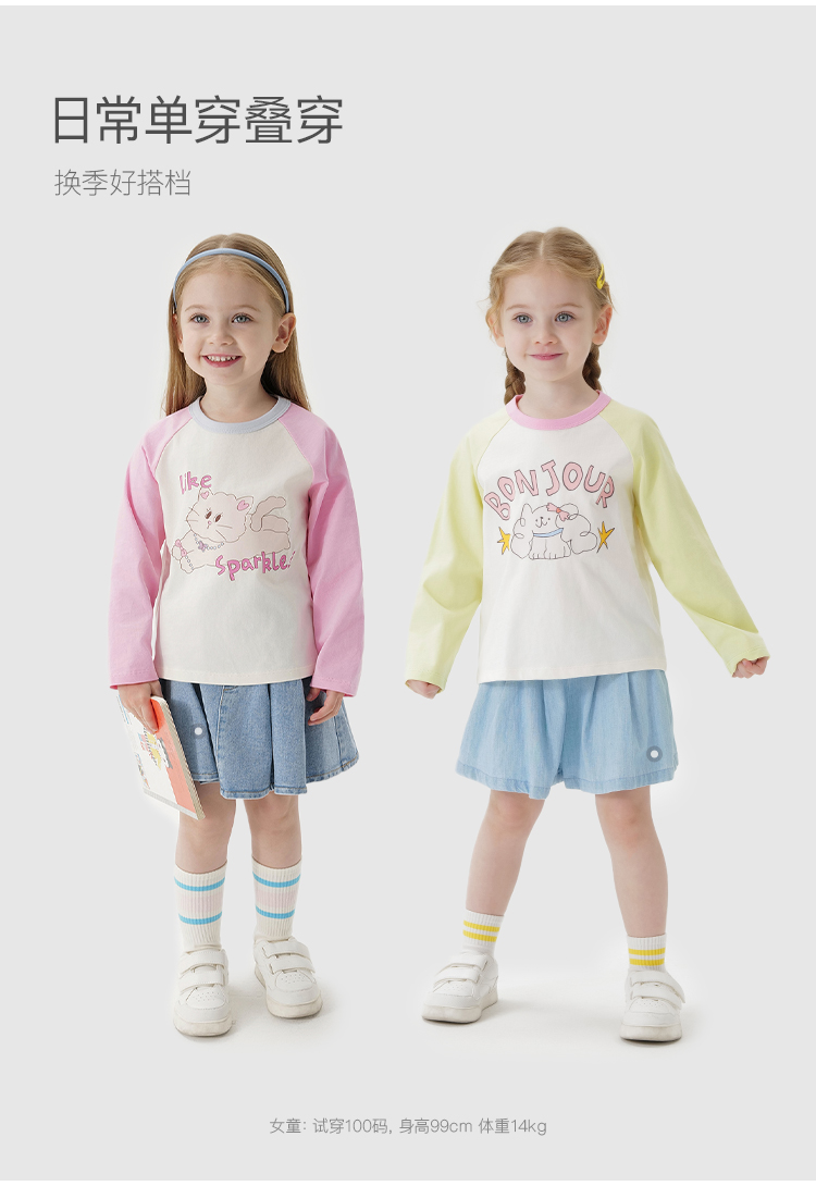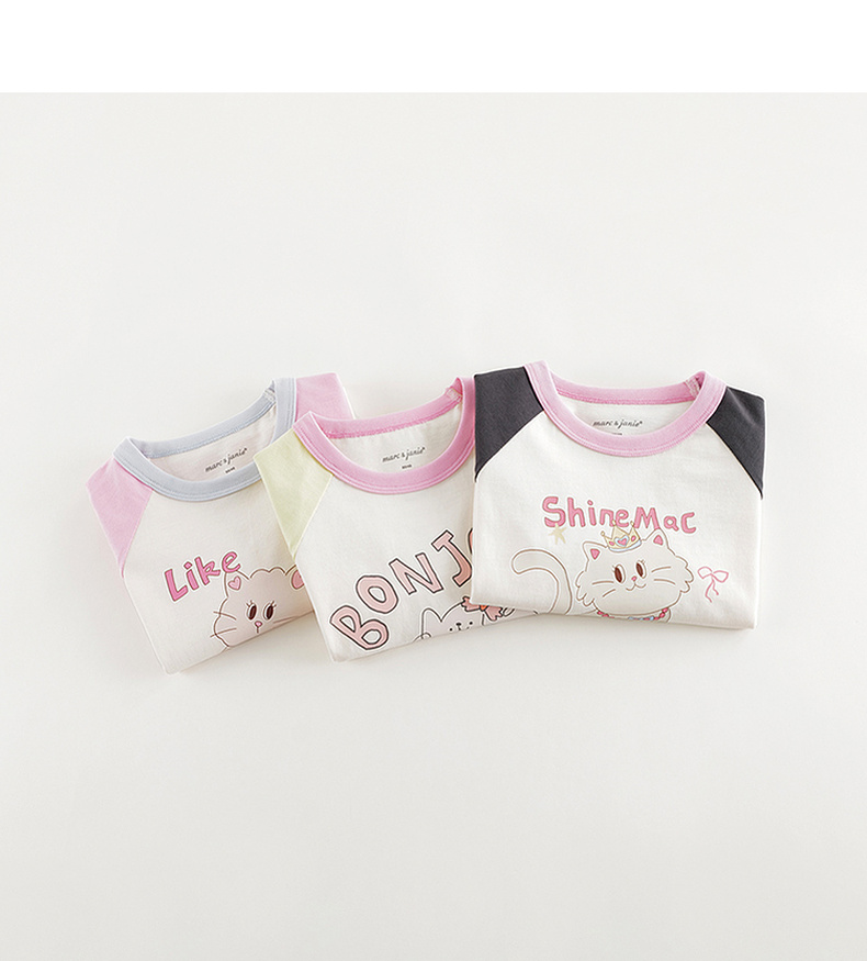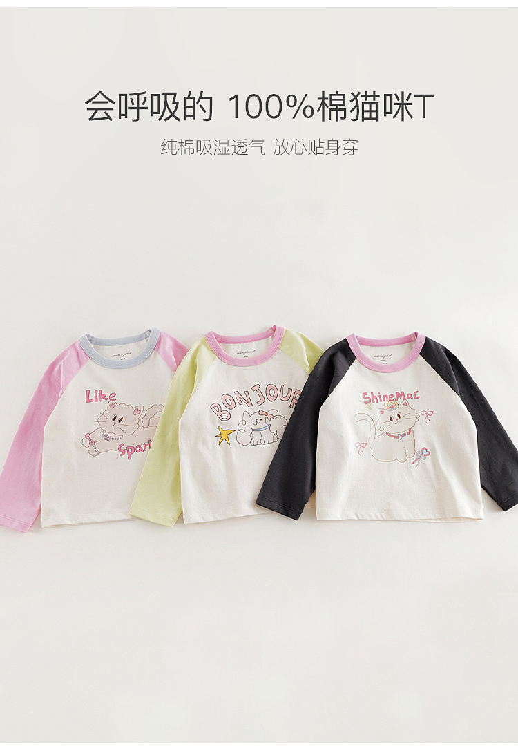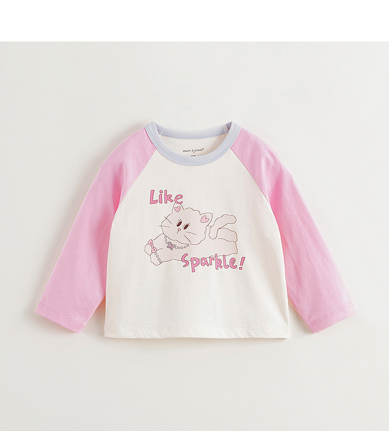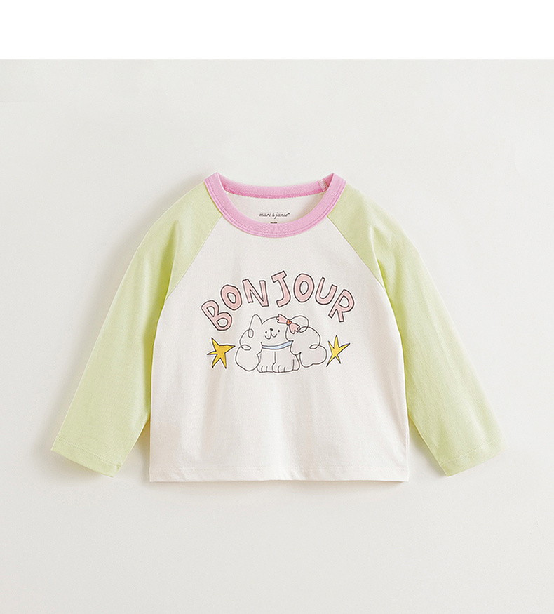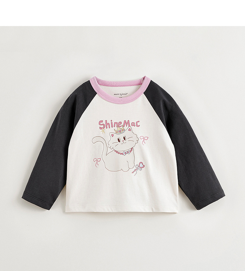 马克珍妮女童活力撞色插肩袖T恤 宝宝上衣2025年春装新款250235