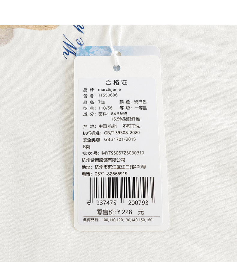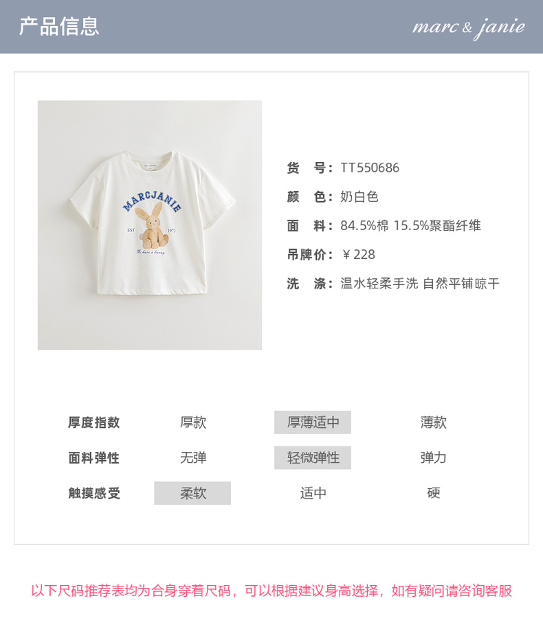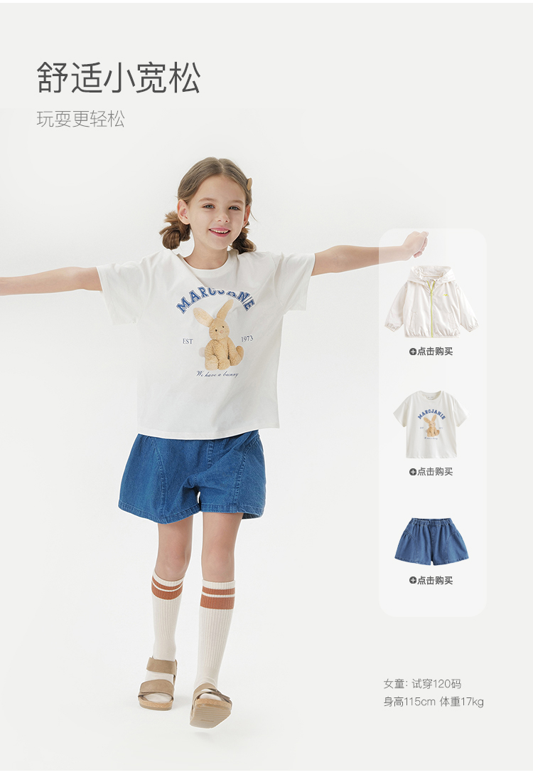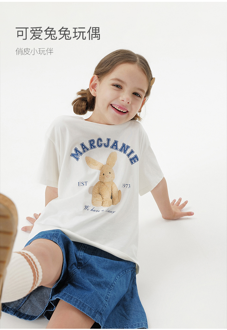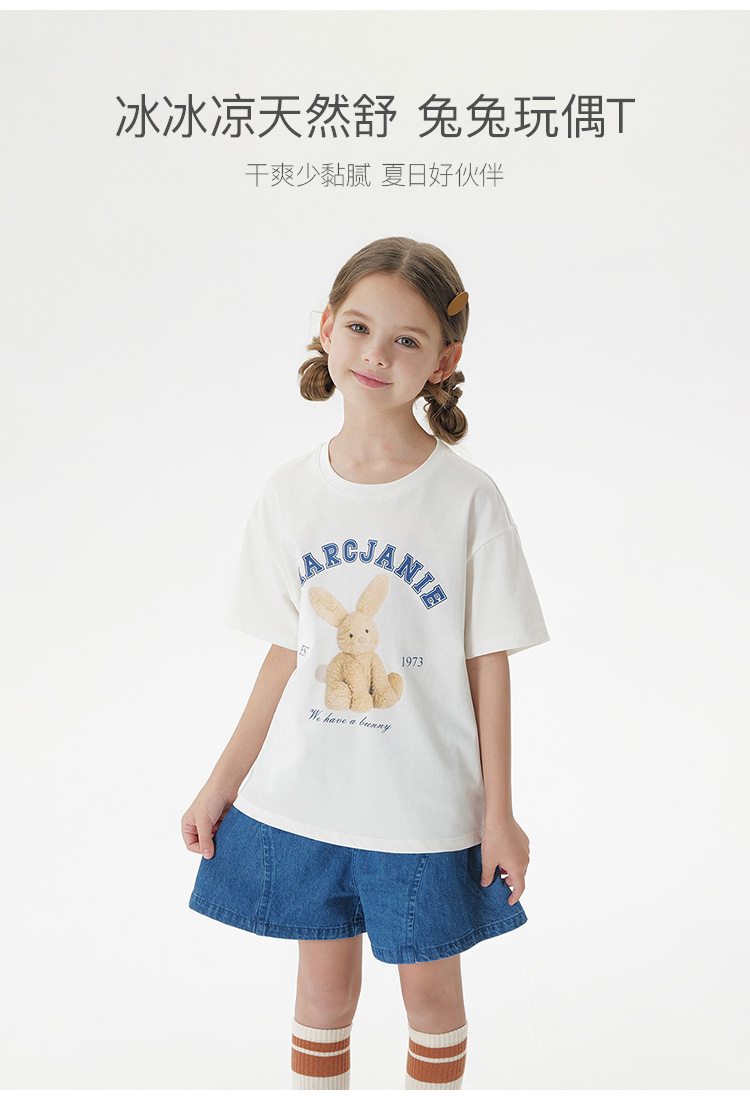 【凉感透气】马克珍妮女童兔兔玩偶短袖T恤2025年夏装新款550686
