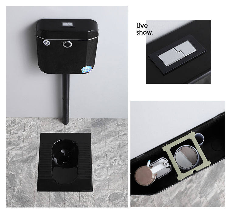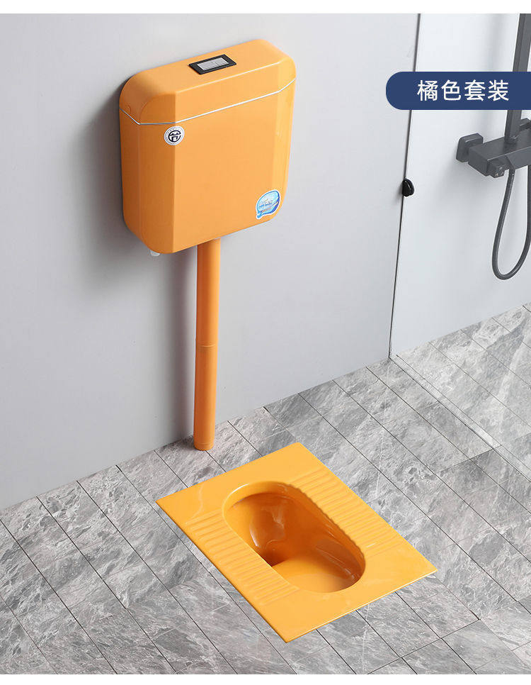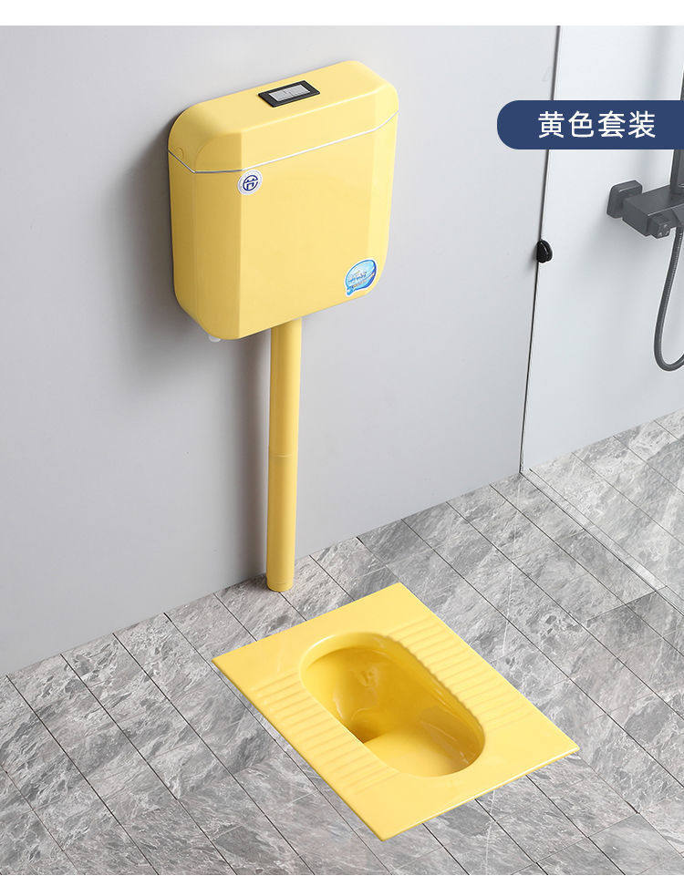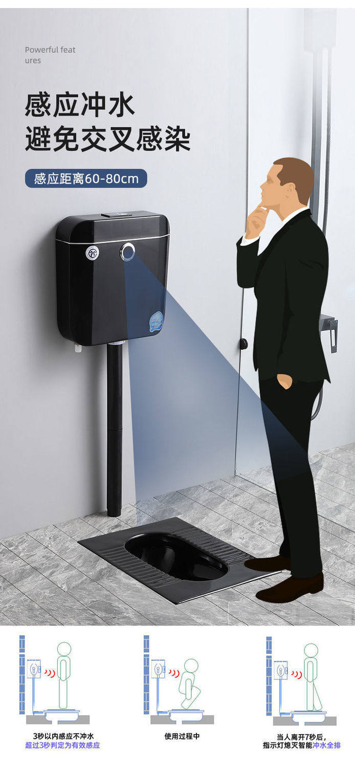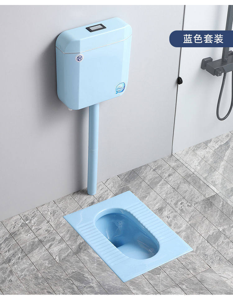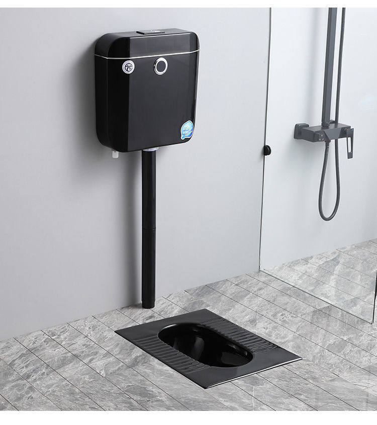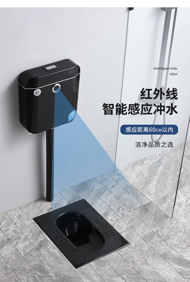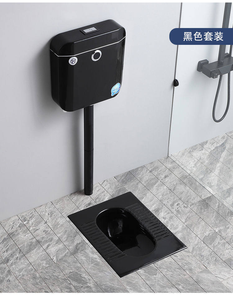 便池全黑陶瓷便器一整套水箱防臭蹲大黑色彩色感应成人蹲坑家用