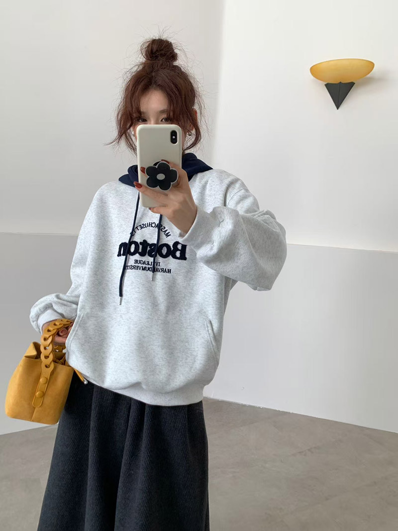 GZ毛巾绣字母撞色连帽卫衣(LH)(LD)-纪念日百货167096841