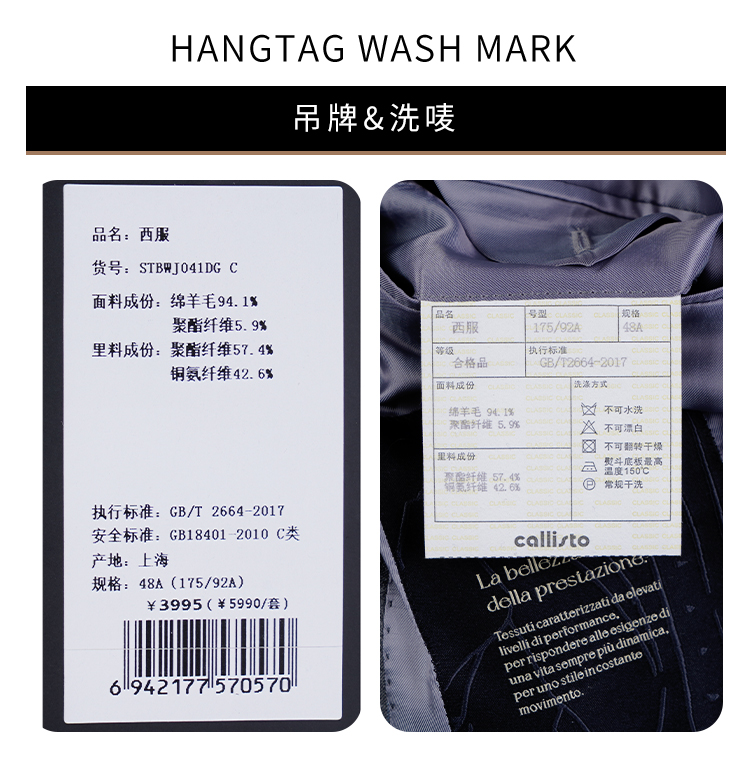 callisto高智系列山影灰黑色千鸟格绵羊毛西服