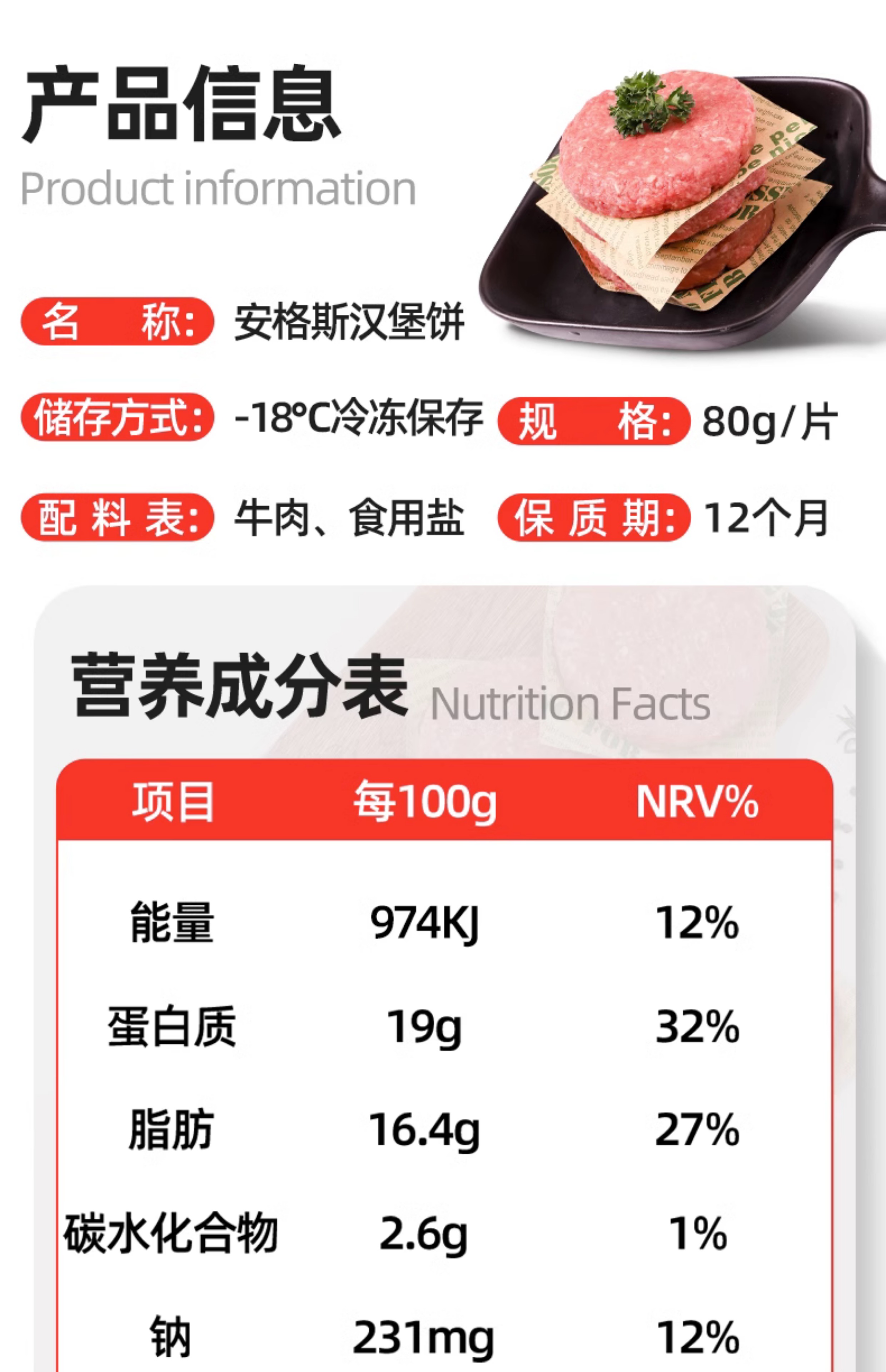 10片装*80g安格斯谷饲牛肉饼早餐半成品牛肉