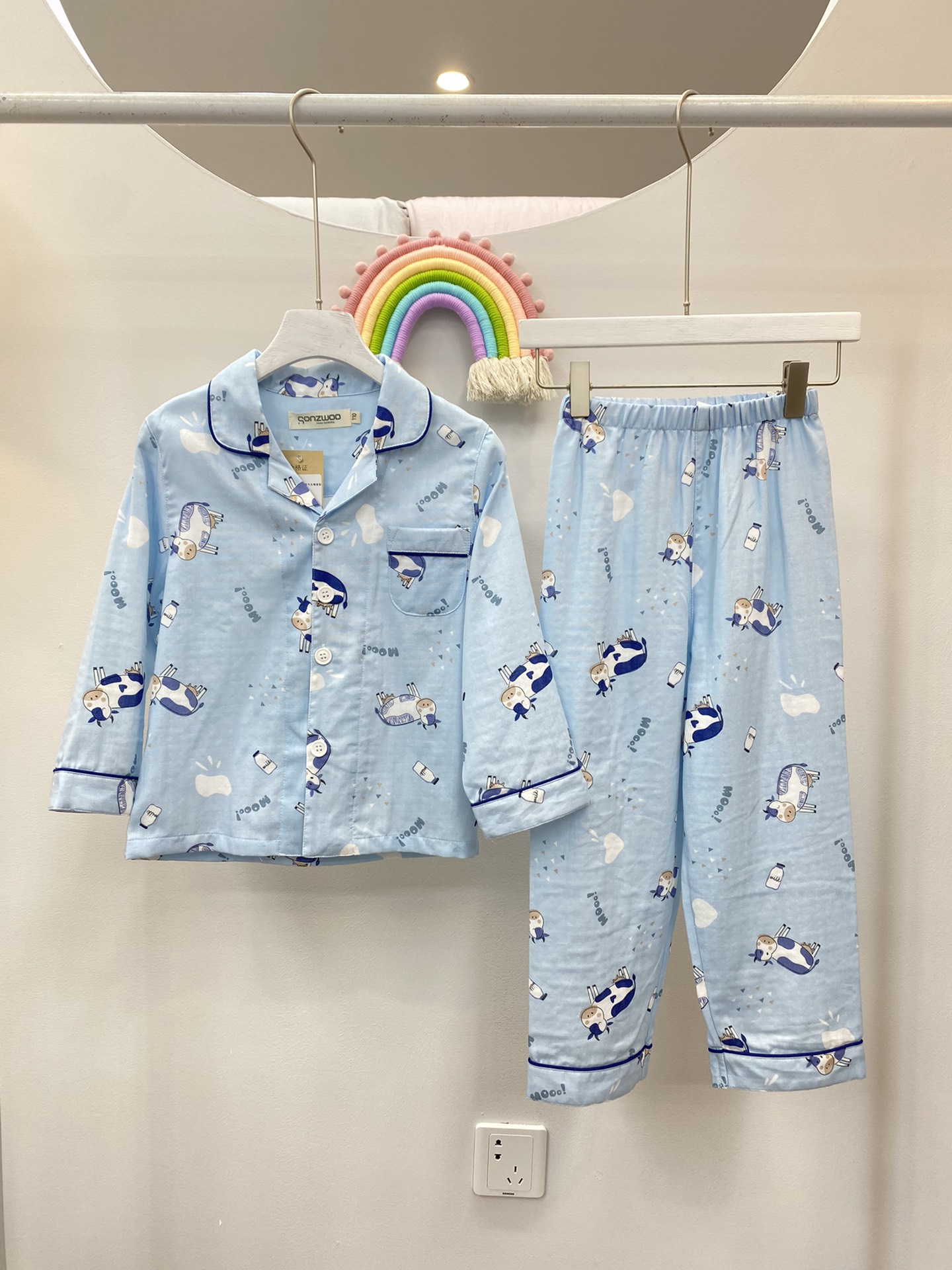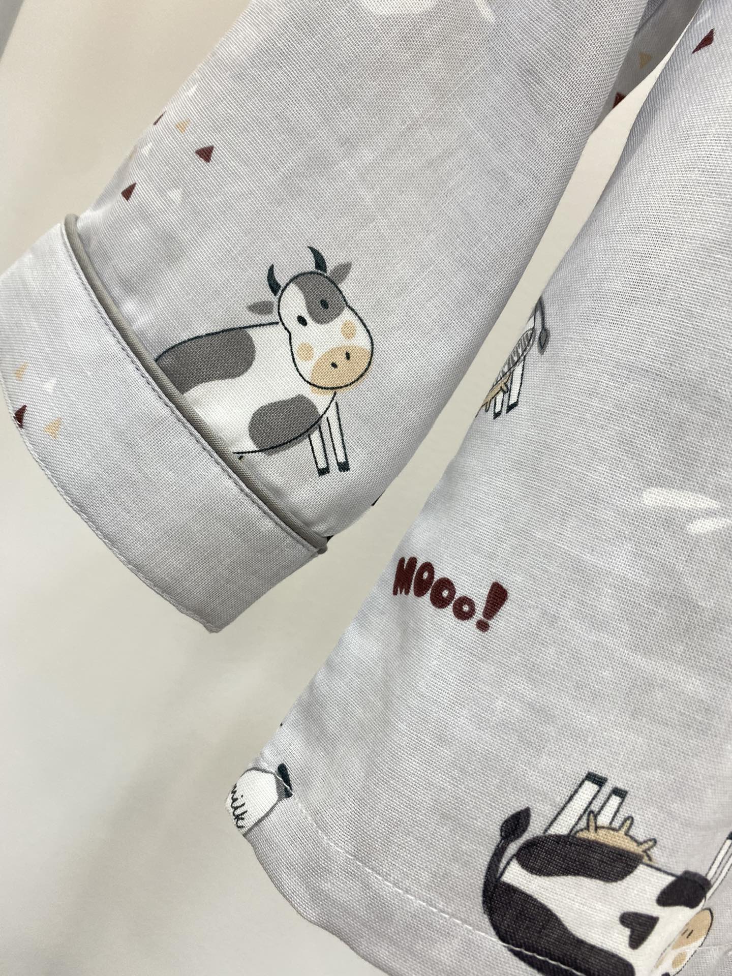 男童纱布可爱牛牛长袖套装 儿童全棉纱布睡衣家居服