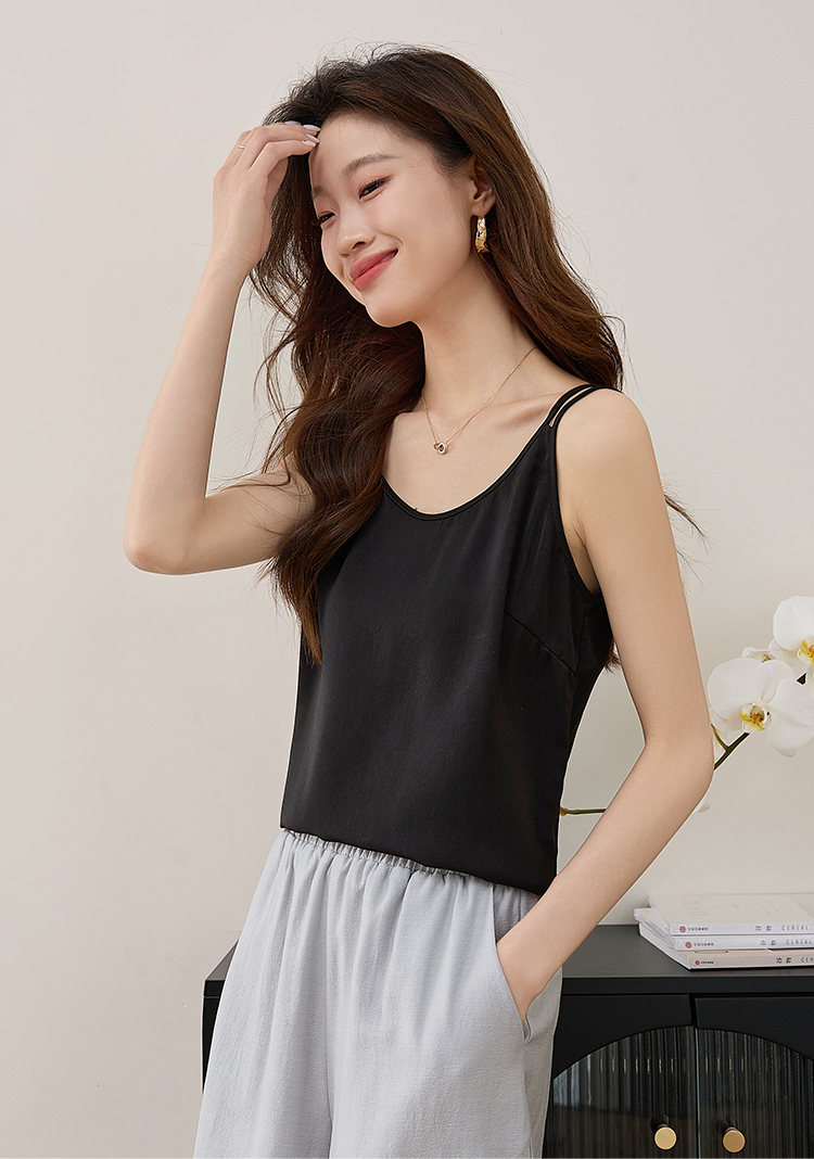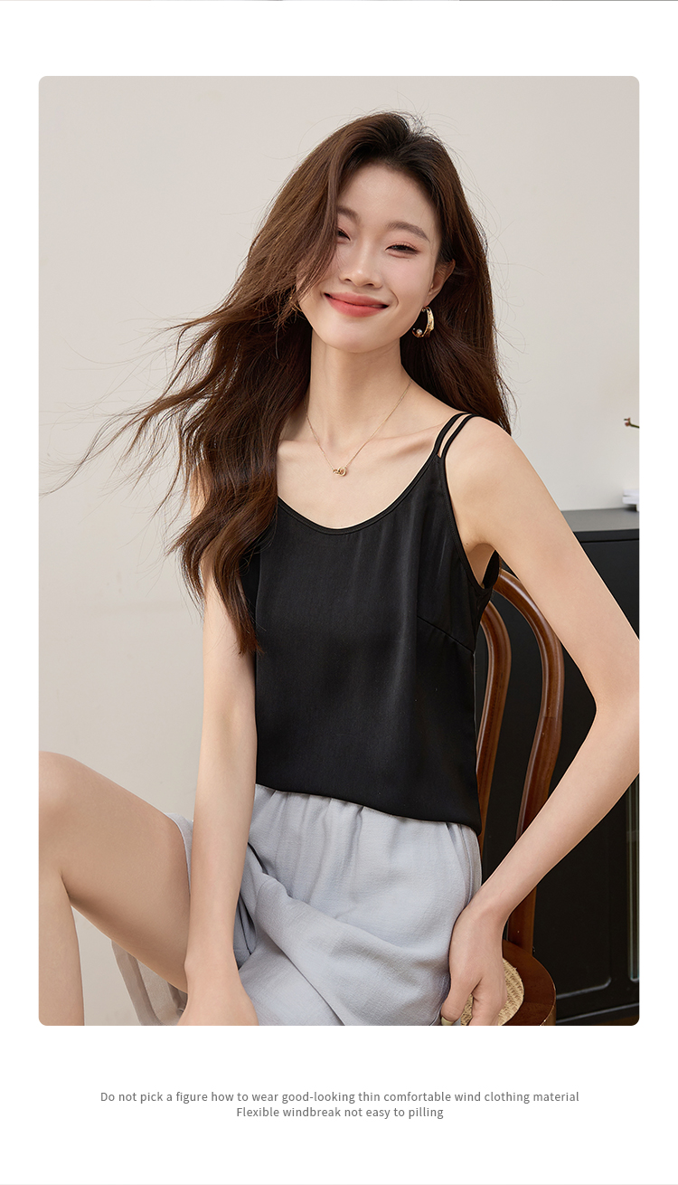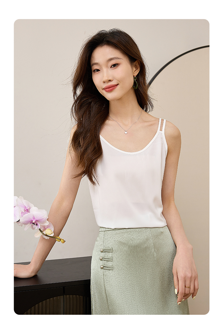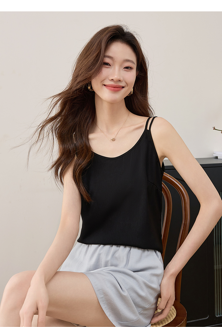【专属特价】熙世界白色吊带小背心女夏新款内搭外穿仿真丝黑色抹胸上衣
