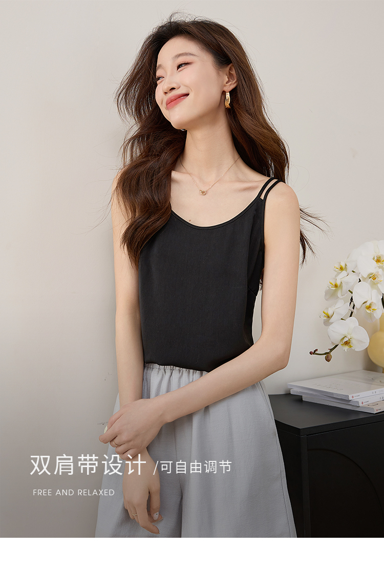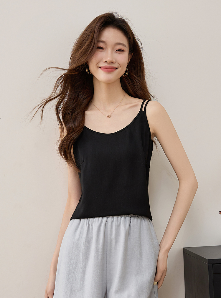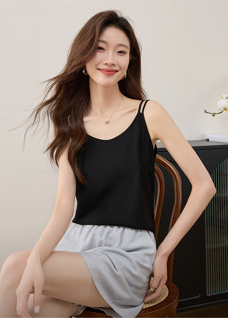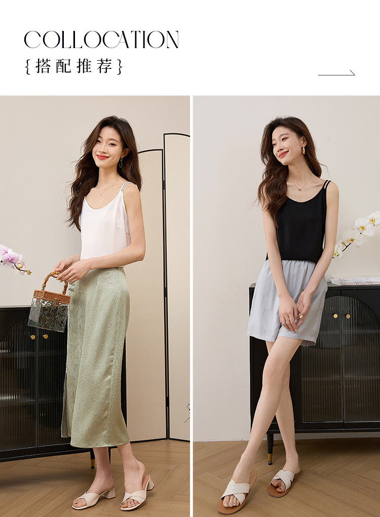 【专属特价】熙世界白色吊带小背心女夏新款内搭外穿仿真丝黑色抹胸上衣