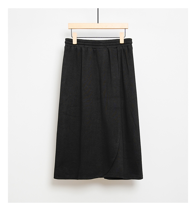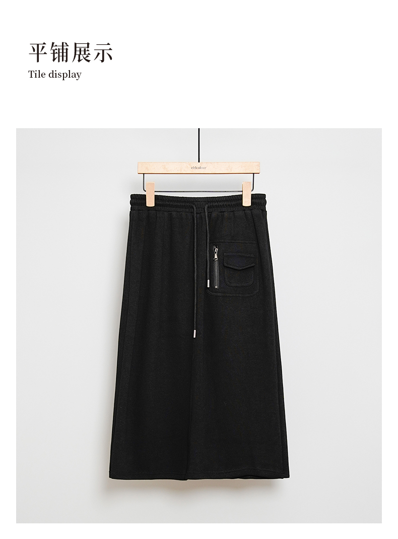 oldcolour秋冬款黑色休闲简约气质百搭松紧腰中长款半身裙女DM45063004