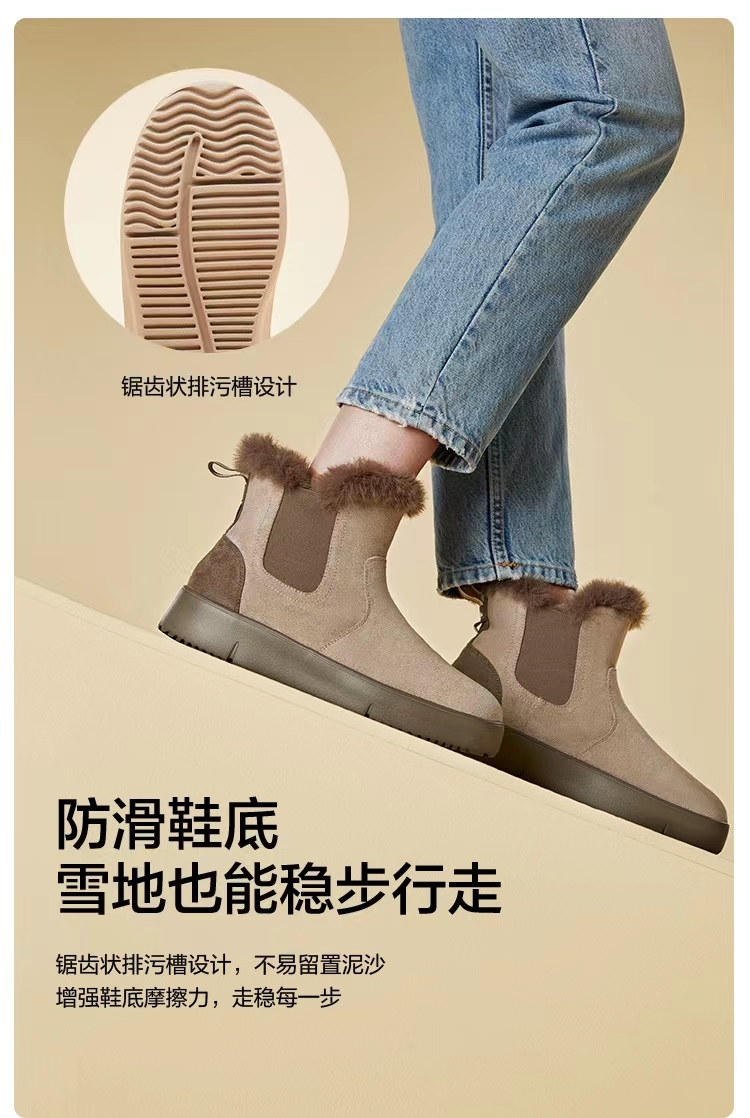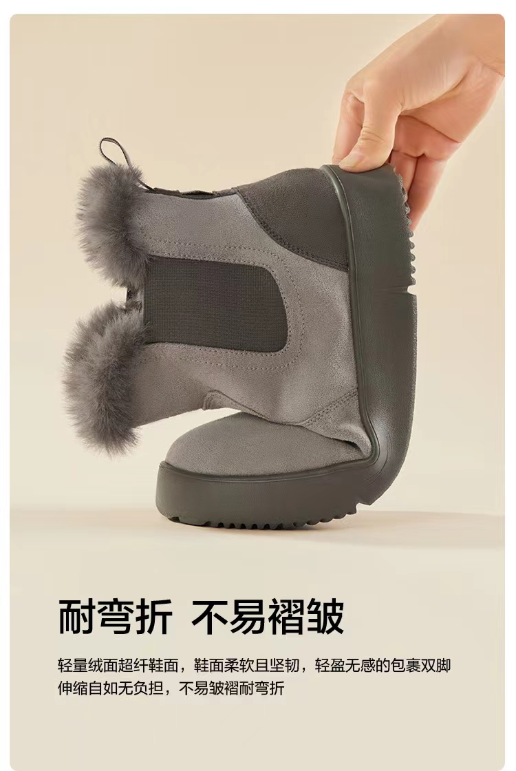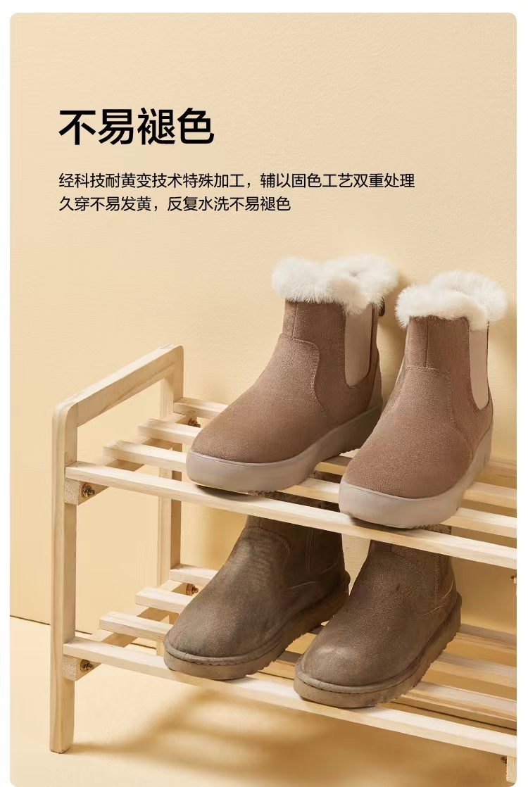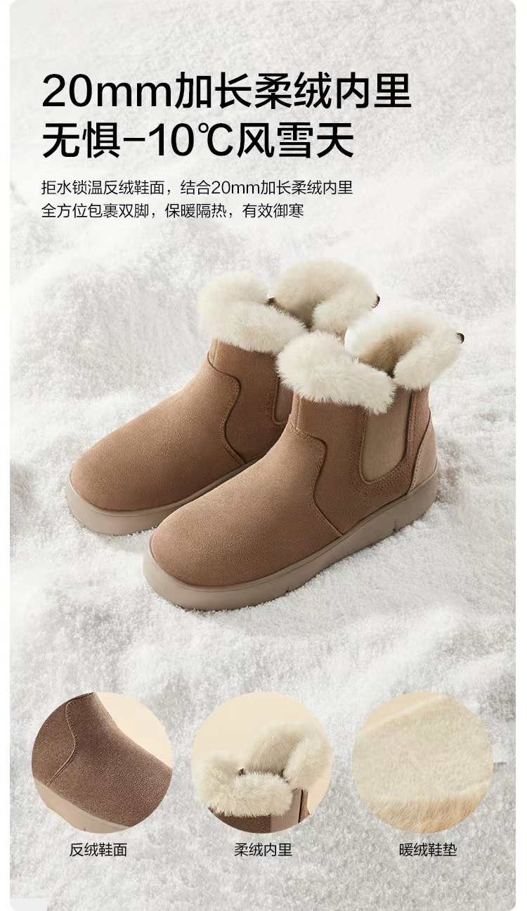 【防泼水 易打理 不易褶皱 不易掉毛】蕉下 2022新款雪地靴女冬加绒皮毛一体防滑厚底雪地棉短靴保暖棉鞋