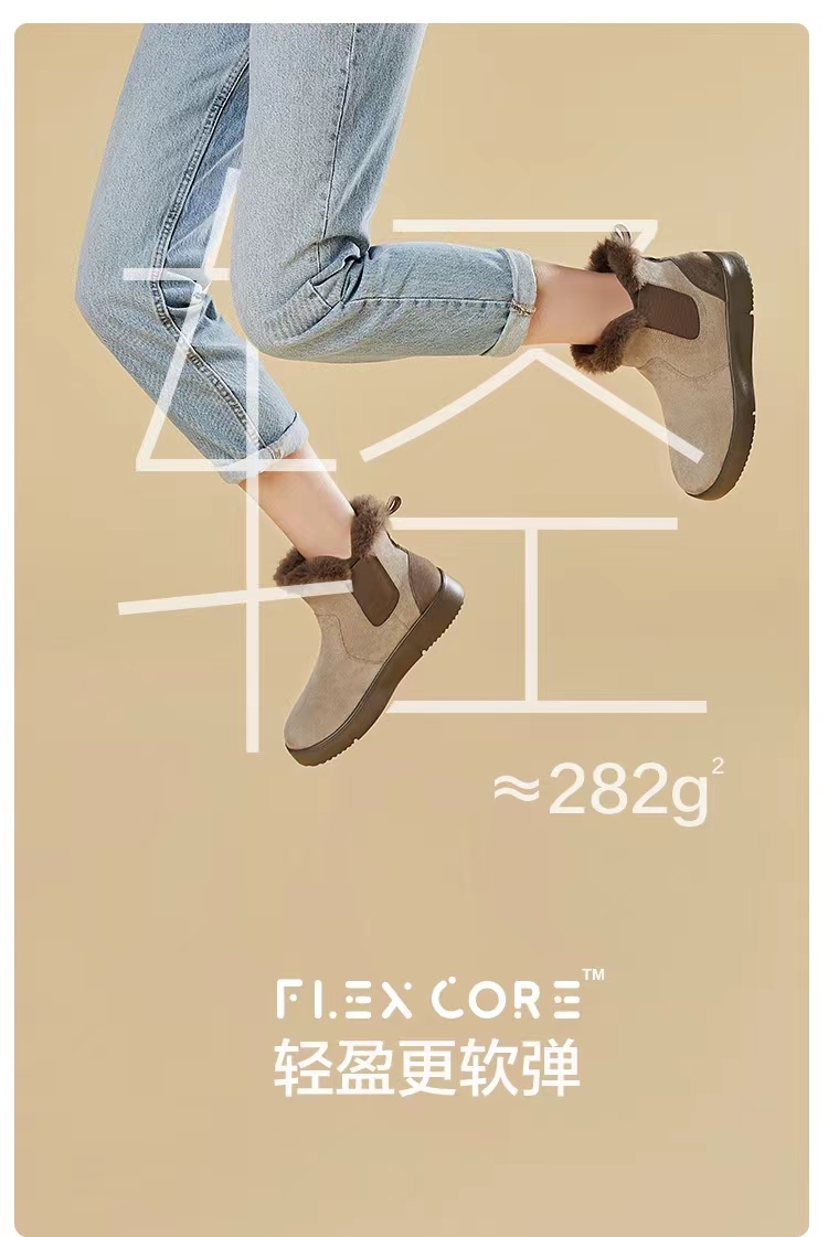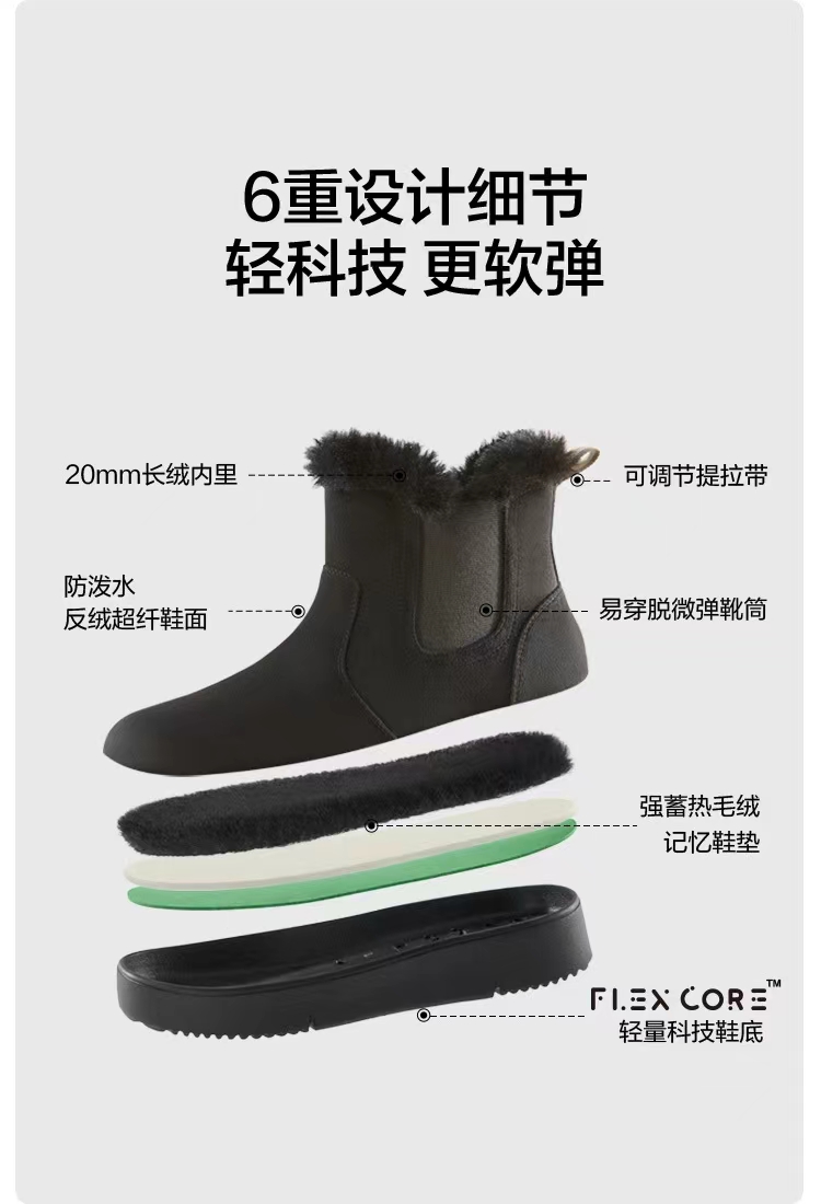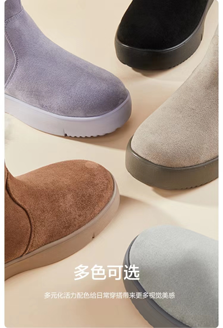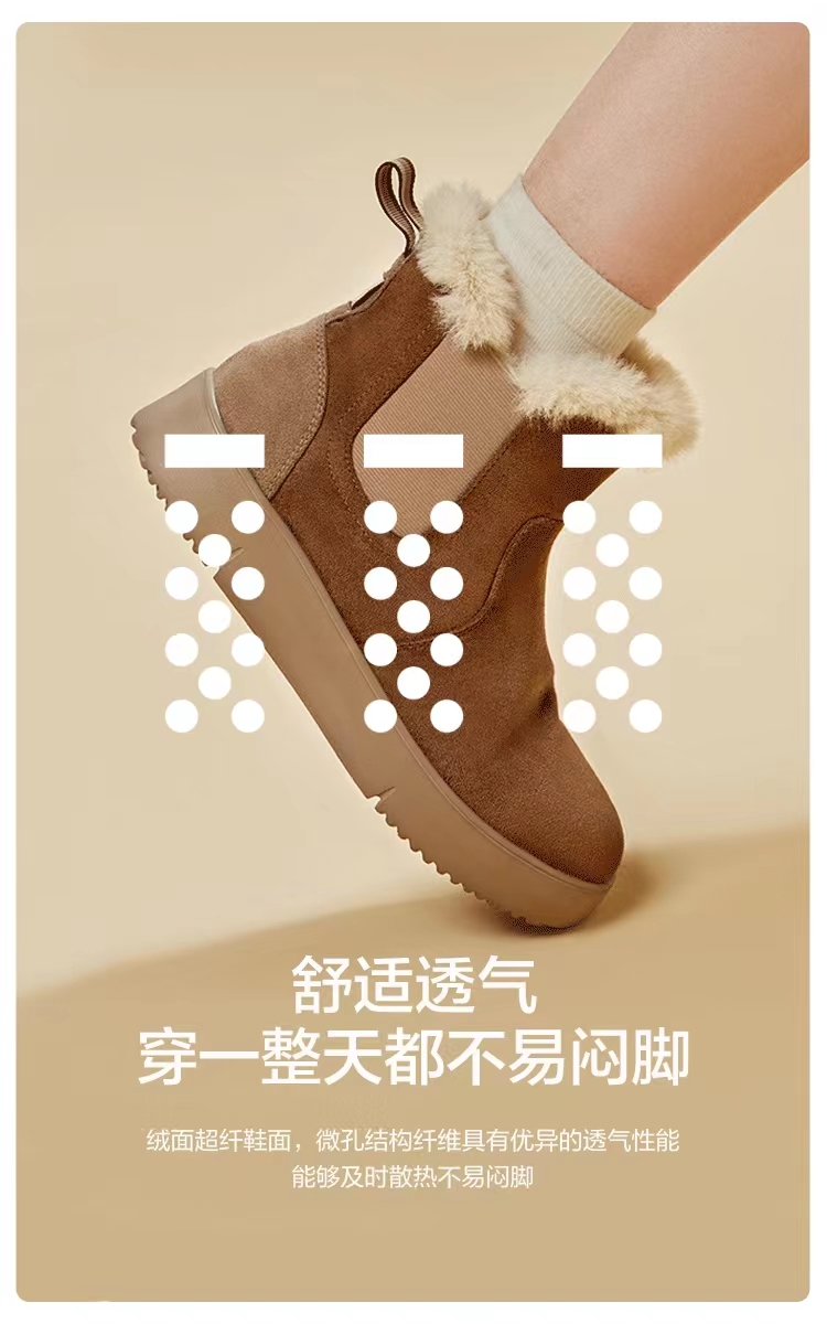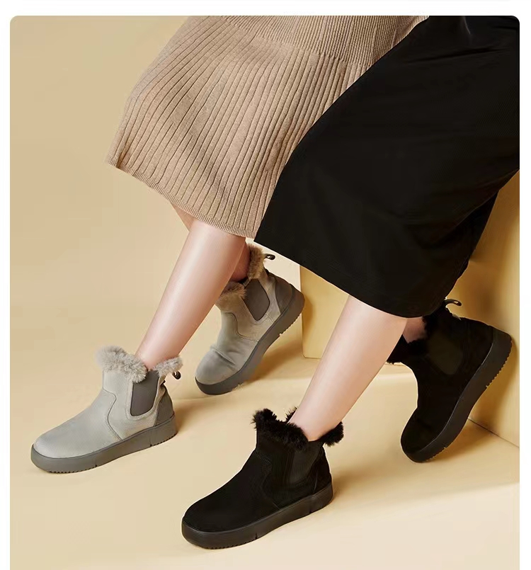 【防泼水 易打理 不易褶皱 不易掉毛】蕉下 2022新款雪地靴女冬加绒皮毛一体防滑厚底雪地棉短靴保暖棉鞋