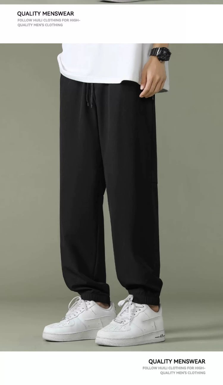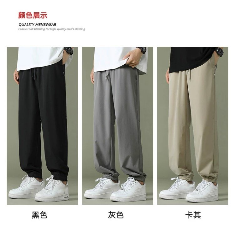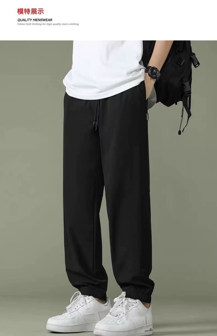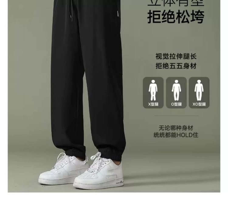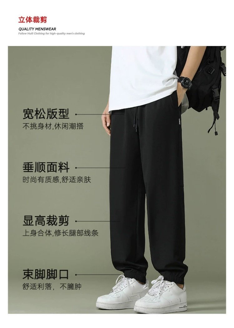 回力运动裤男裤2025春季薄款冰丝速干梭织长裤宽松裤子休闲九分裤
