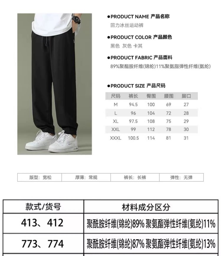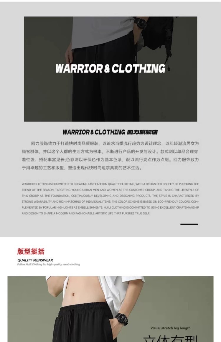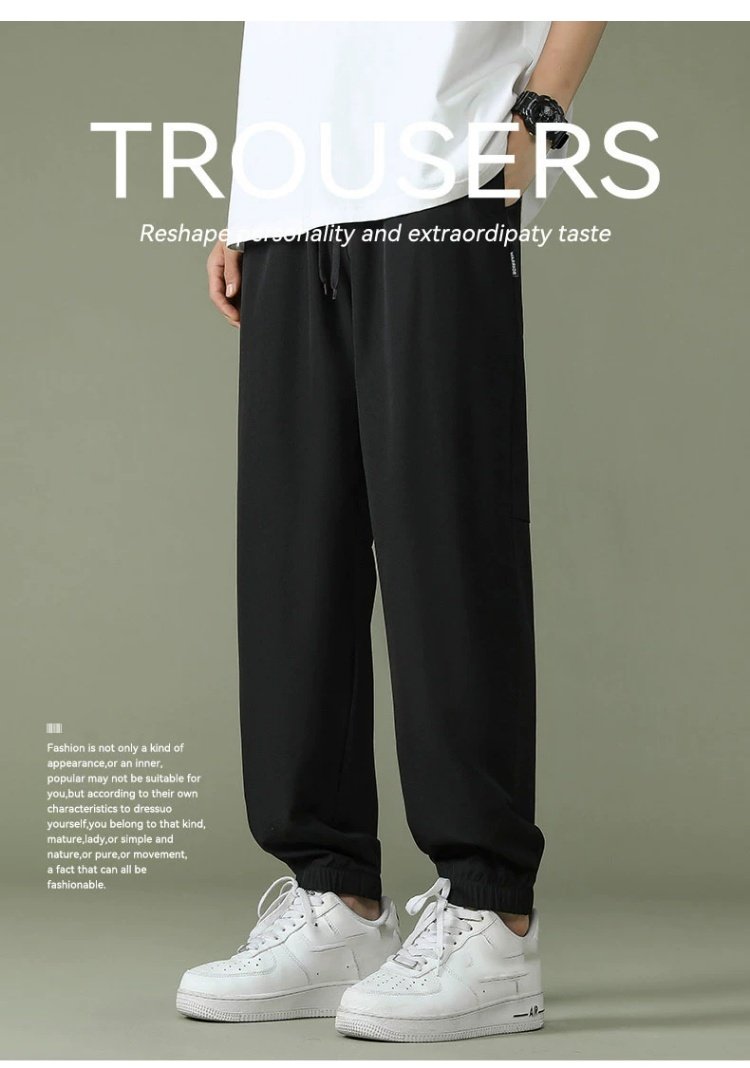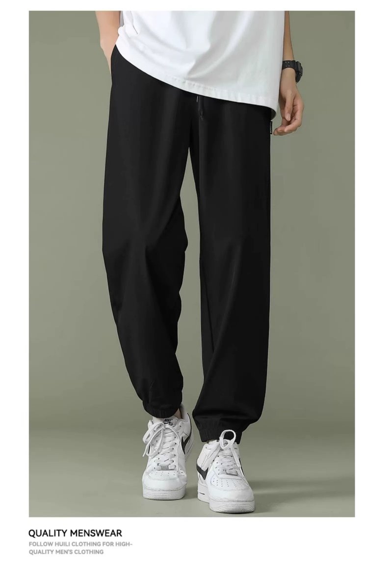 回力运动裤男裤2025春季薄款冰丝速干梭织长裤宽松裤子休闲九分裤