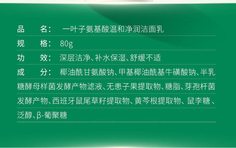 【新品洁面】一叶子氨基酸温和净润洁面乳100g-清洁卸妆保湿舒缓控油