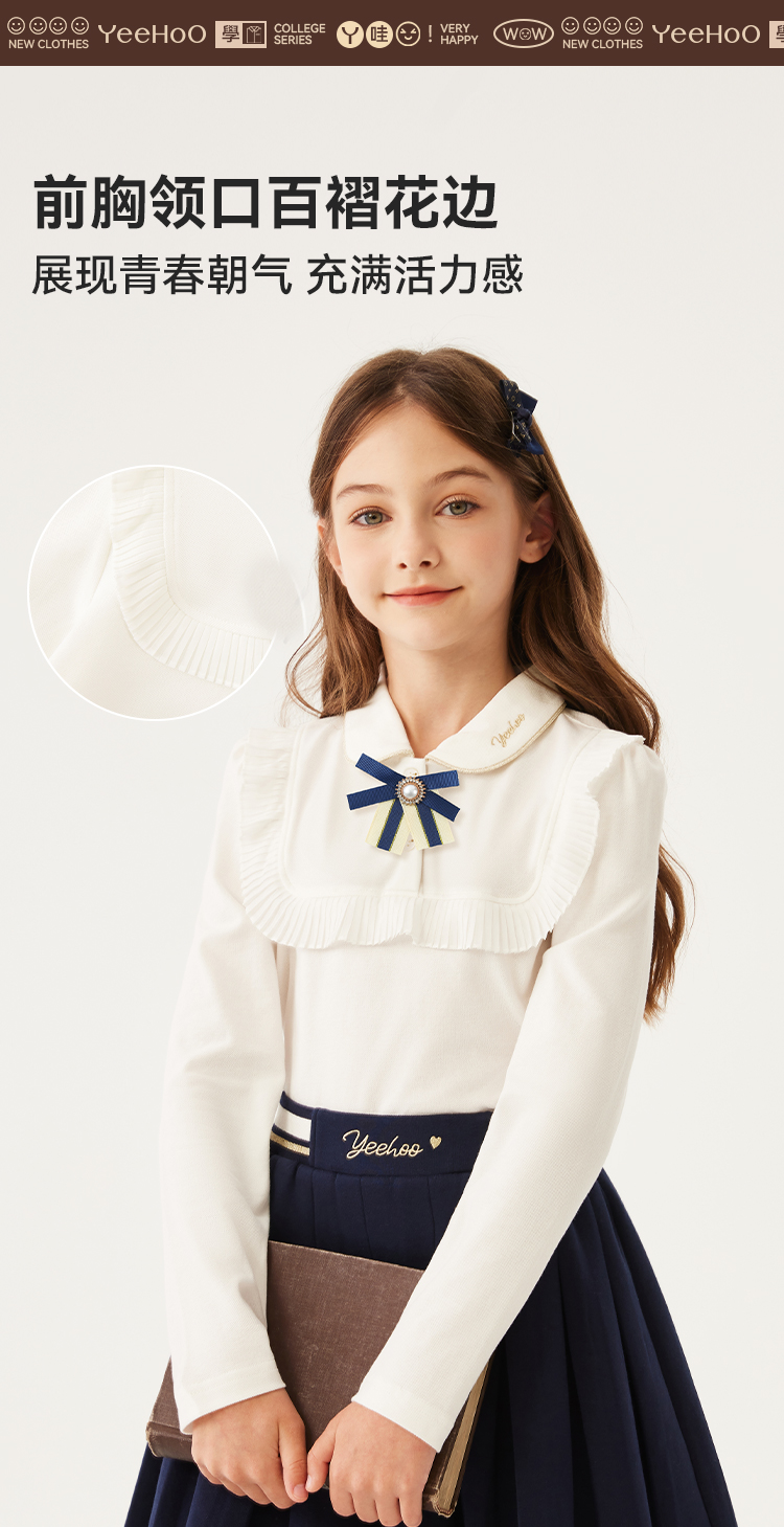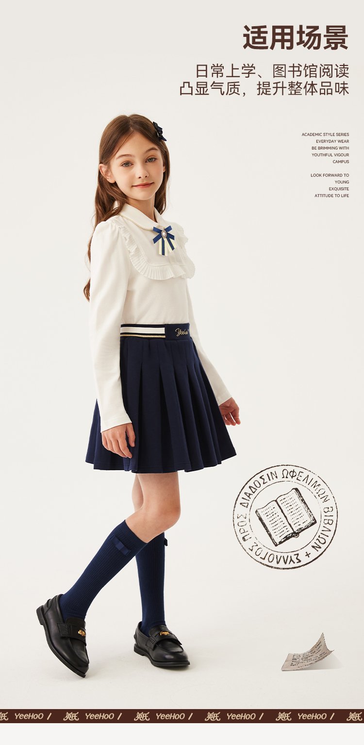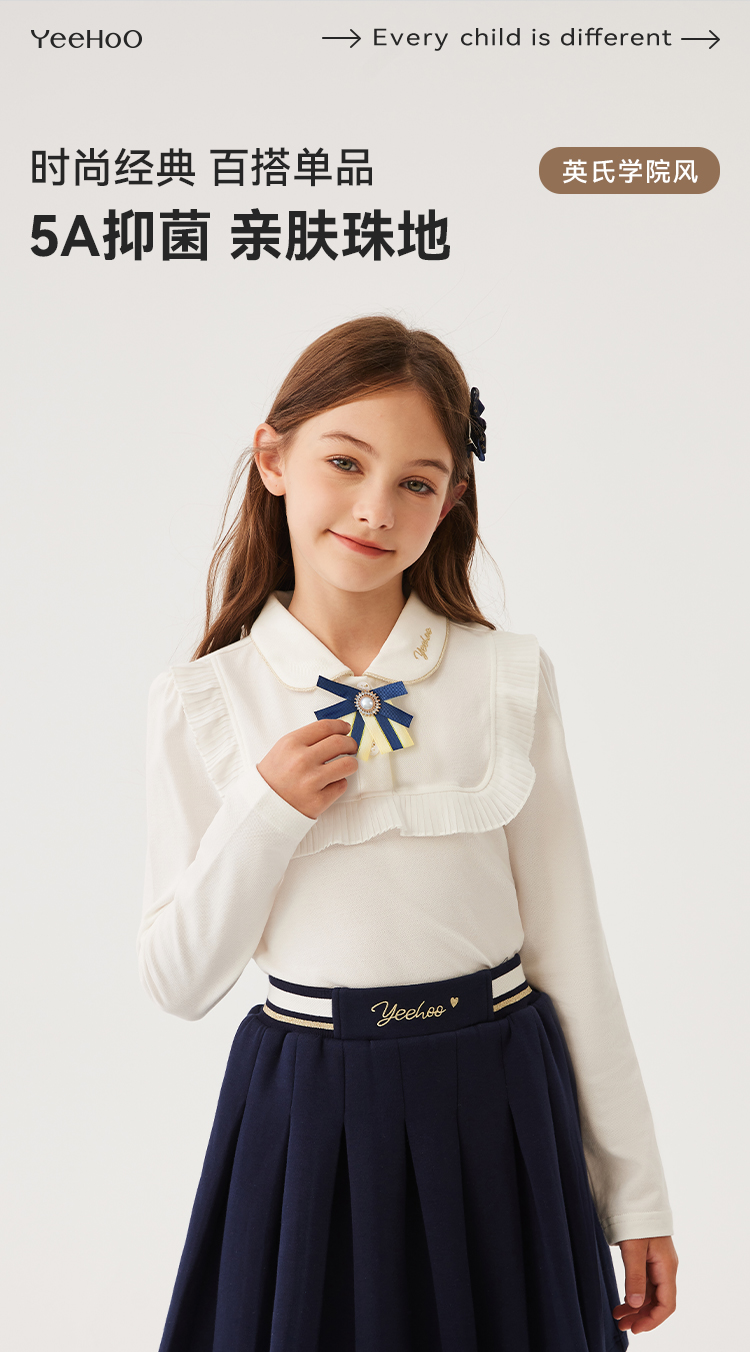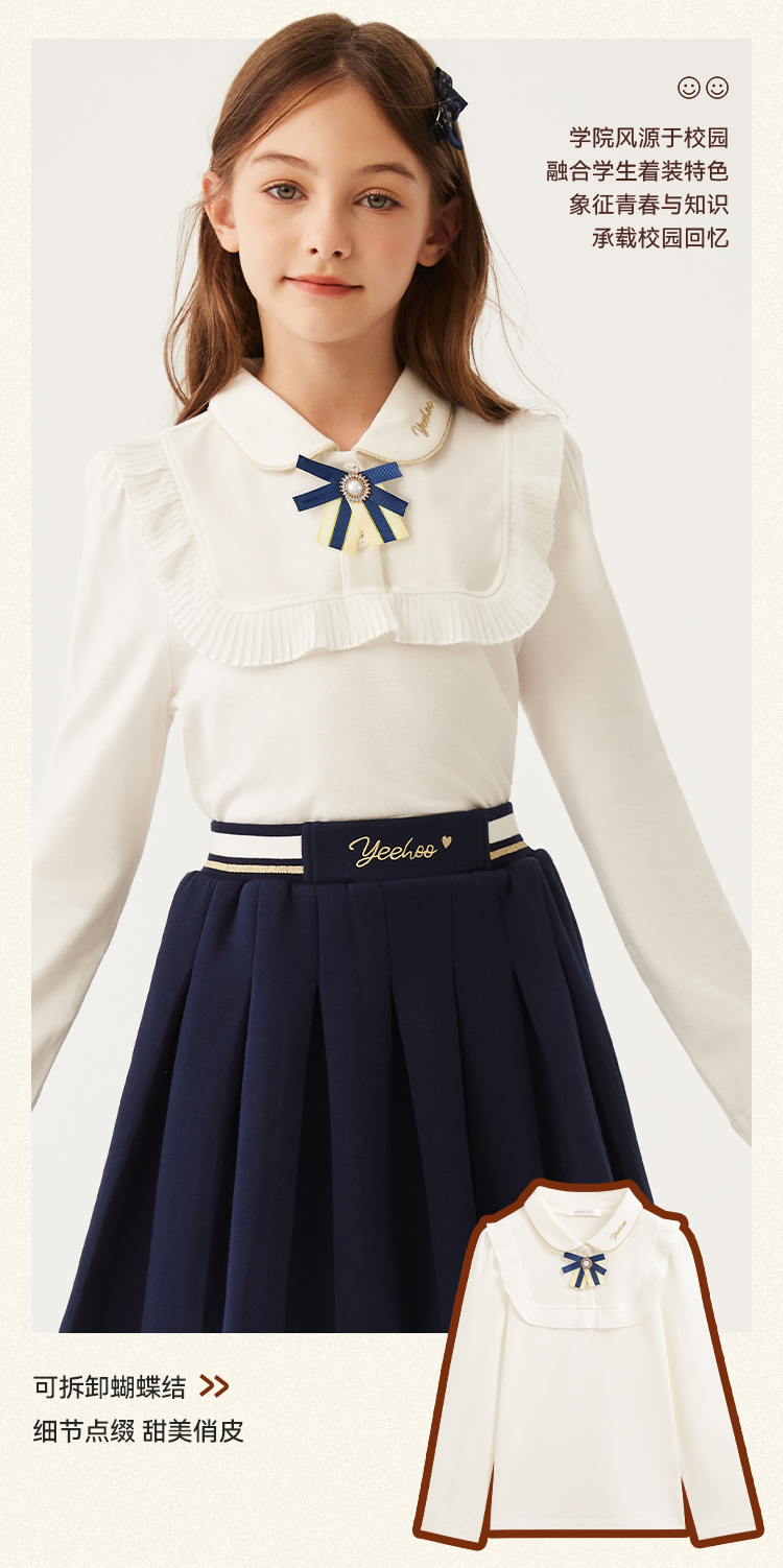 【英氏】【120-170】女童春秋长袖POLO衫