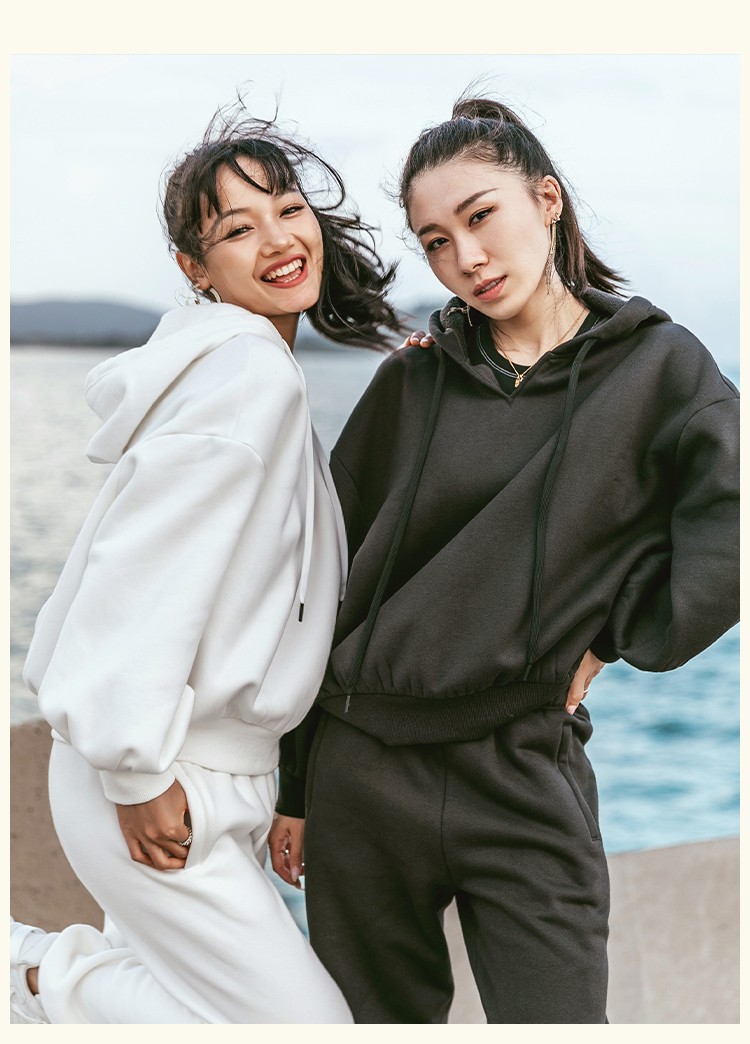 羊羔绒 冬季单穿 打底运动宽松连帽卫衣卫裤