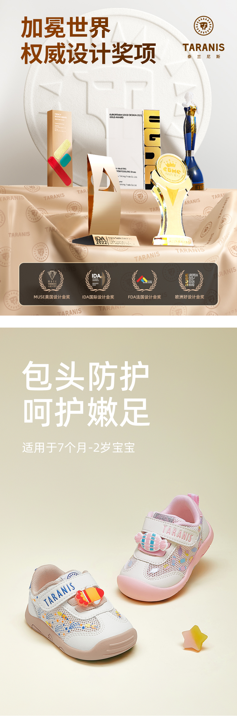 泰兰尼斯学步鞋男宝宝秋季新款童鞋防滑软底面包鞋透气机能鞋女童 T01T5C6530
