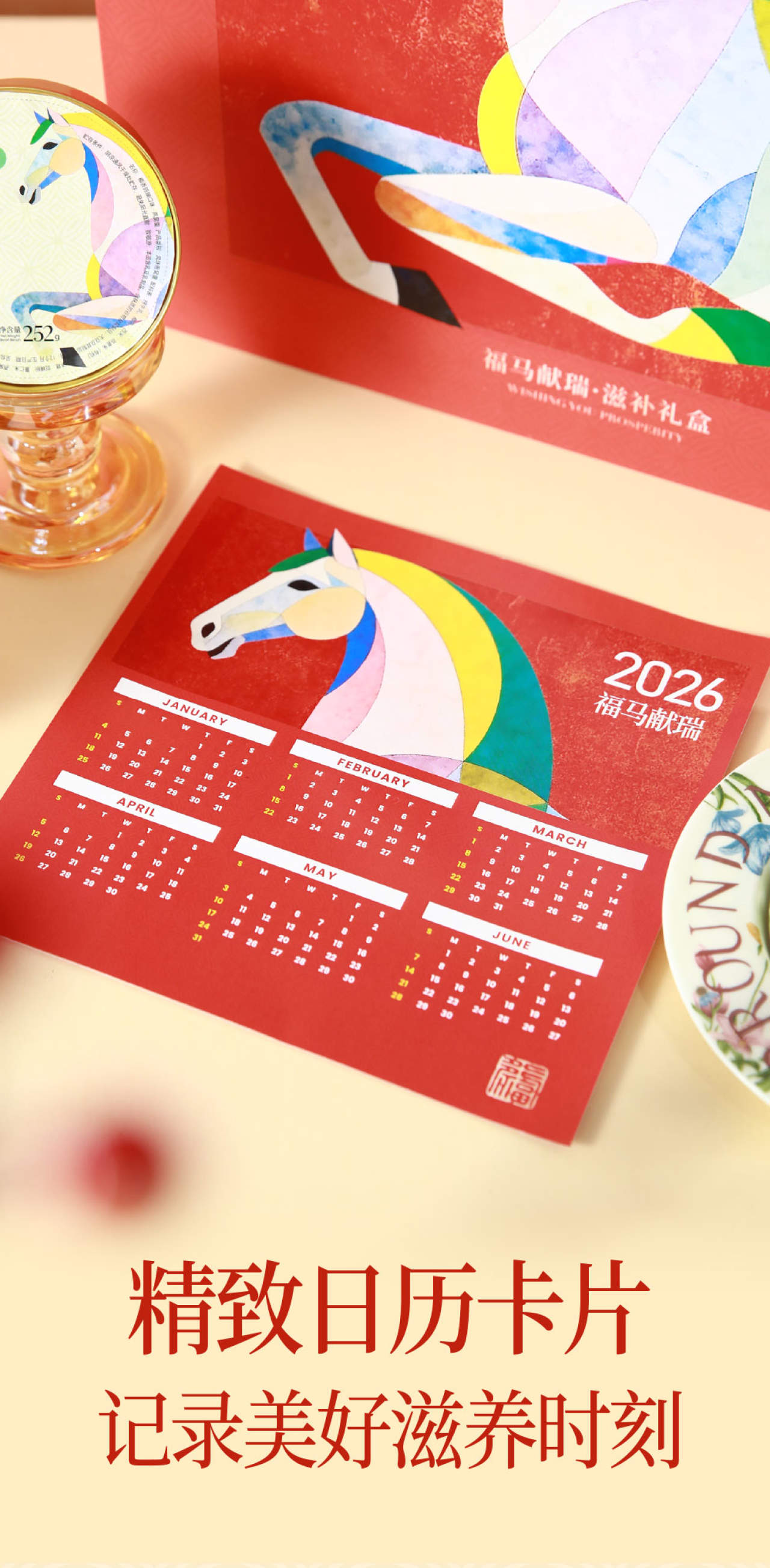 礼盒内附送台历卡片,美好新一年,一起来记录美好的滋补时刻。