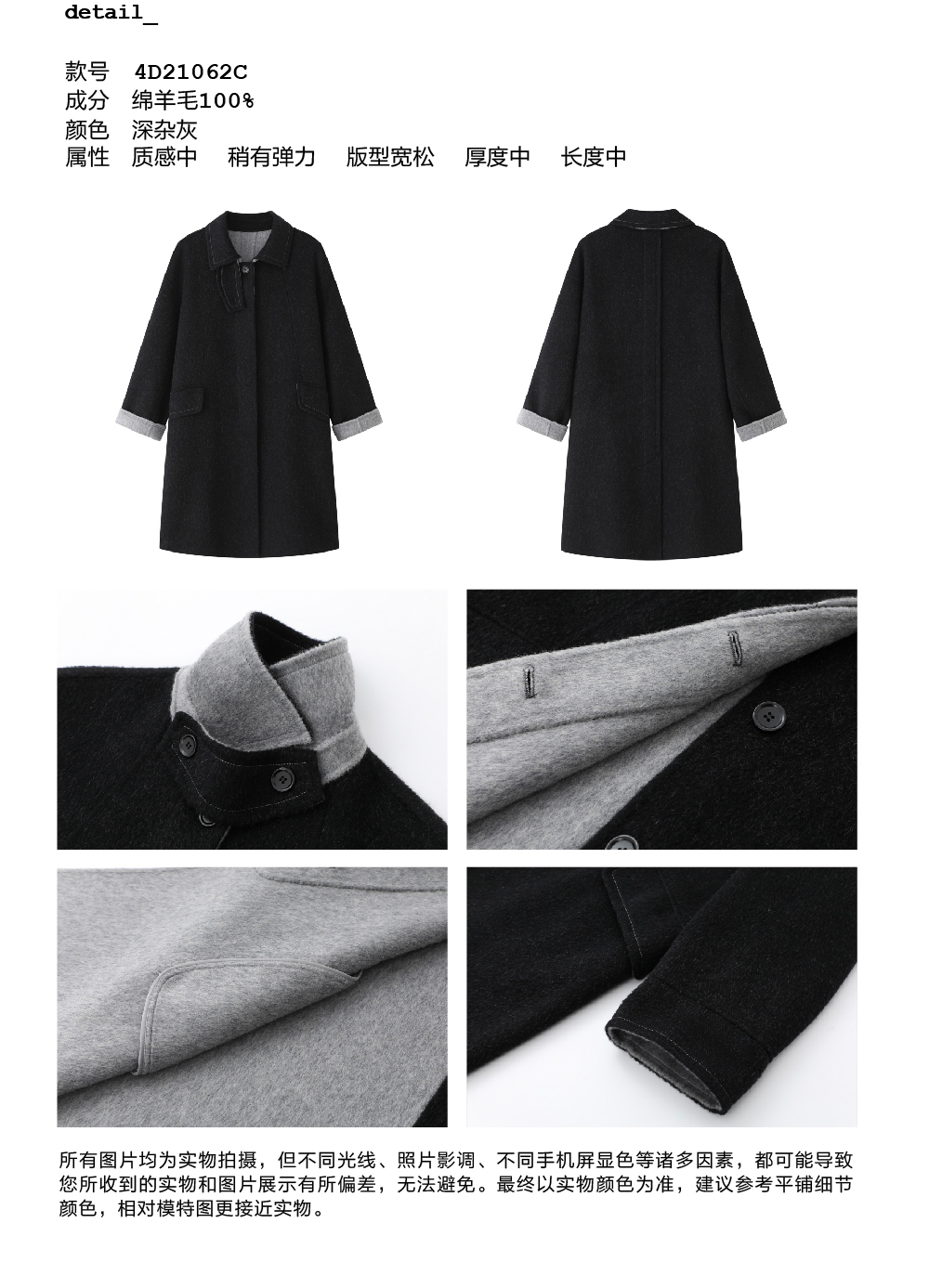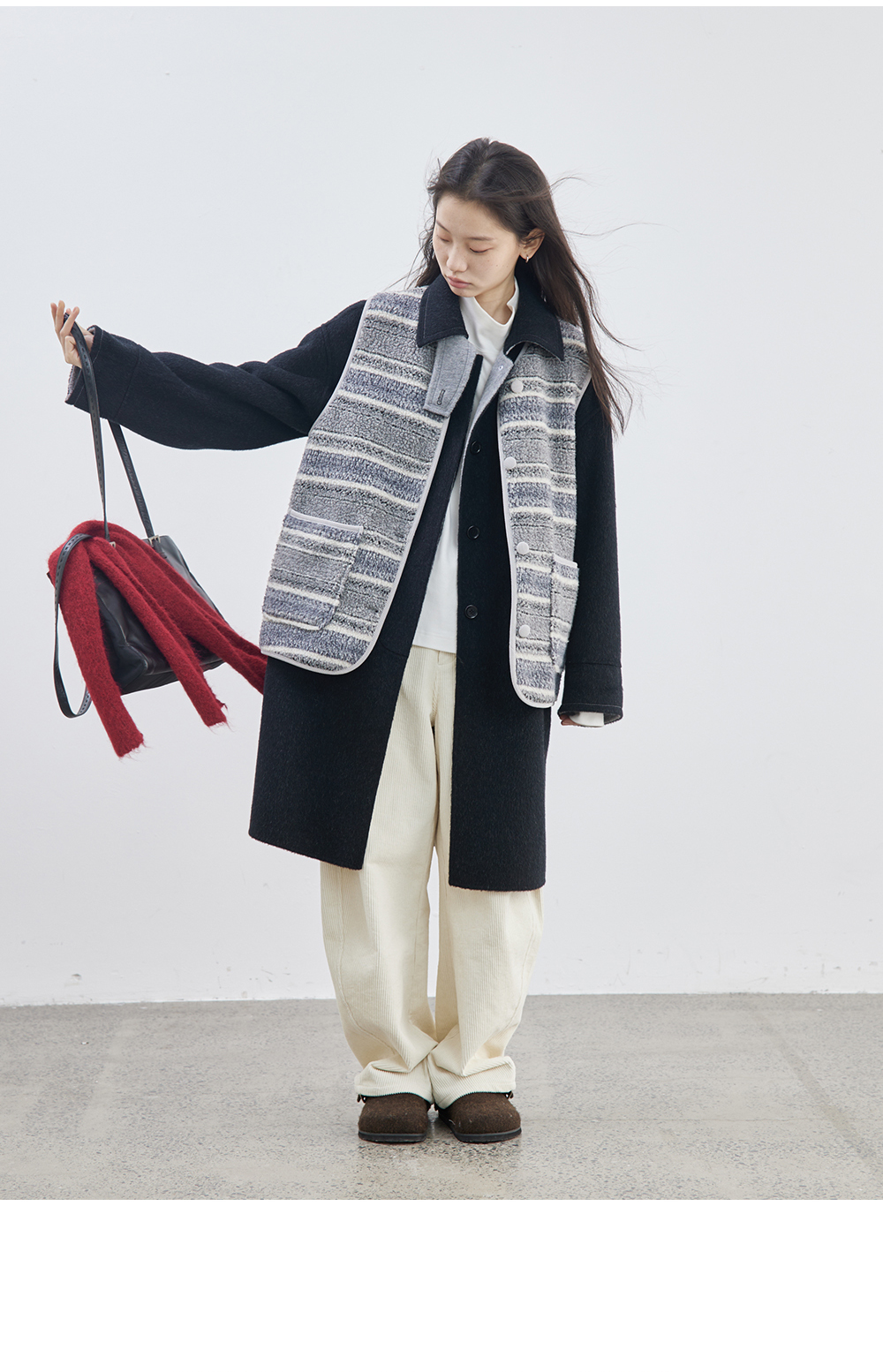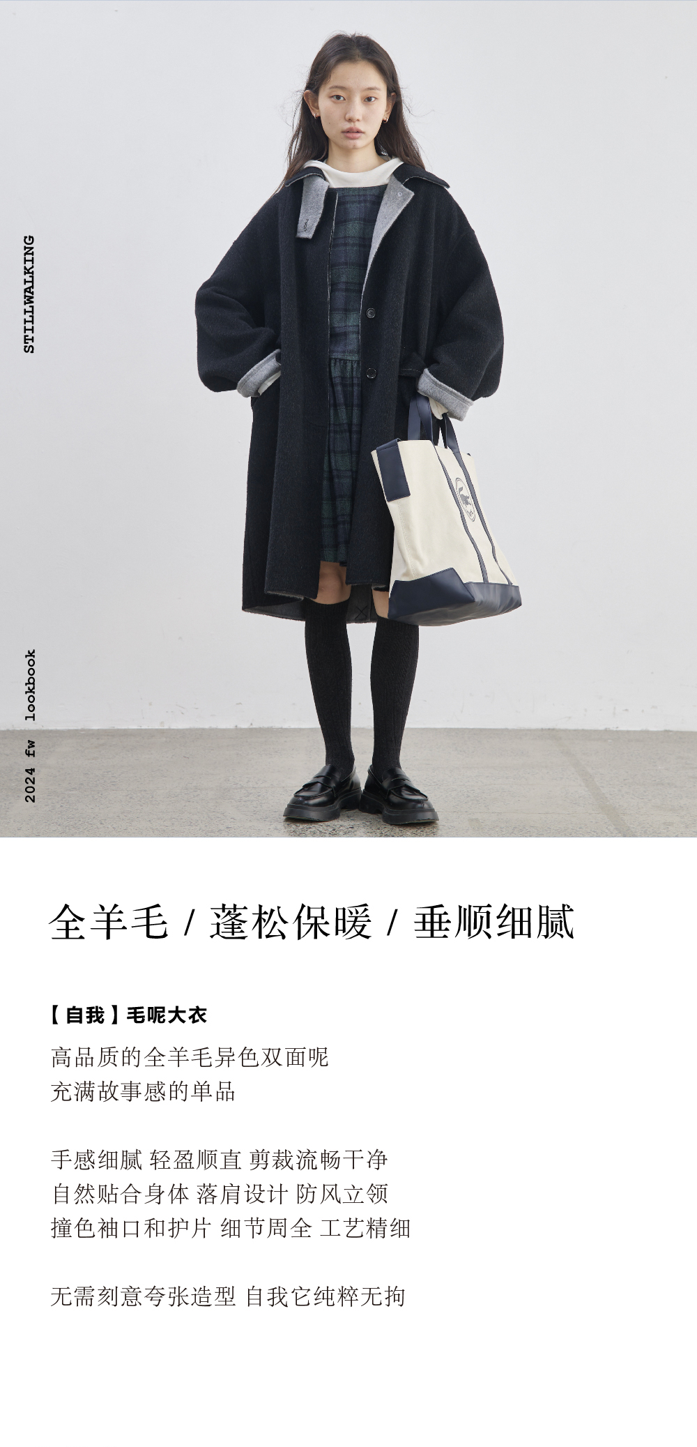步履不停/4D21062C/纯羊毛中长款松弛感毛呢料大衣