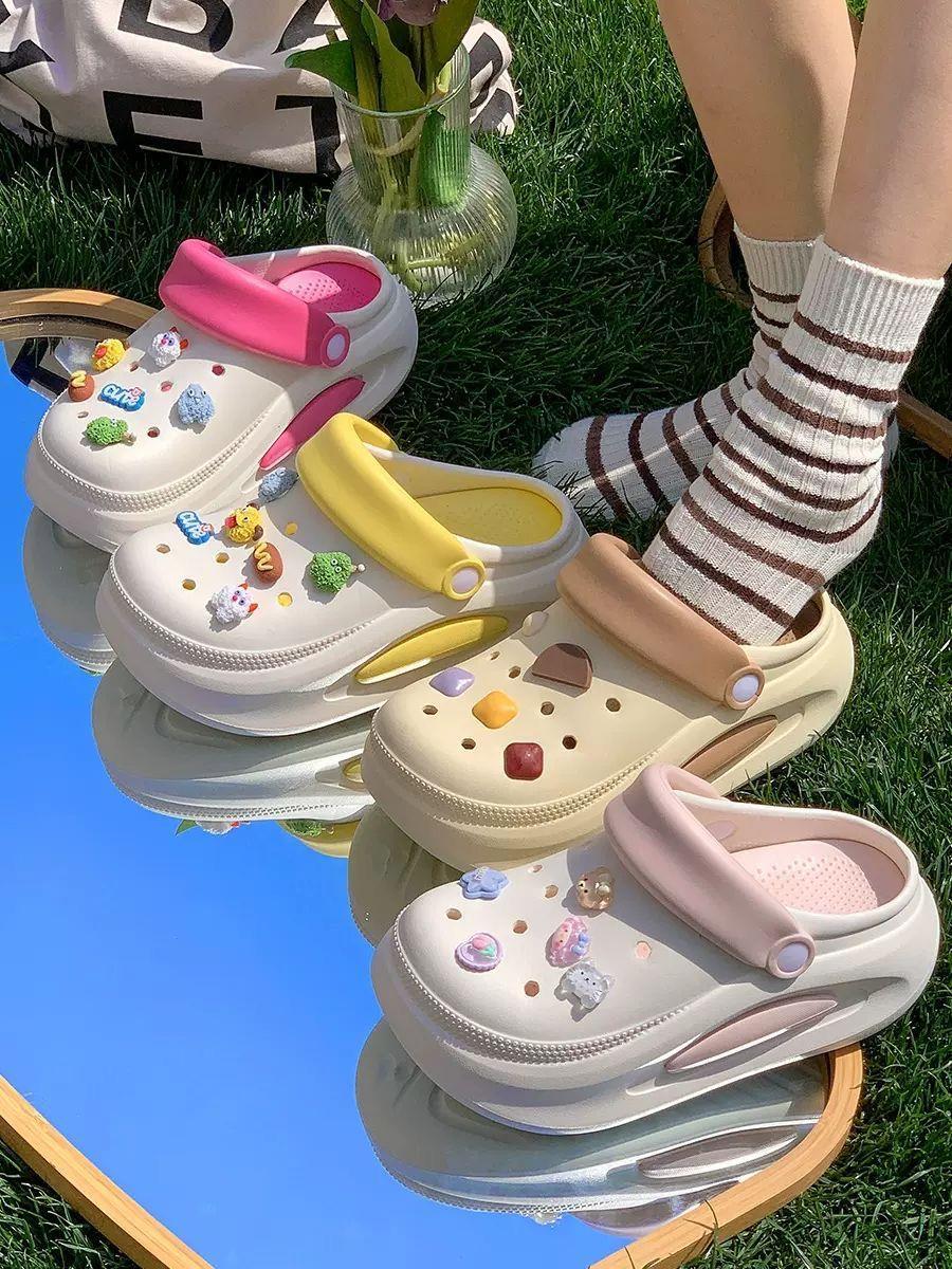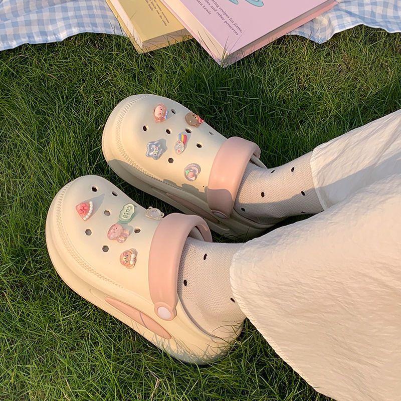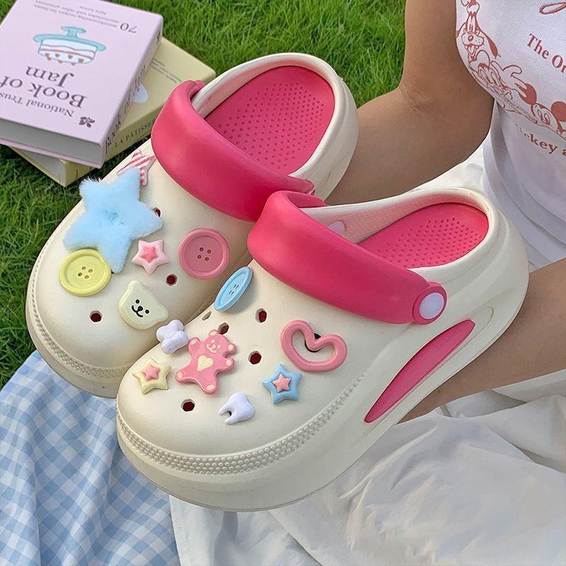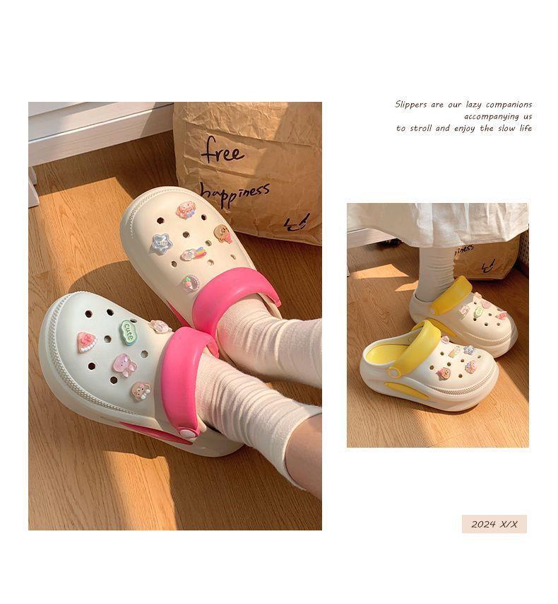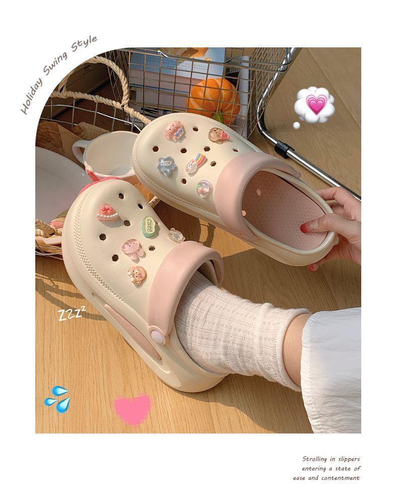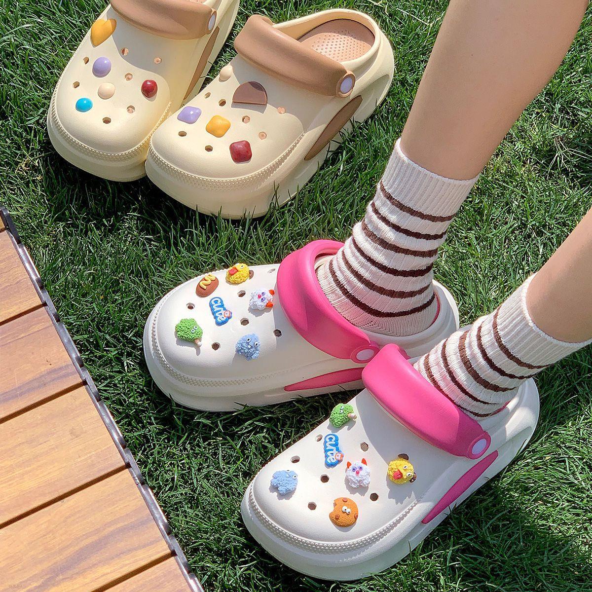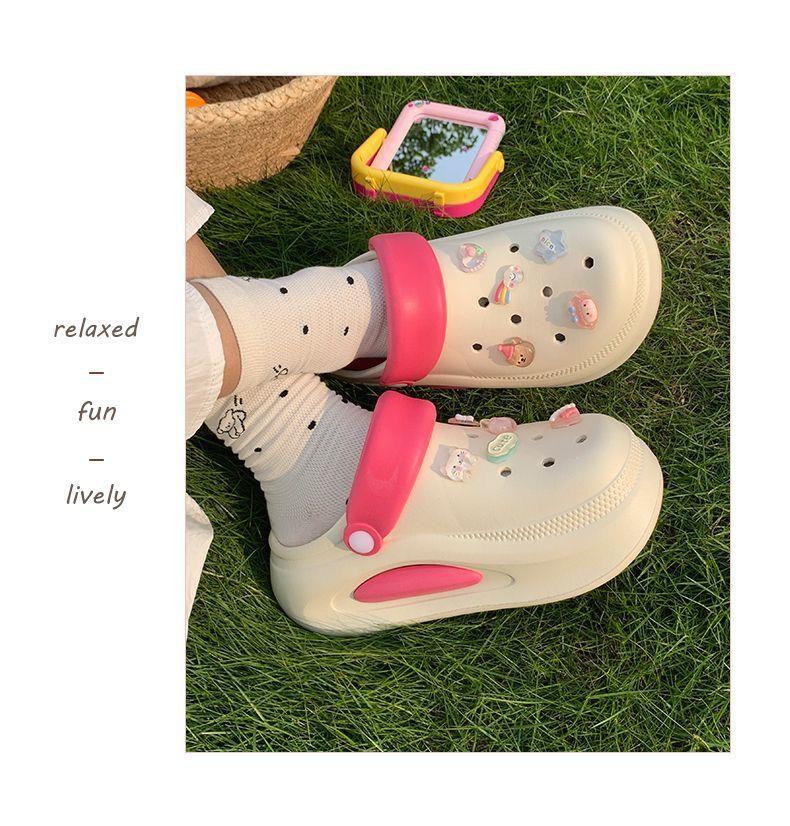 踩屎感多巴胺洞洞鞋女士夏季外穿新款室内家居厚底增高包头凉36-41★娃娃优选