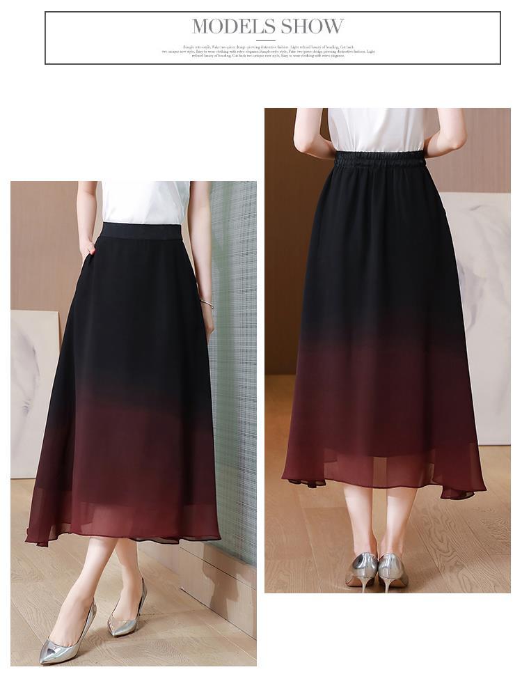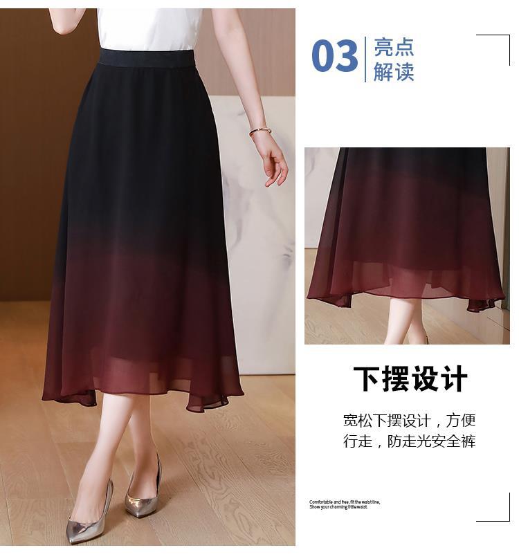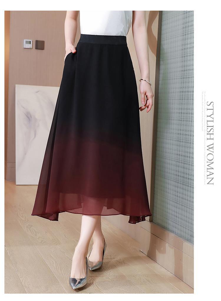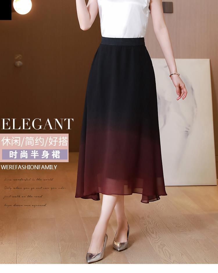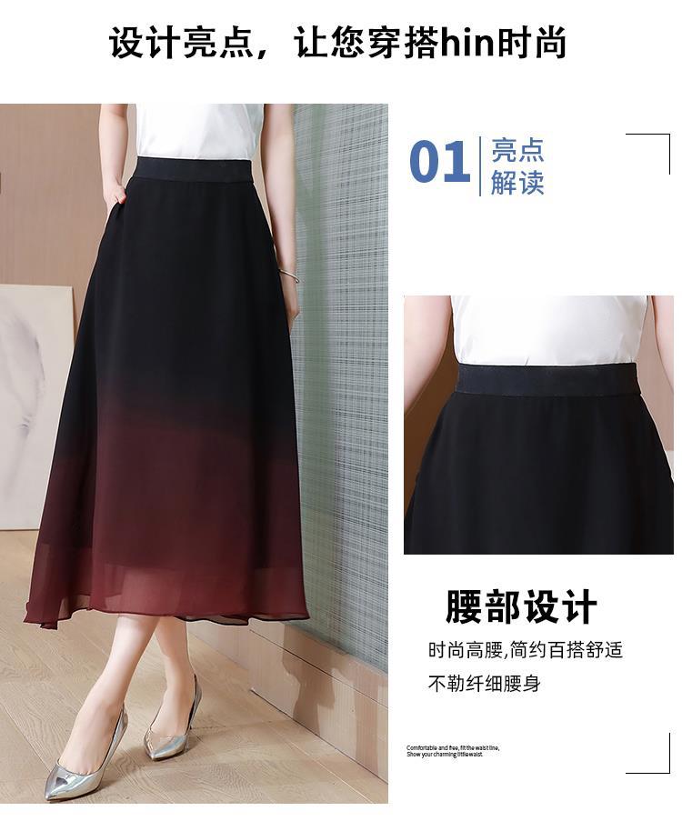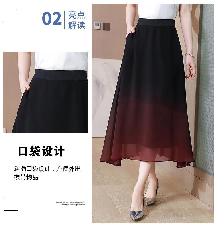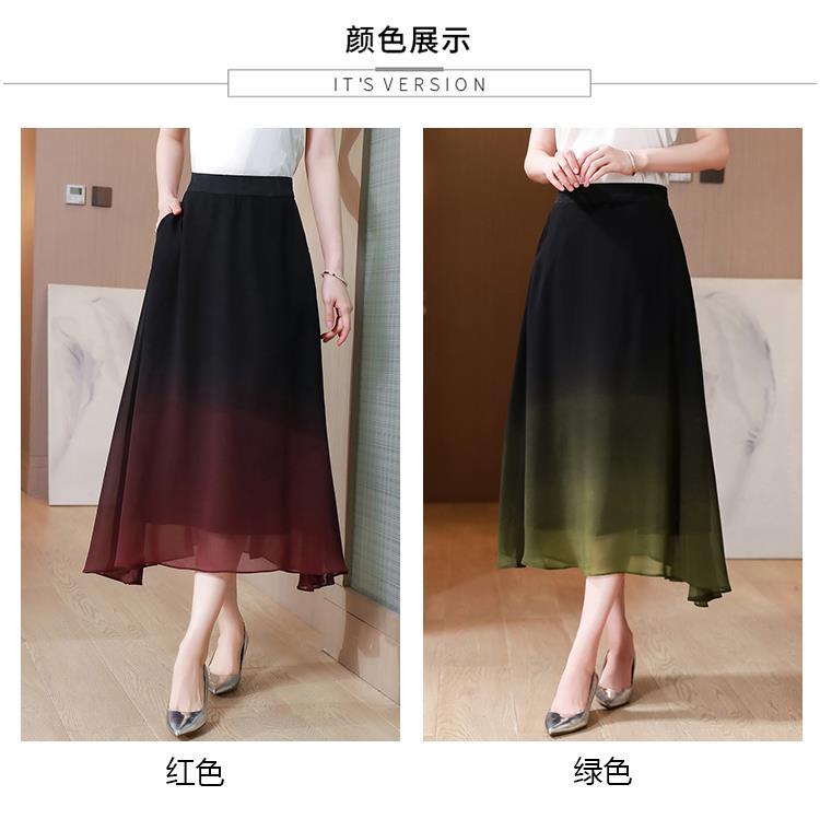 夏新款百搭,高腰中长渐变色雪纺裙中老年大码半身裙KQL-435H5361