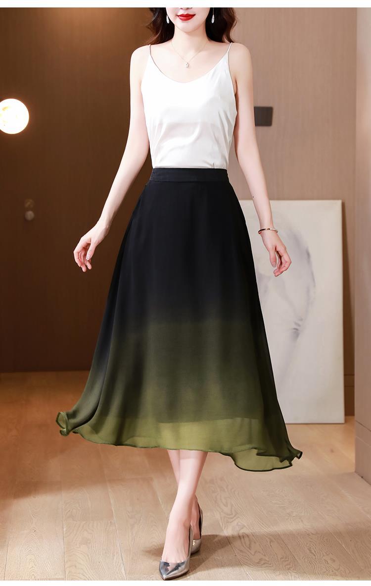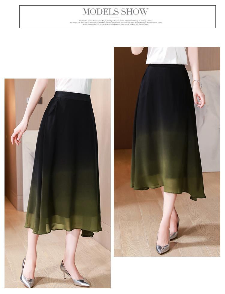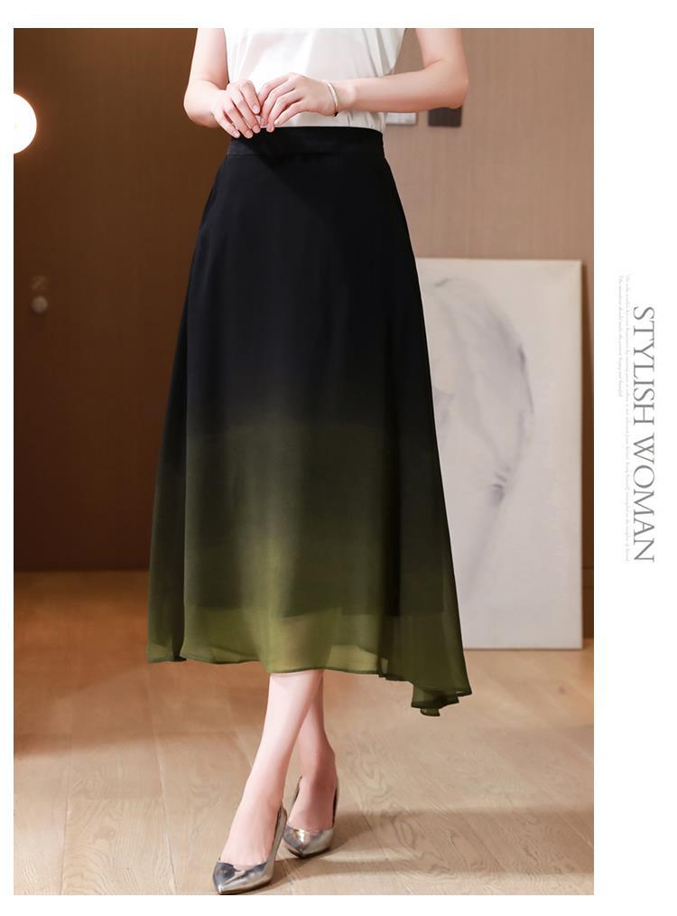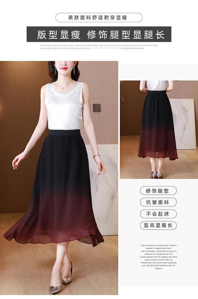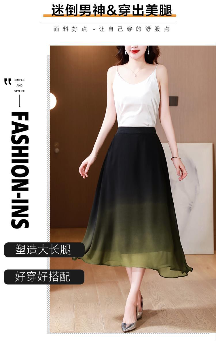 夏新款百搭,高腰中长渐变色雪纺裙中老年大码半身裙KQL-435H5361