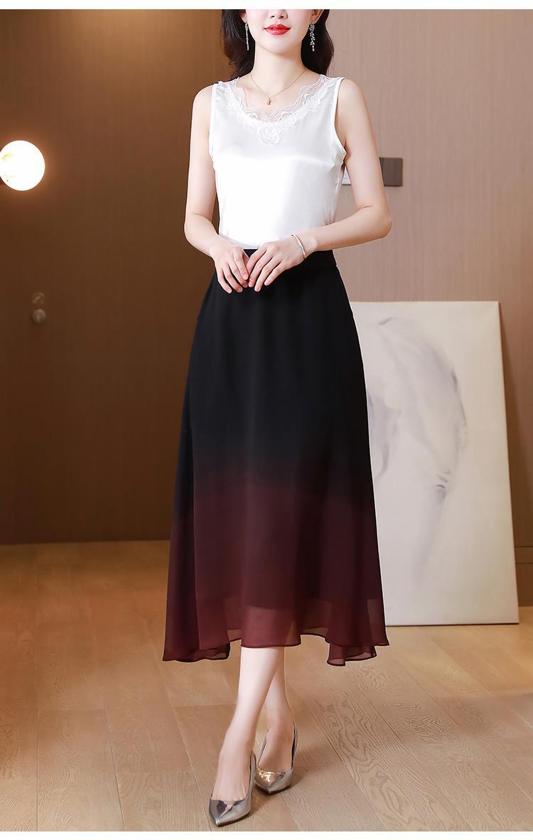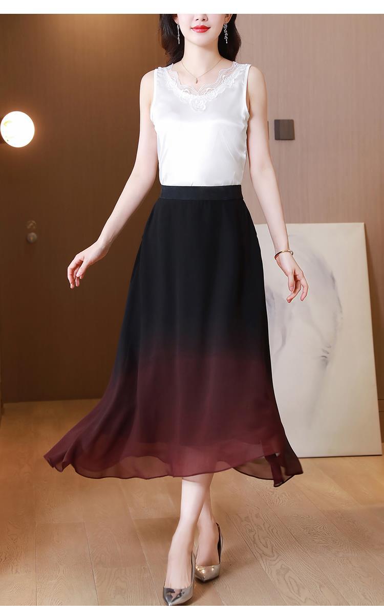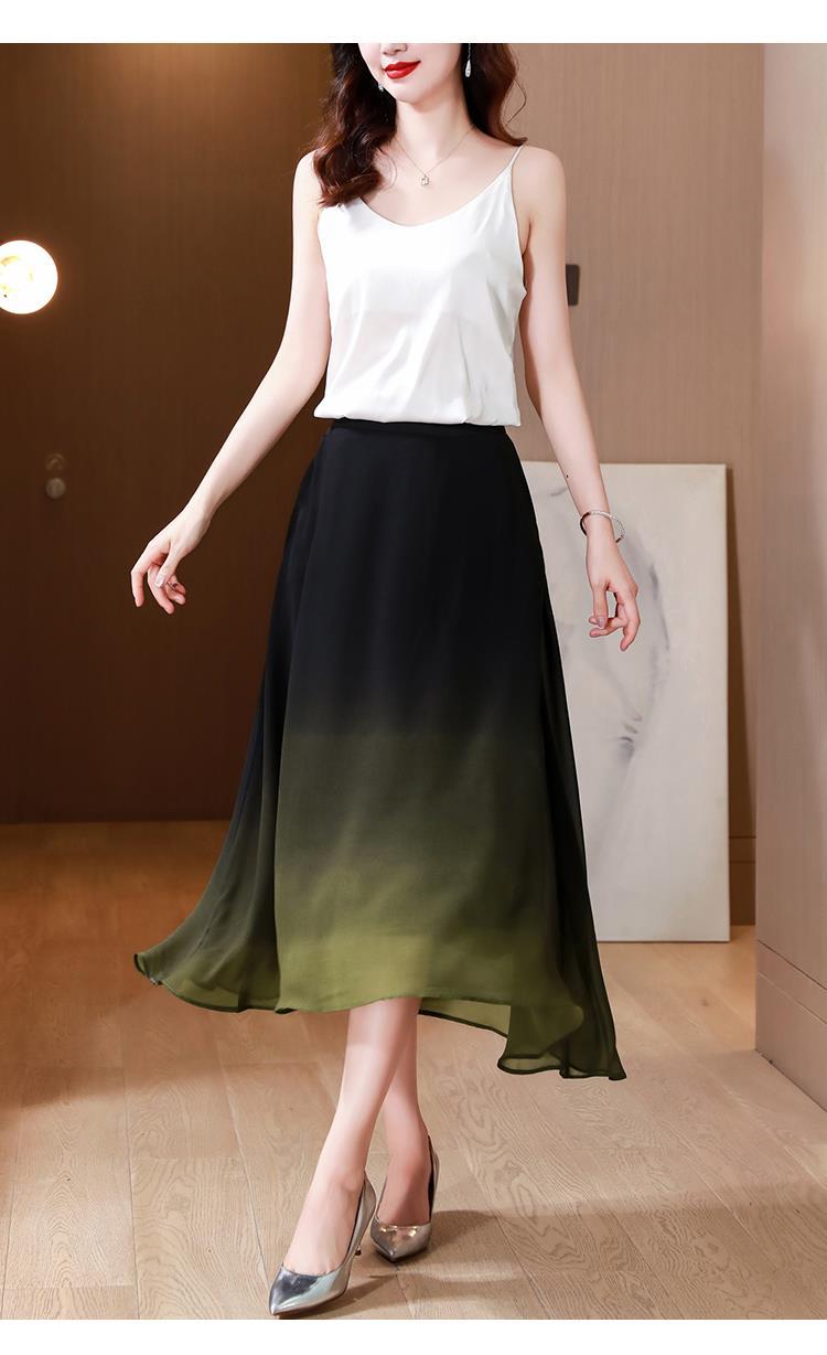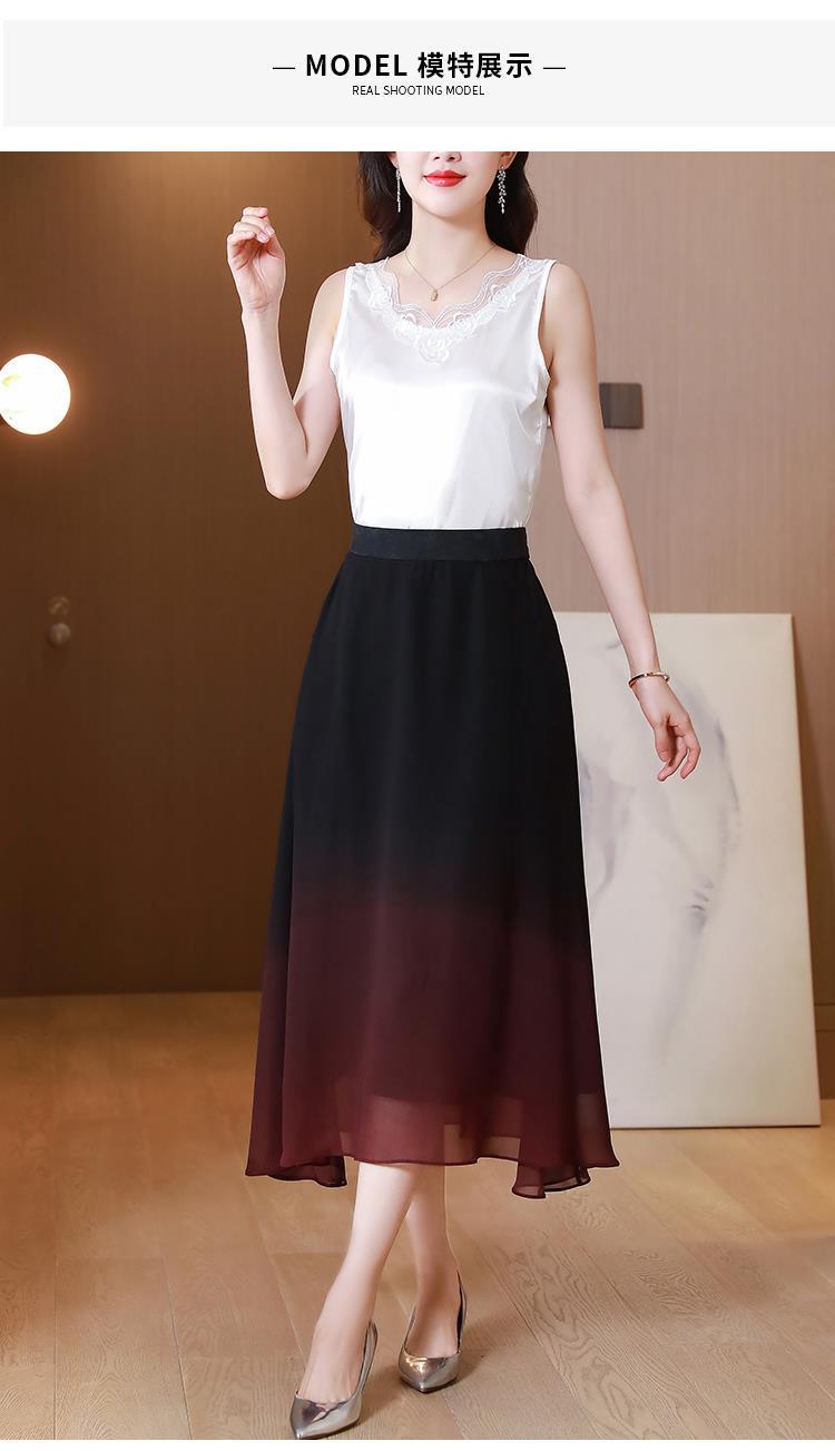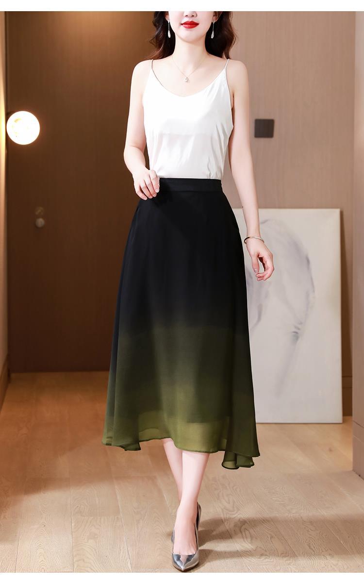 夏新款百搭,高腰中长渐变色雪纺裙中老年大码半身裙KQL-435H5361