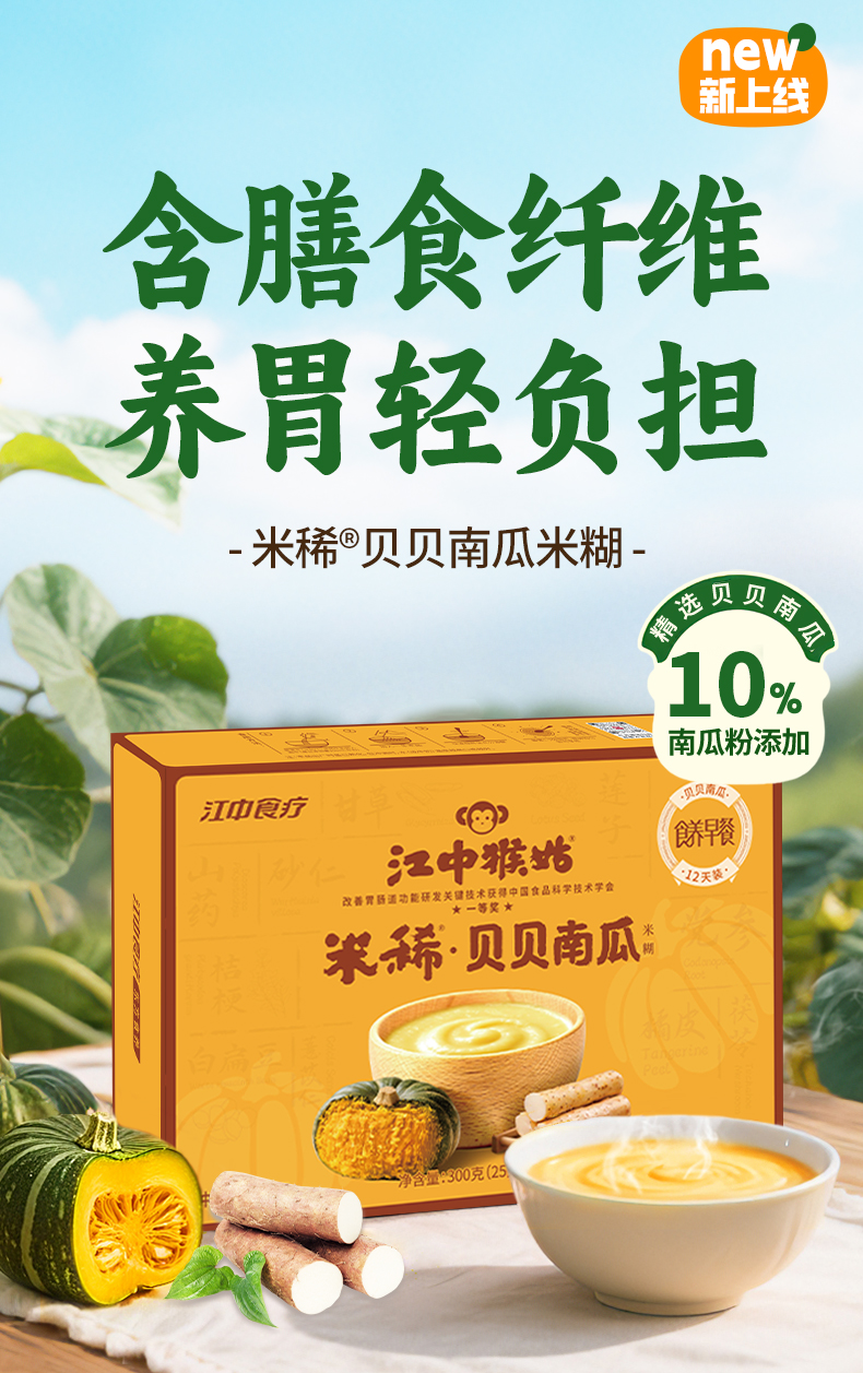 【积分兑换】江中猴姑米稀贝贝南瓜米糊12天 300克/盒