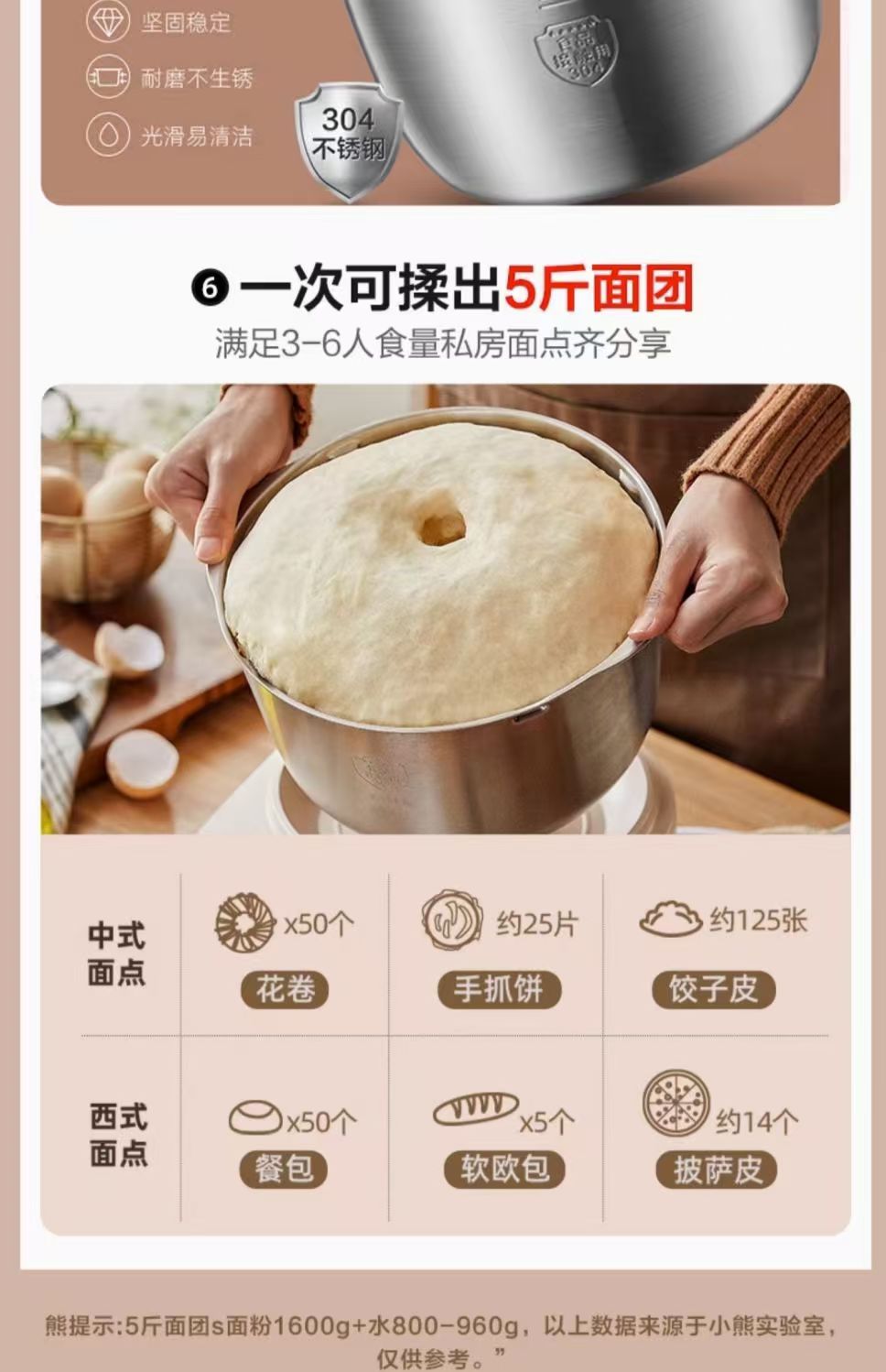 小熊和面机家用揉面小型多功能全自动厨师面粉发酵醒面活面搅面