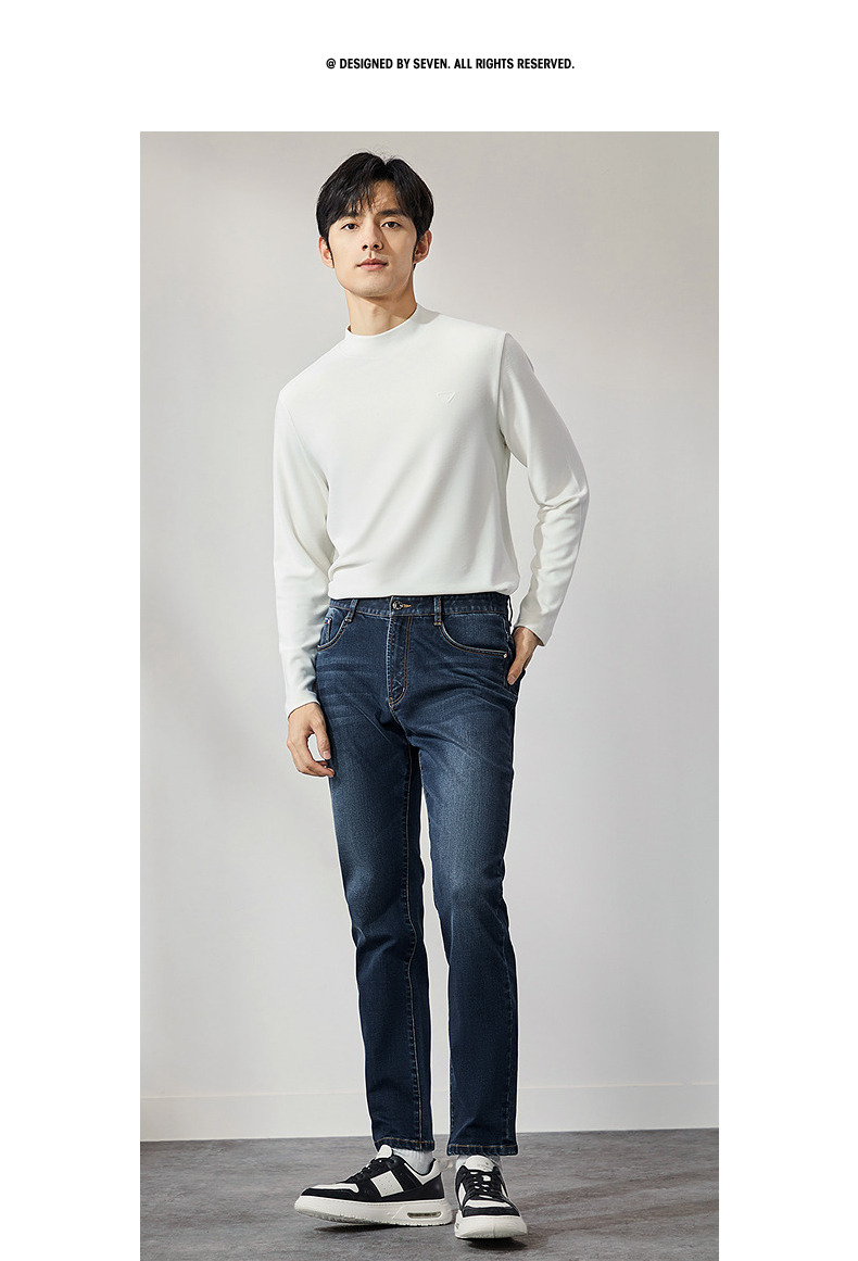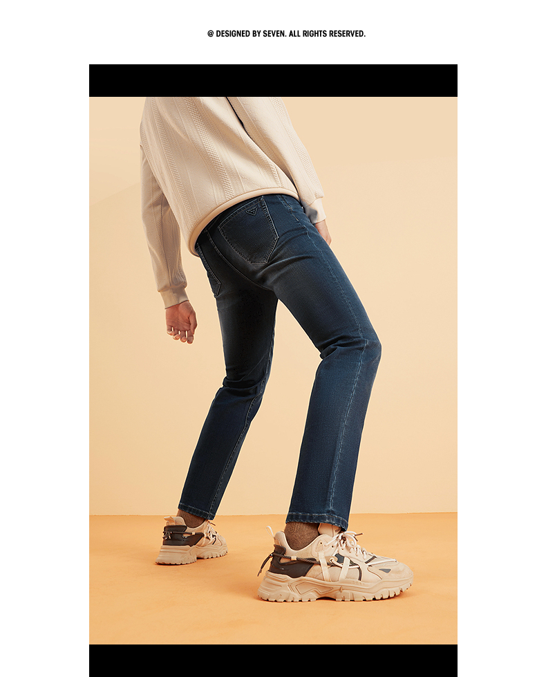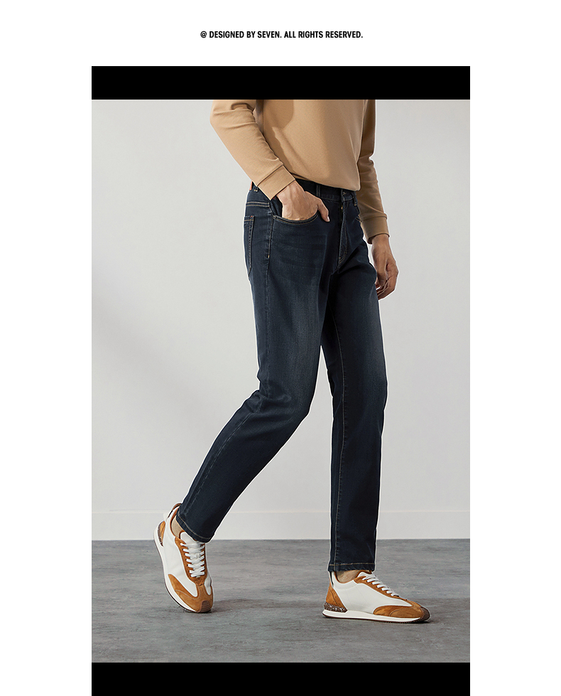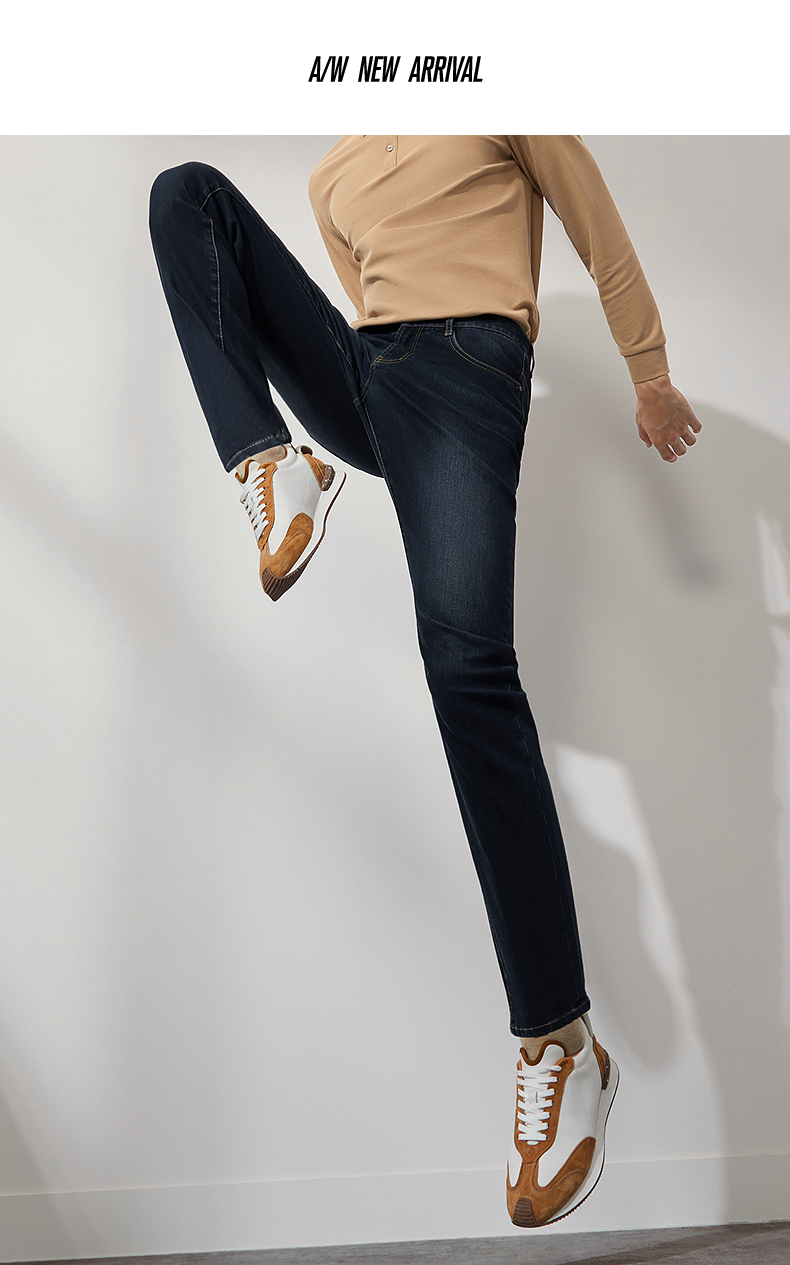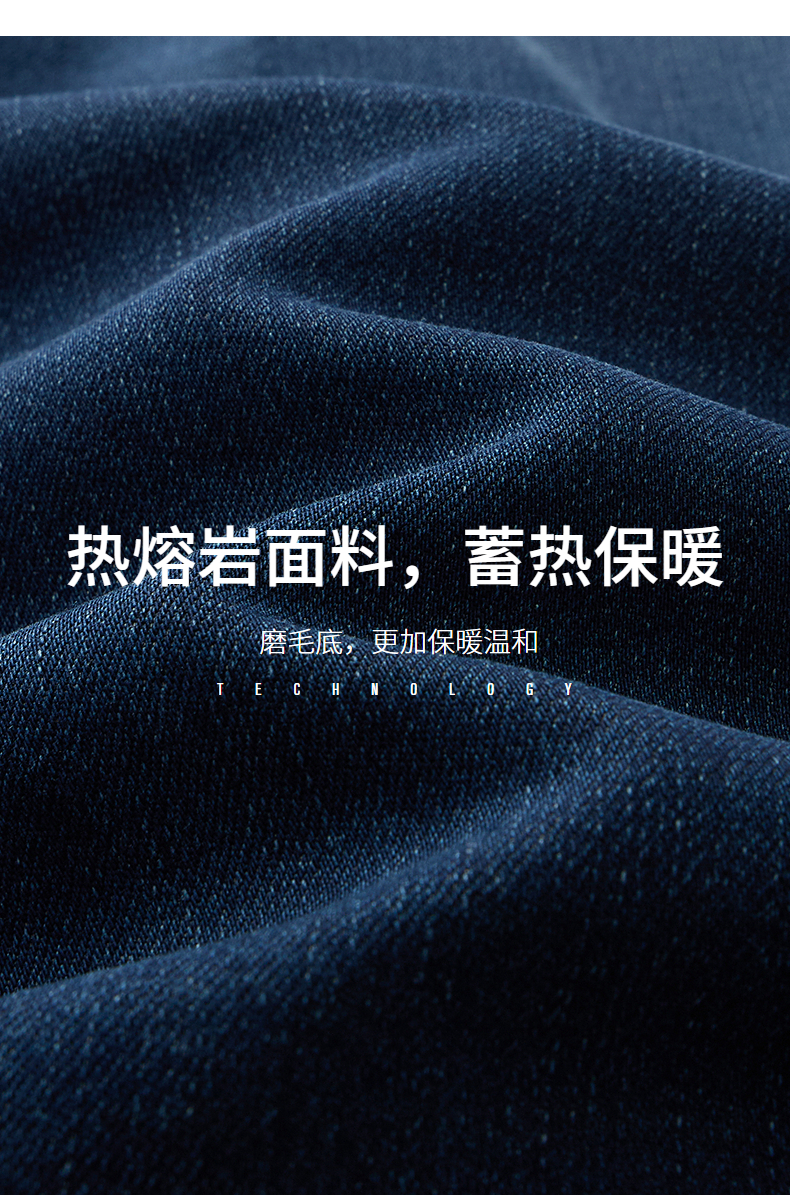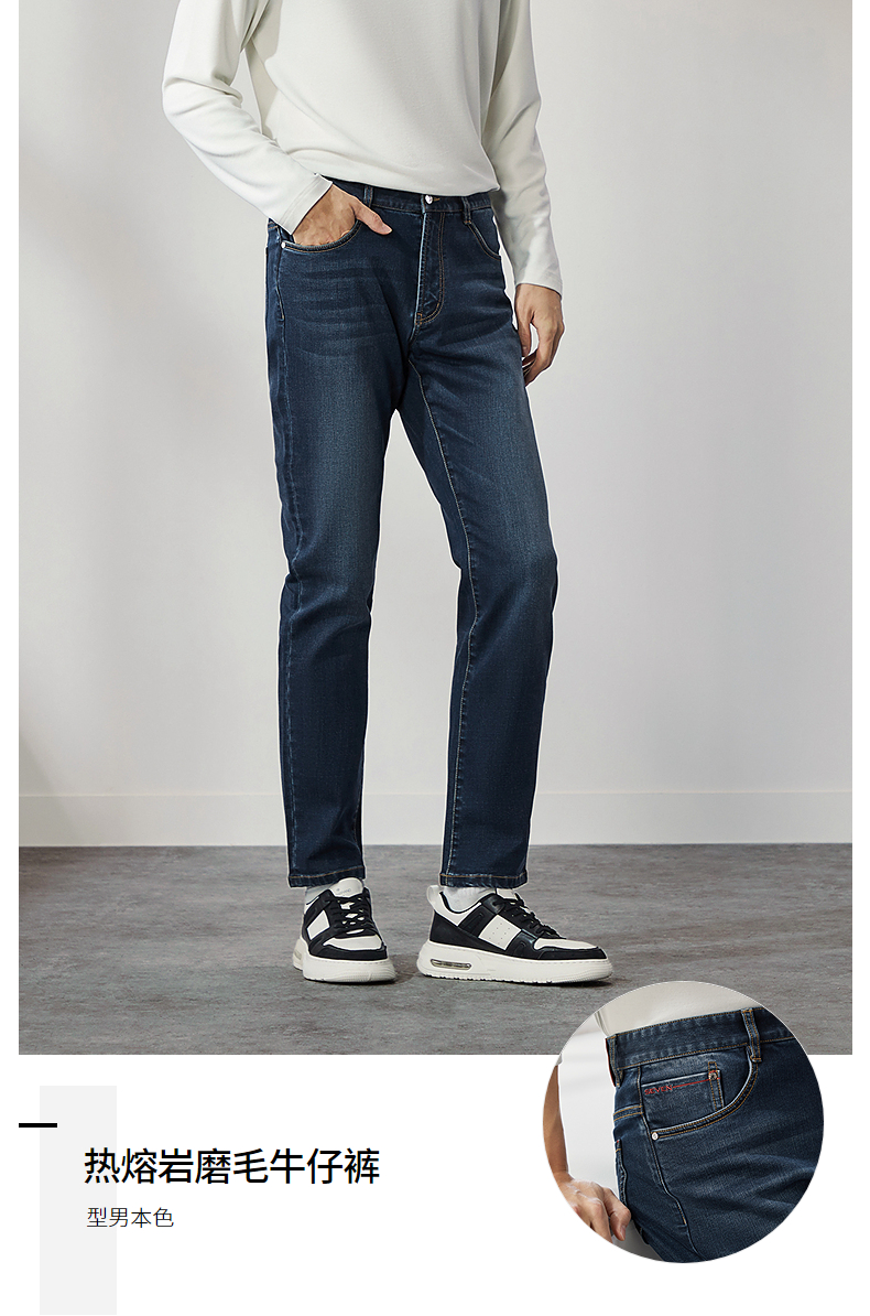 【热熔岩】柒牌保暖牛仔裤男2024秋冬新款弹力舒适中腰直筒长裤子 127H71510