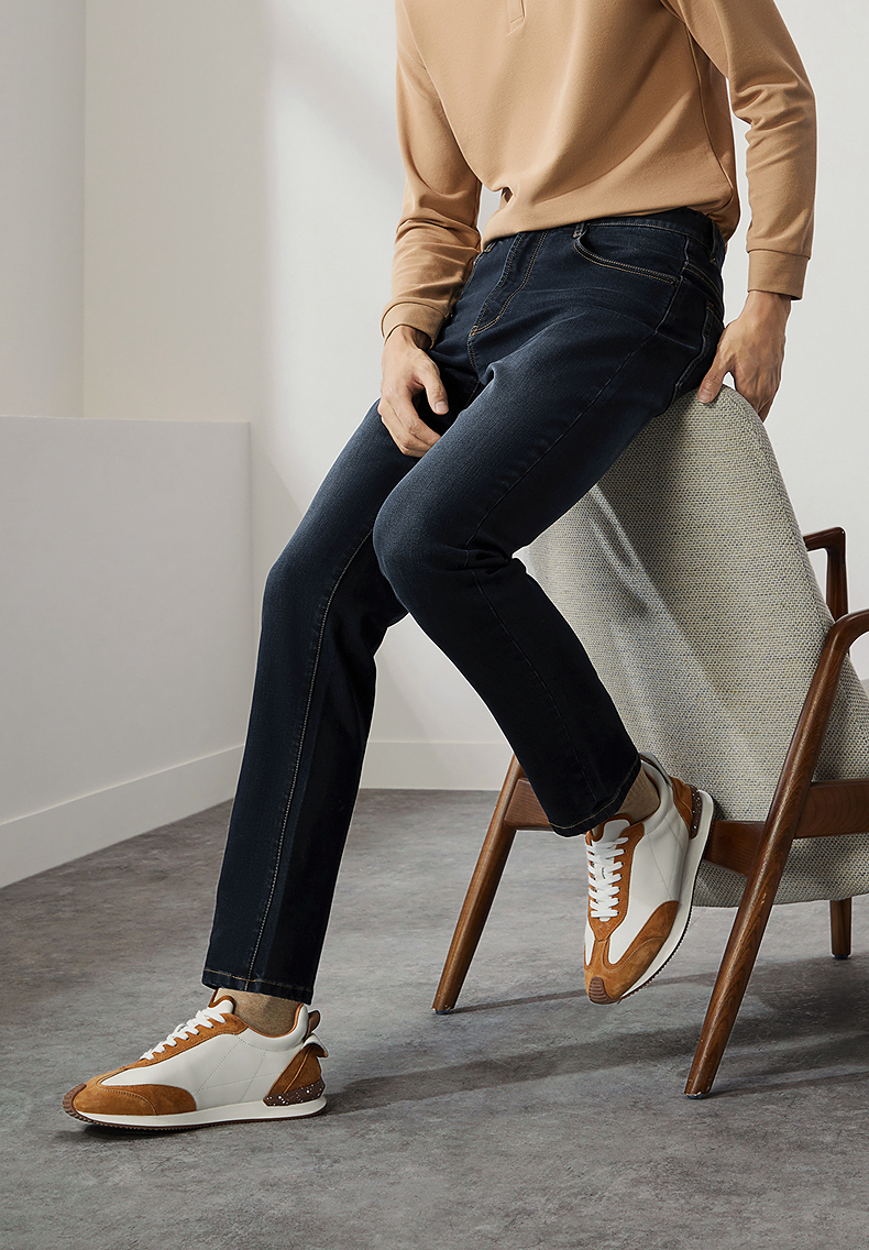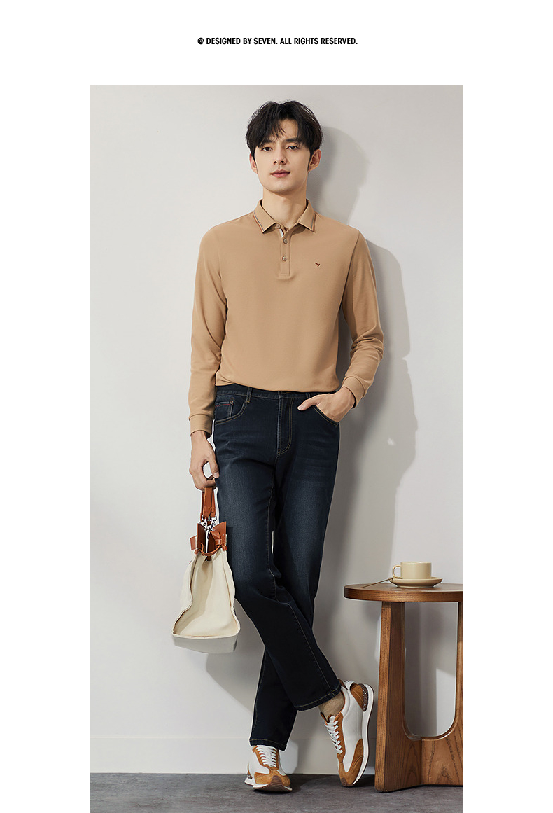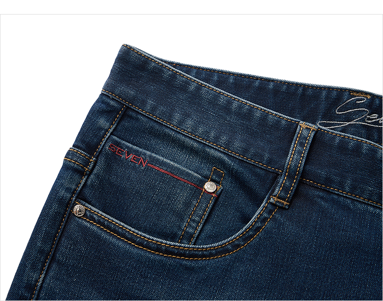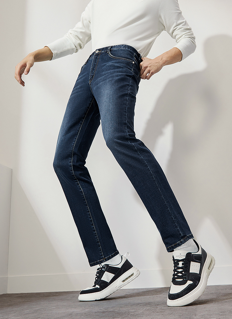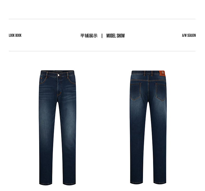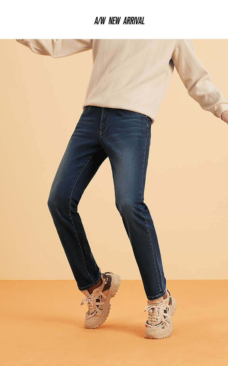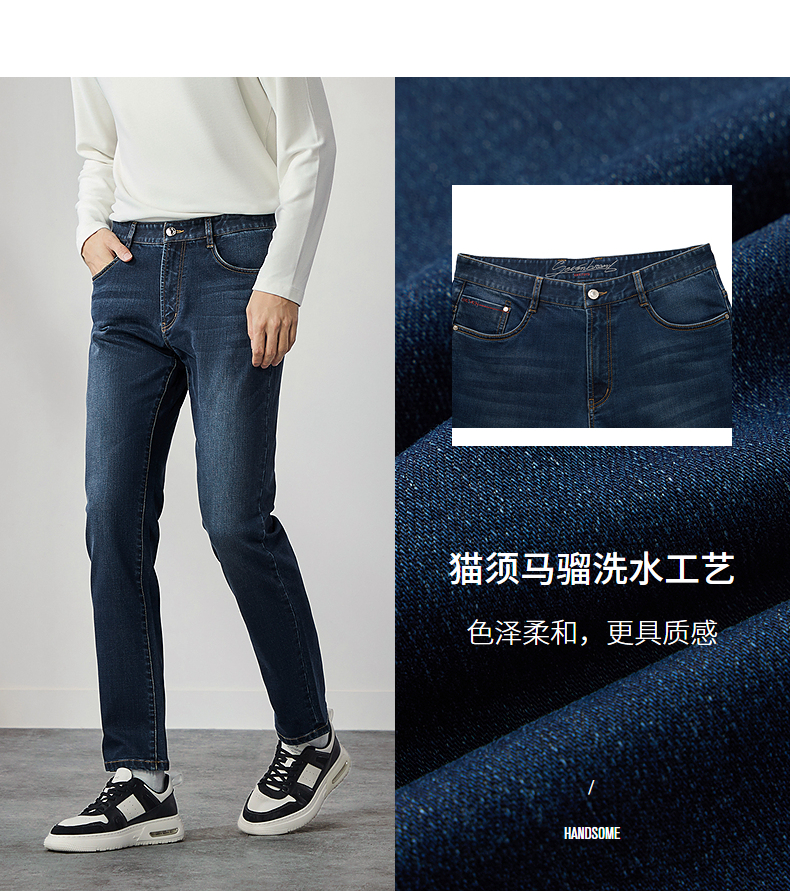 【热熔岩】柒牌保暖牛仔裤男2024秋冬新款弹力舒适中腰直筒长裤子 127H71510