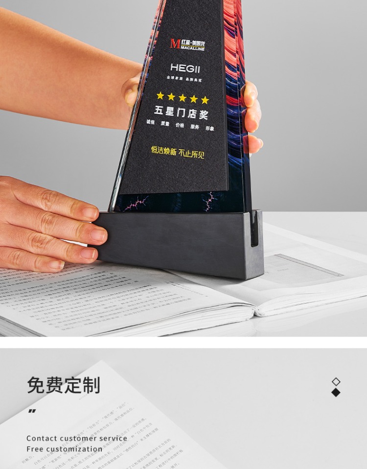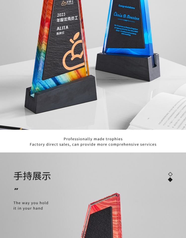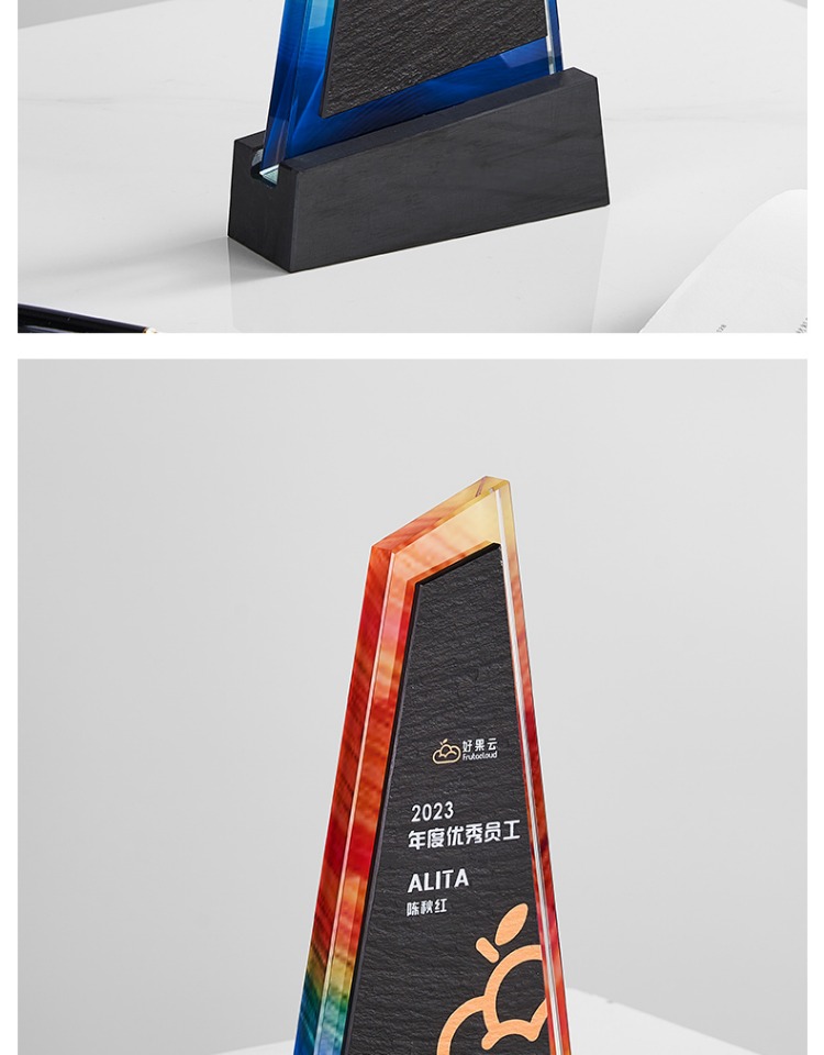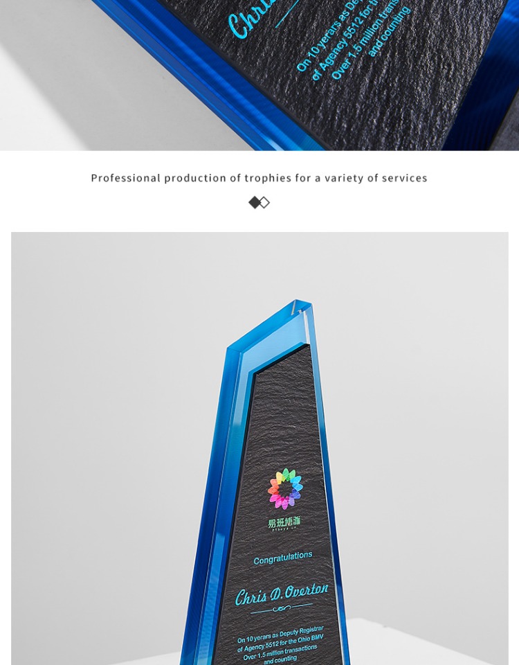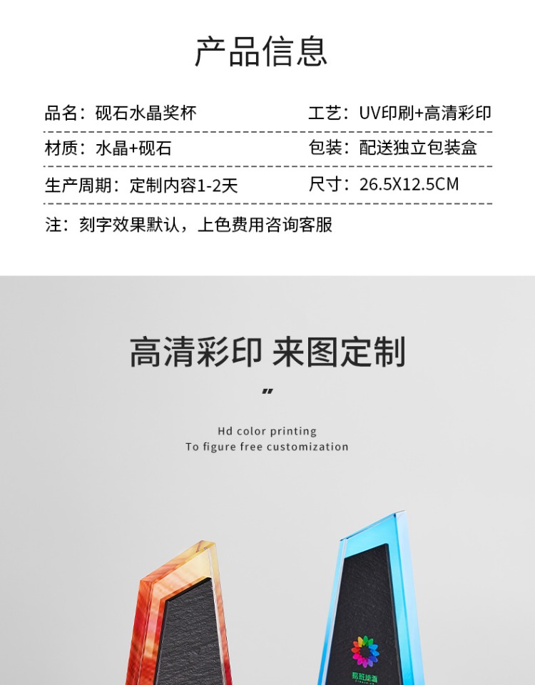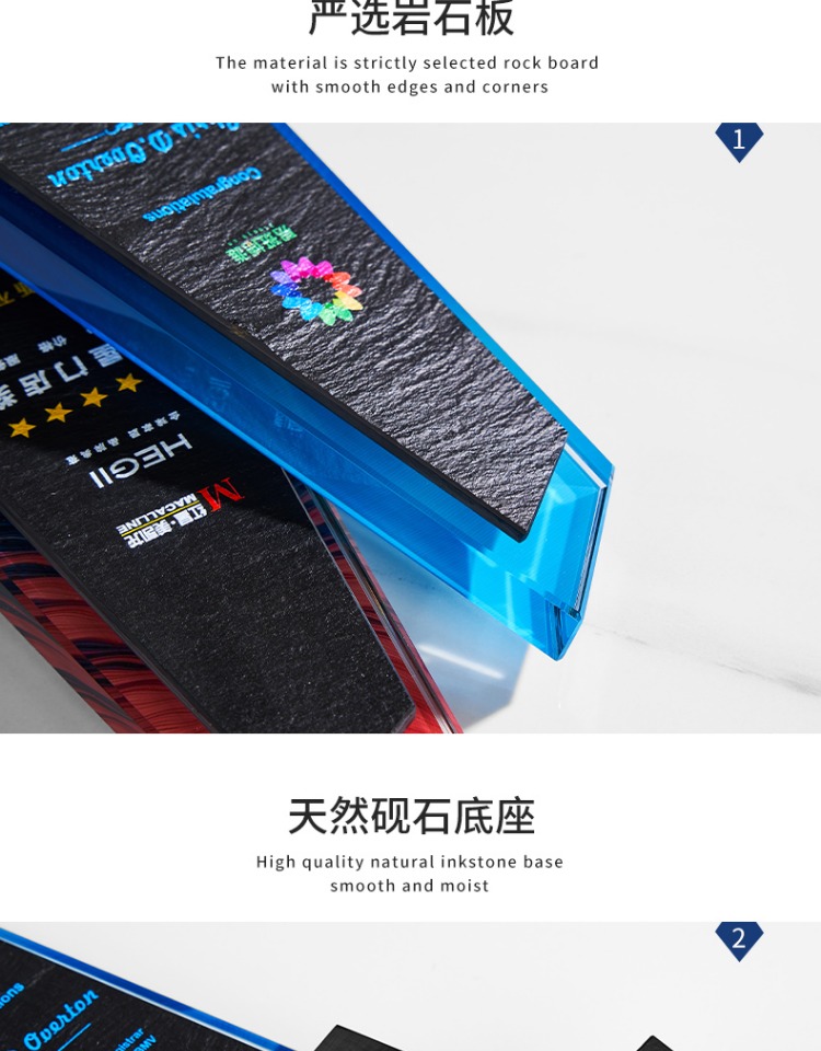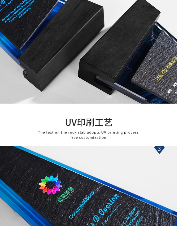 砚石水晶奖杯定制创意高档授权牌订制年会荣誉优秀员工奖牌定做