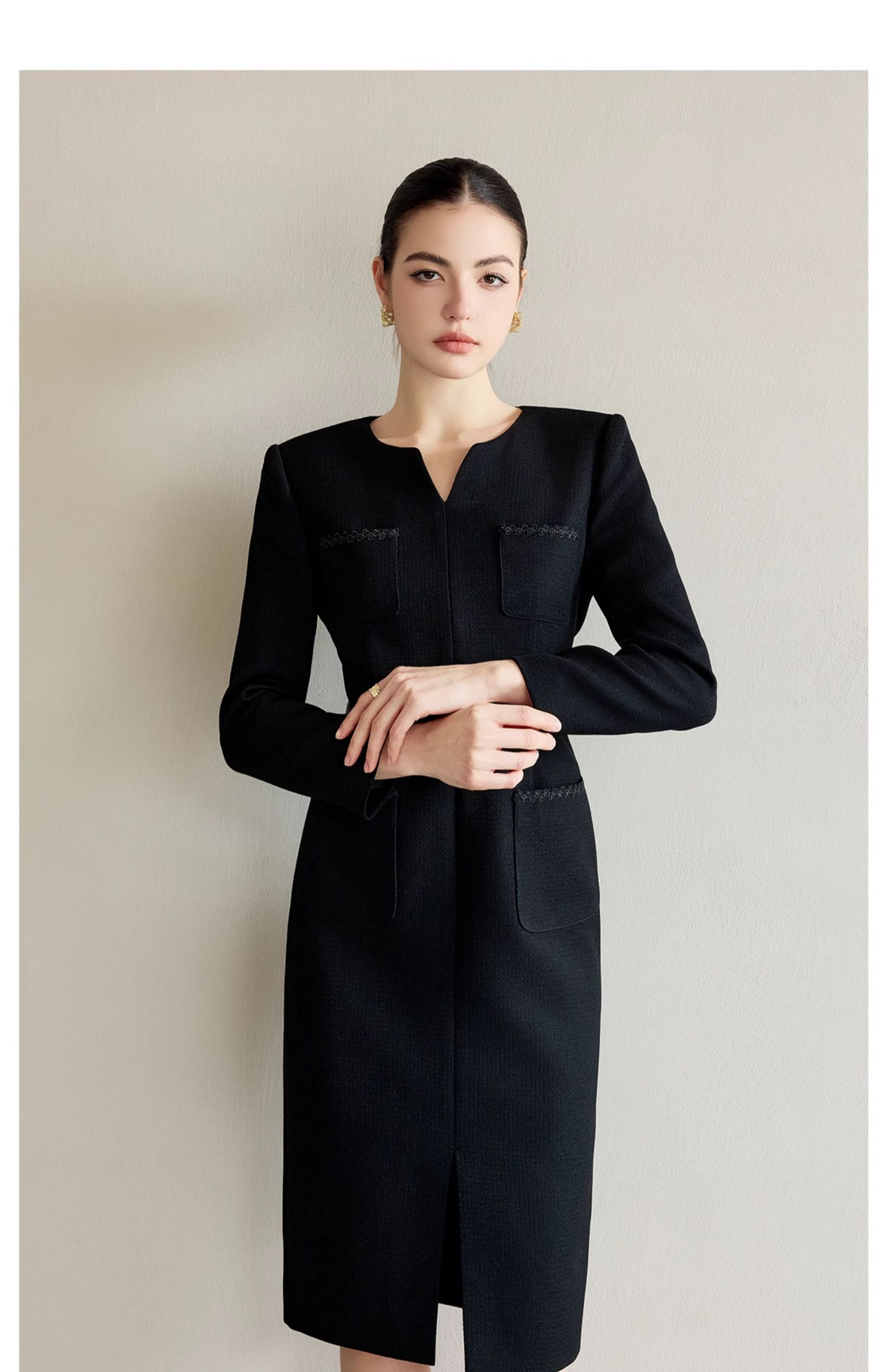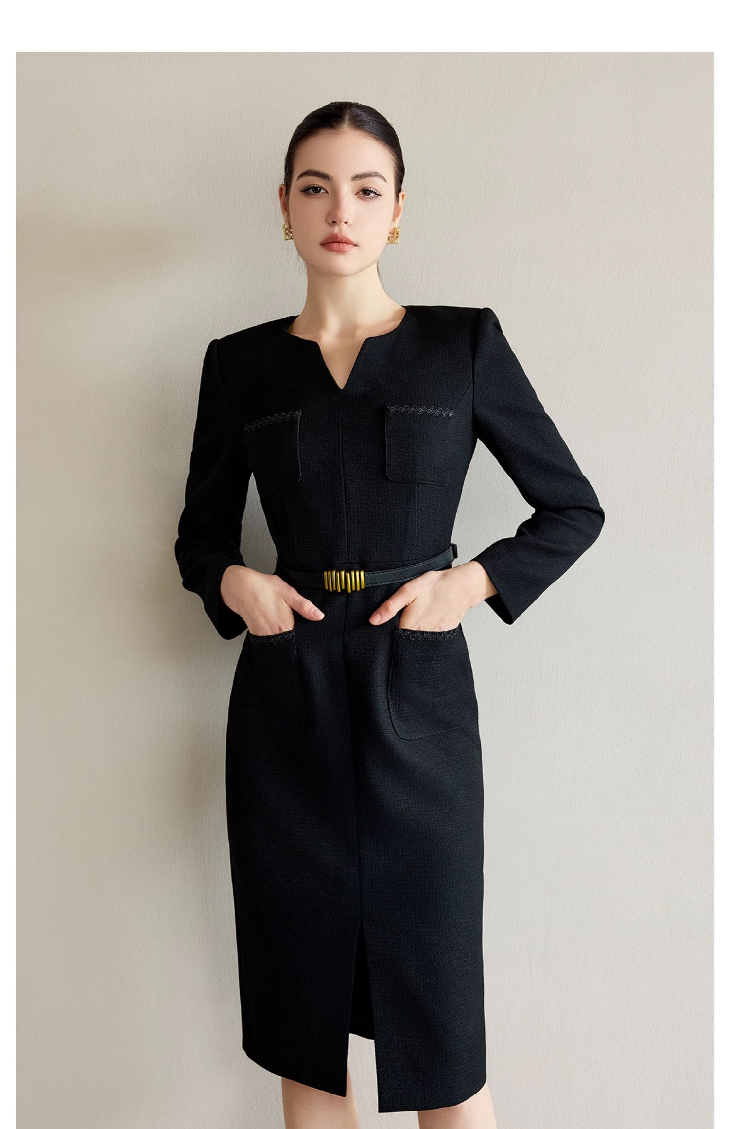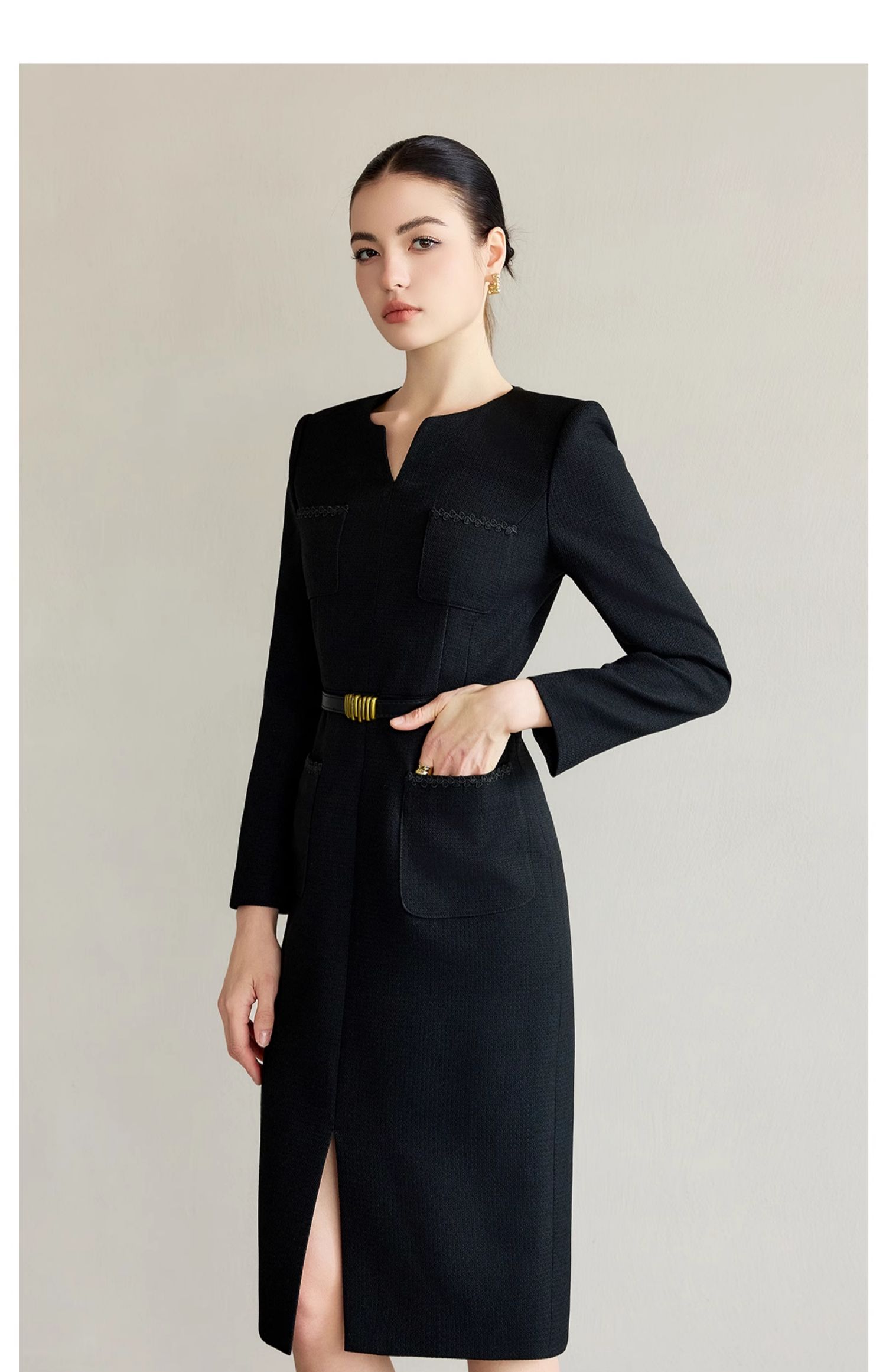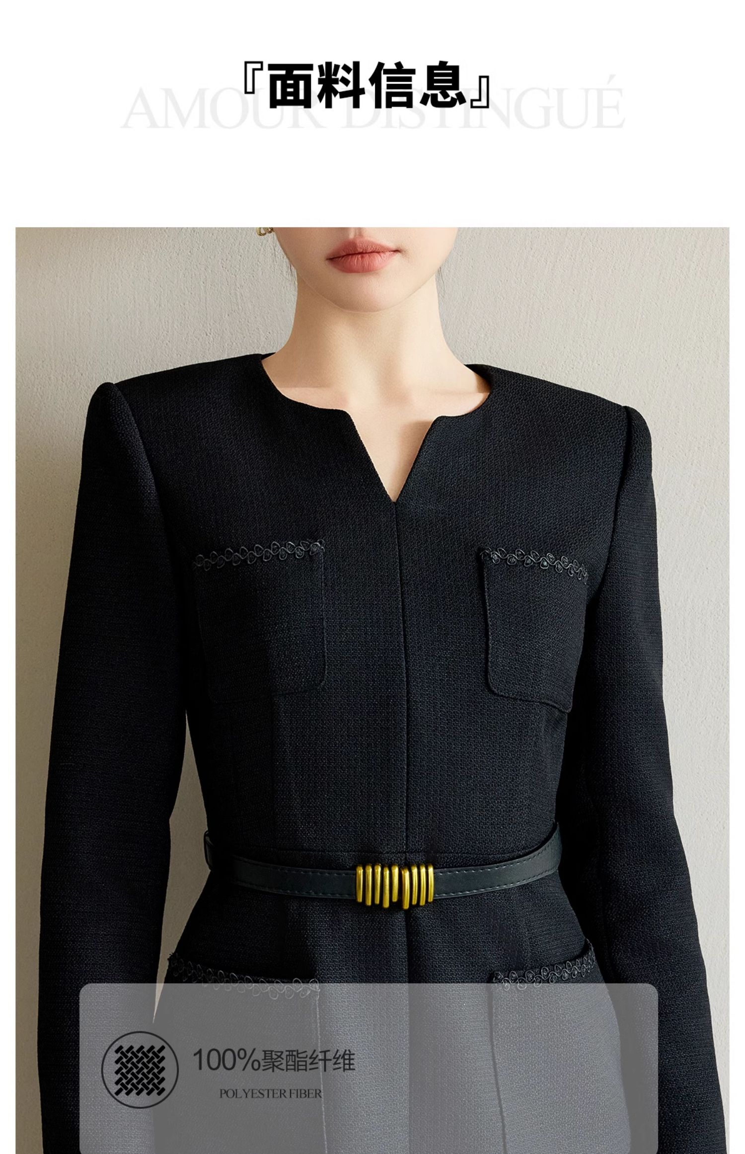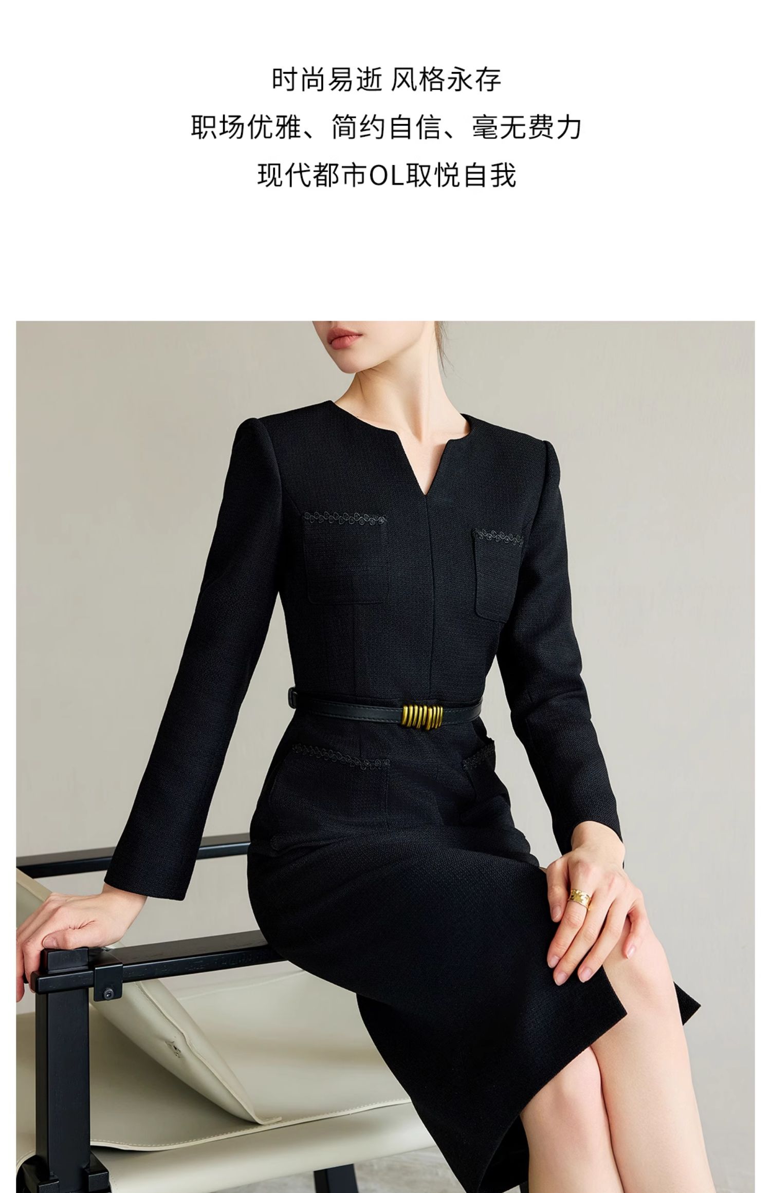 IWY/时尚黑色职业西装连衣裙女气质编织肌理感西服裙子正式场合工作服Q1290