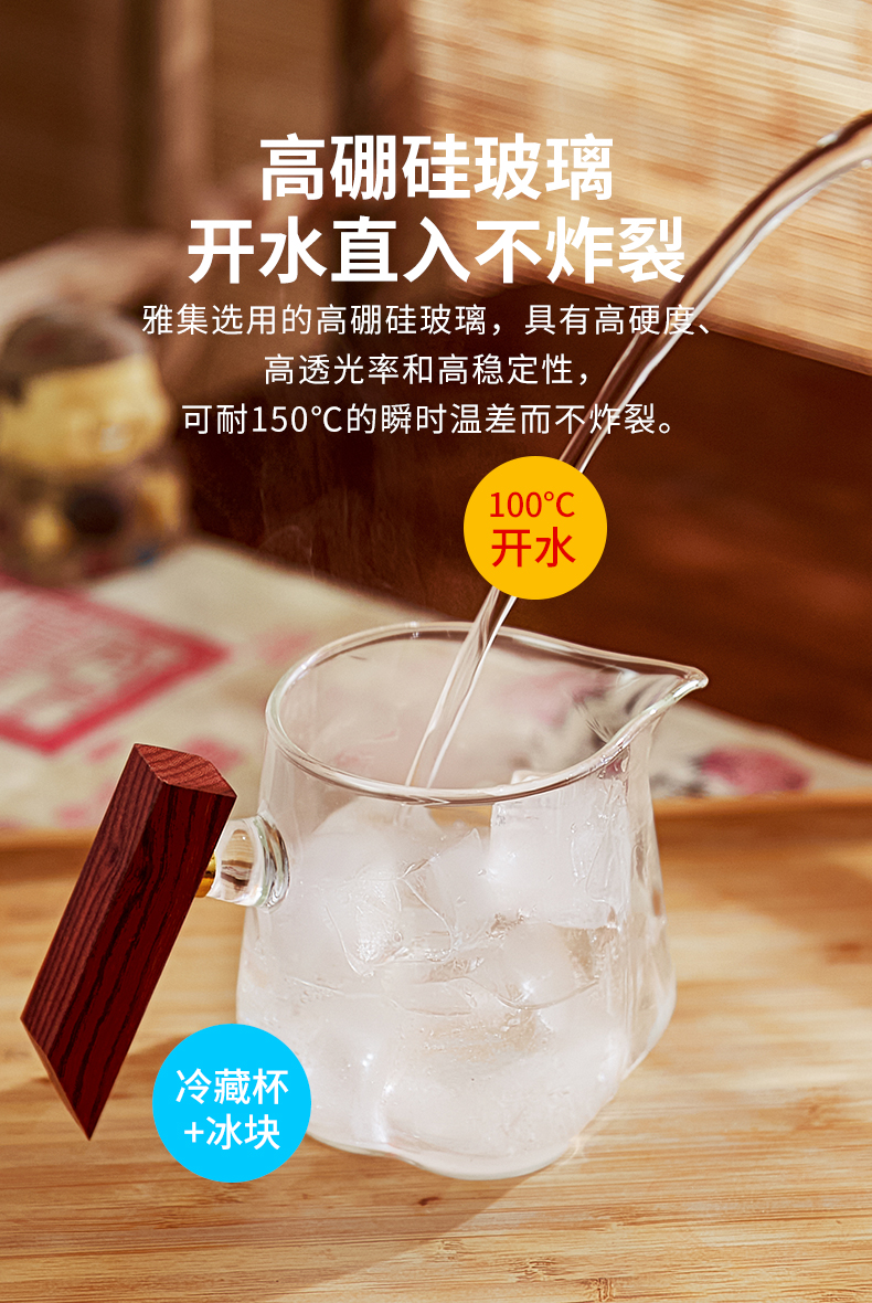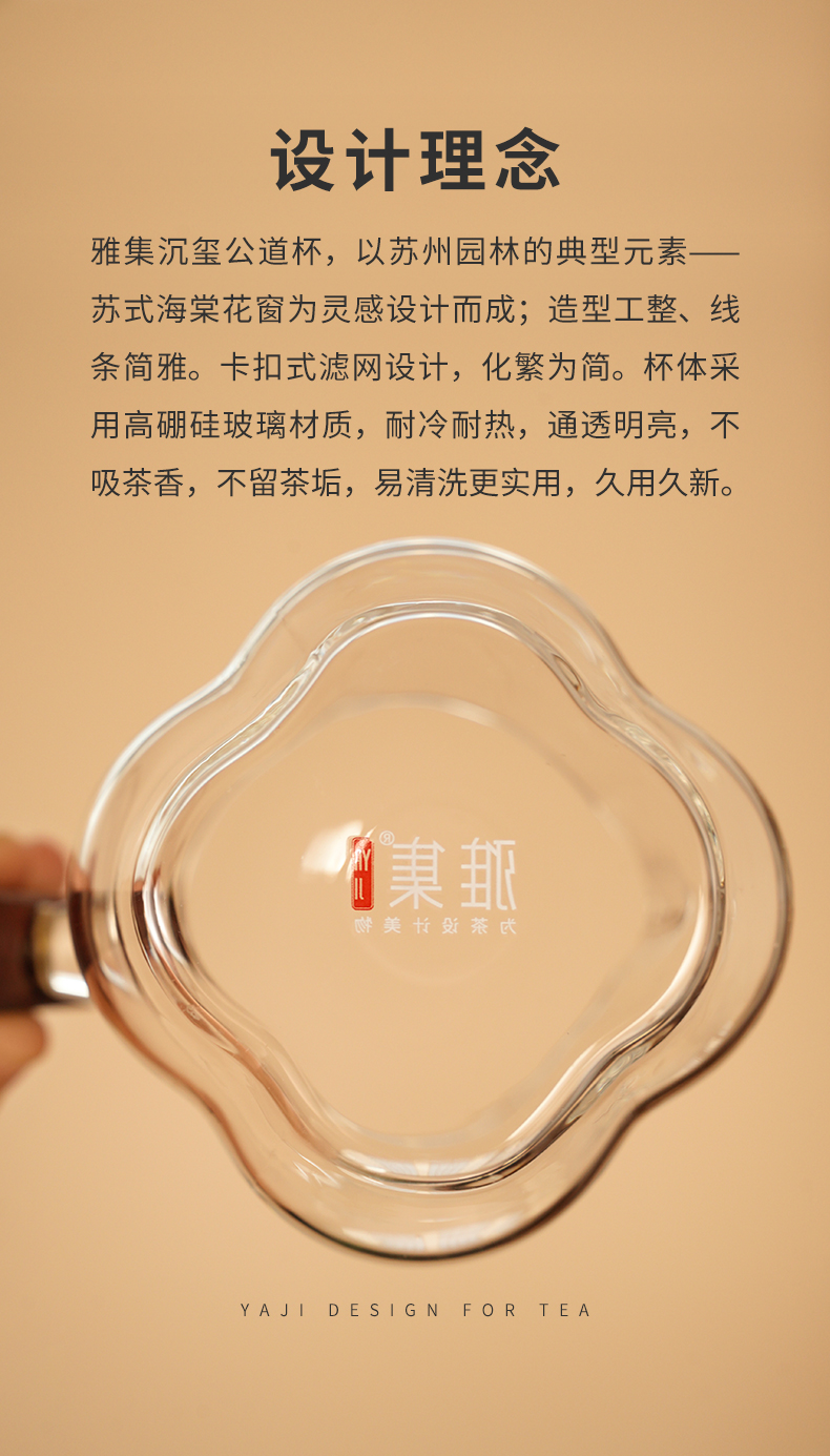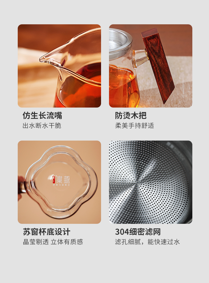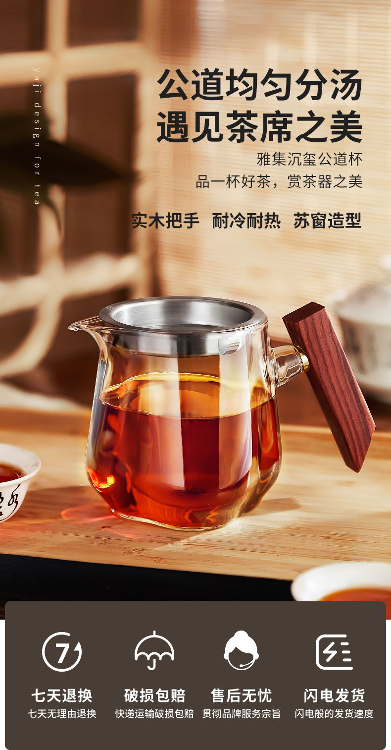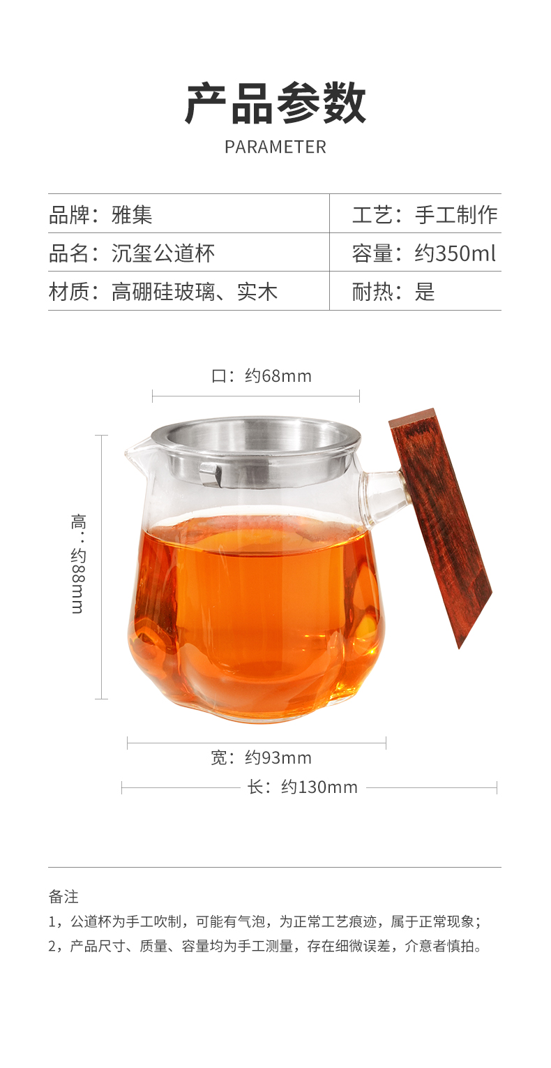 雅集茶具沉玺公道杯350ml(木把-带茶隔)