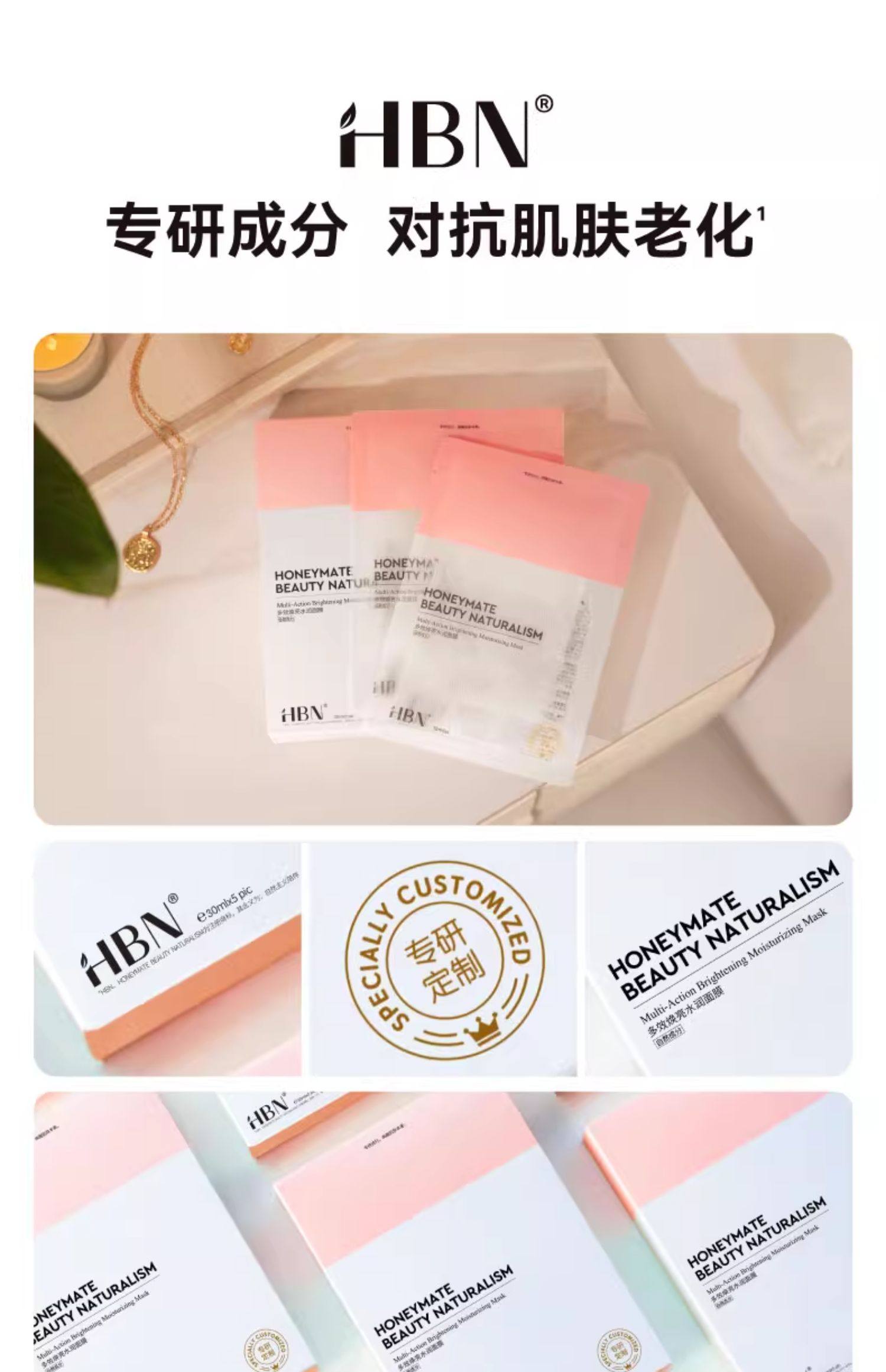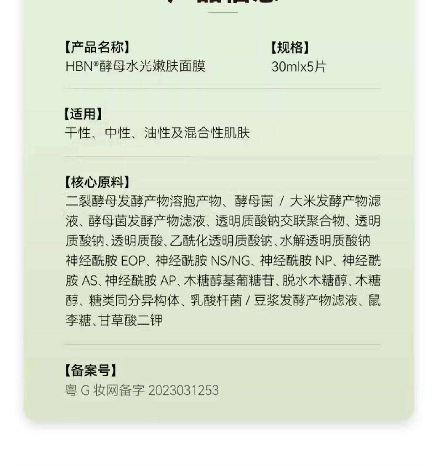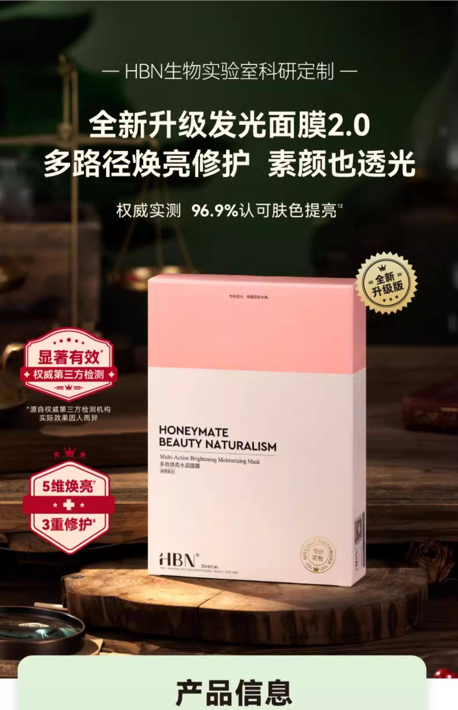 HBN酵母水光嫩肤面膜/多效焕亮面膜2.0 玻尿酸补水保湿修护贴片面膜
