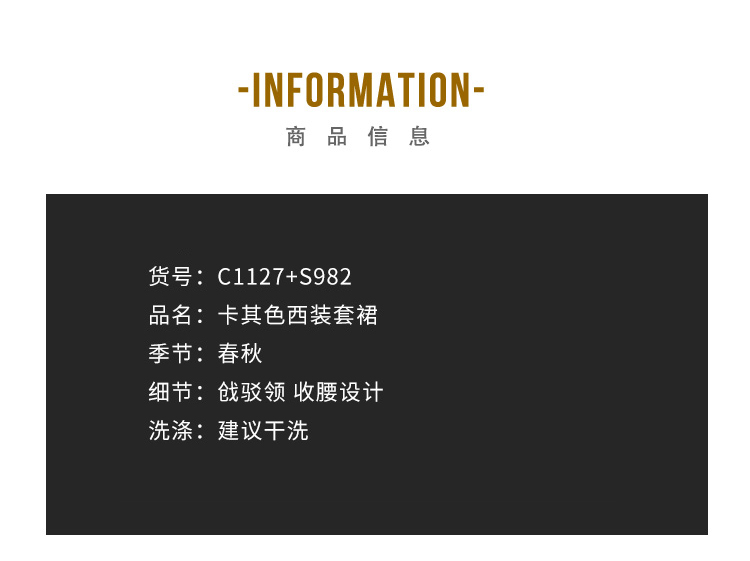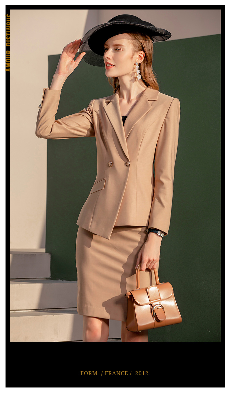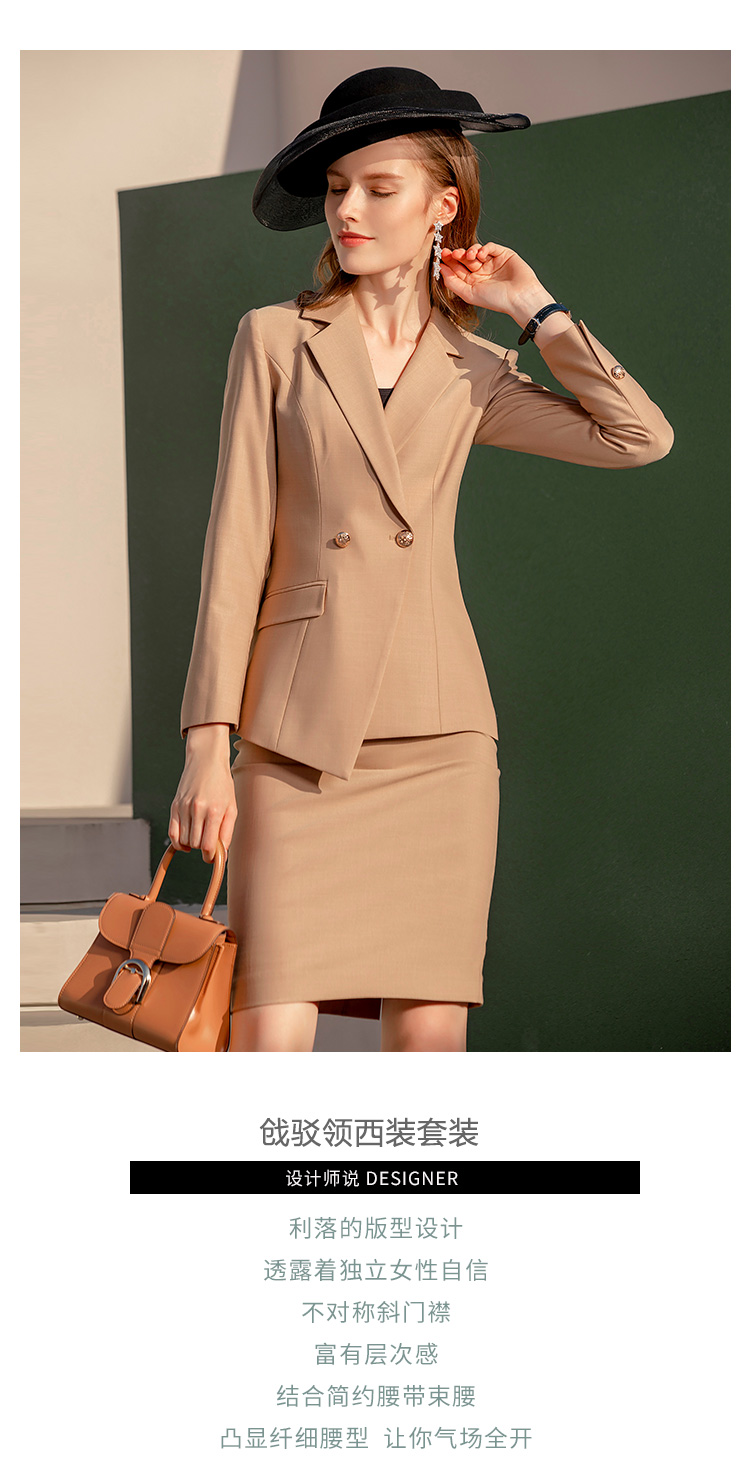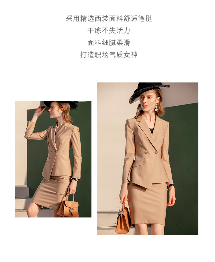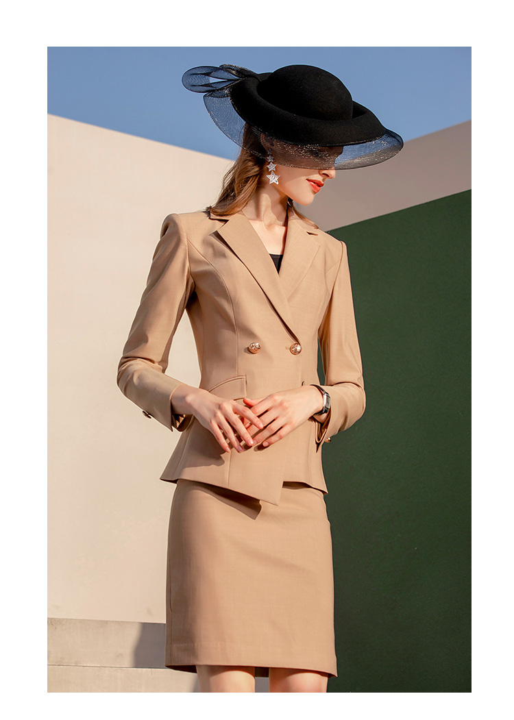 IWY/卡其色西装套装女通勤套裙不对称气质高端名媛ol职业装女C1127+S982