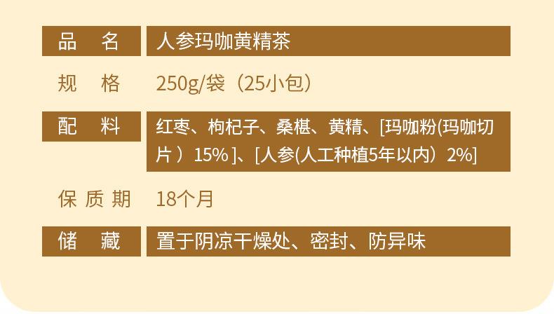 谯韵堂 人参玛咖黄精茶 250g人参桂圆枸杞玛咖五宝茶量贩装三角包