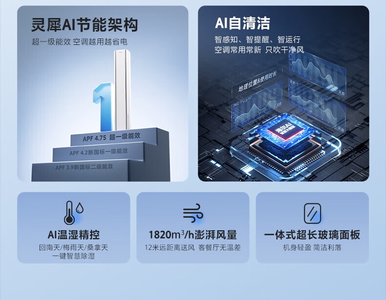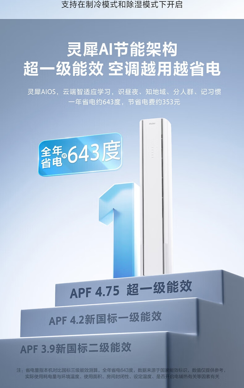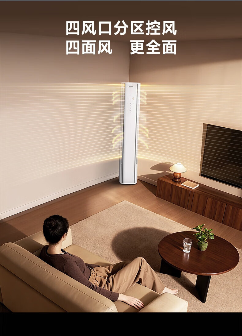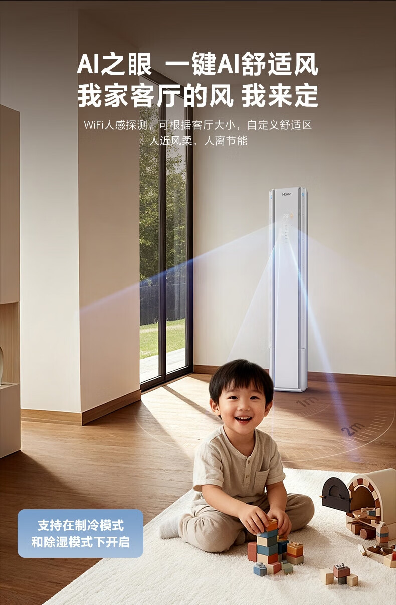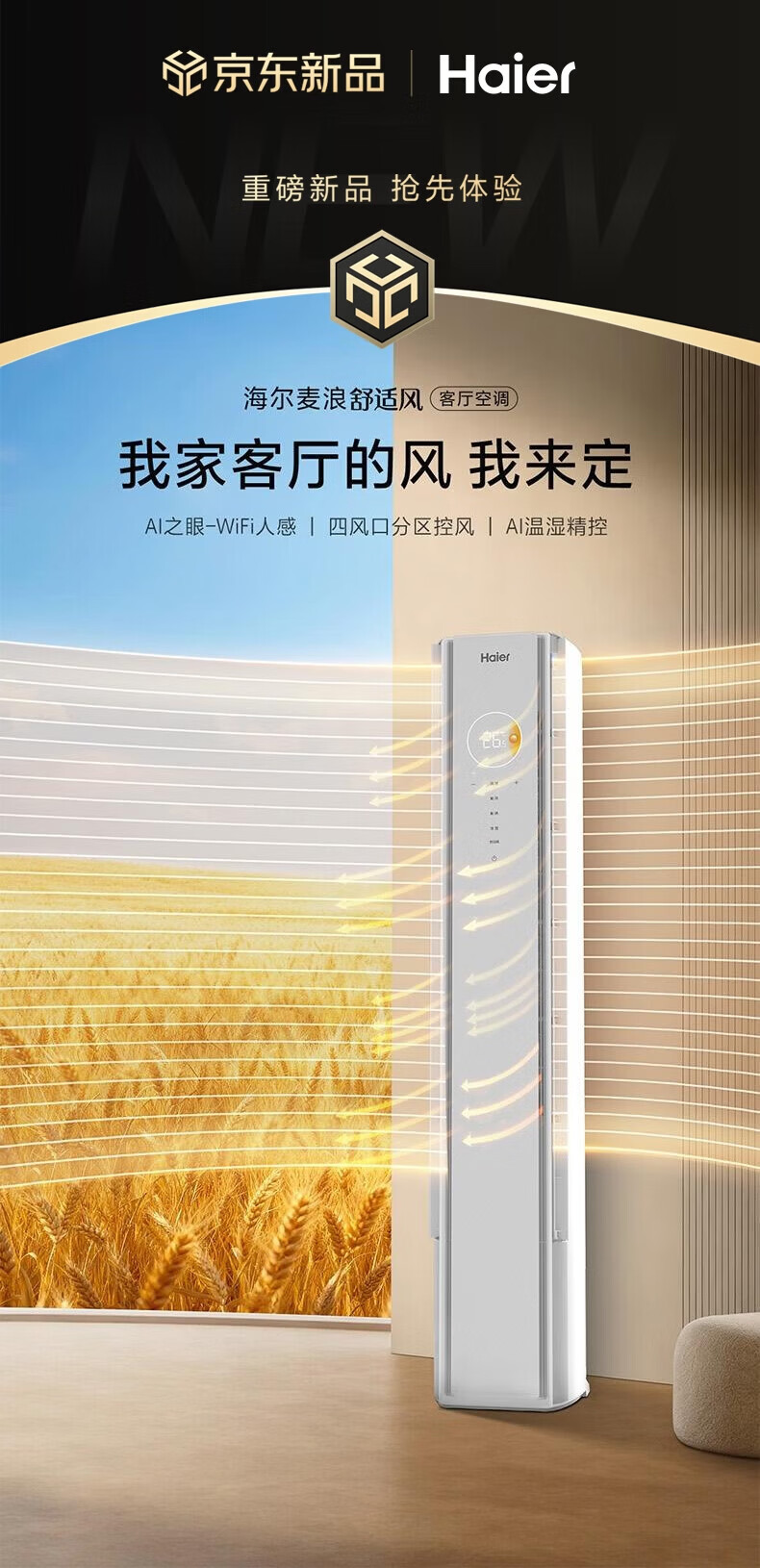 海尔空调舒适风麦浪 3匹 新一级能效变频 冷暖两用 双排铜管 客厅立式柜机 以旧换新 雷达智慧人感科技 3匹 72E2-1Pro