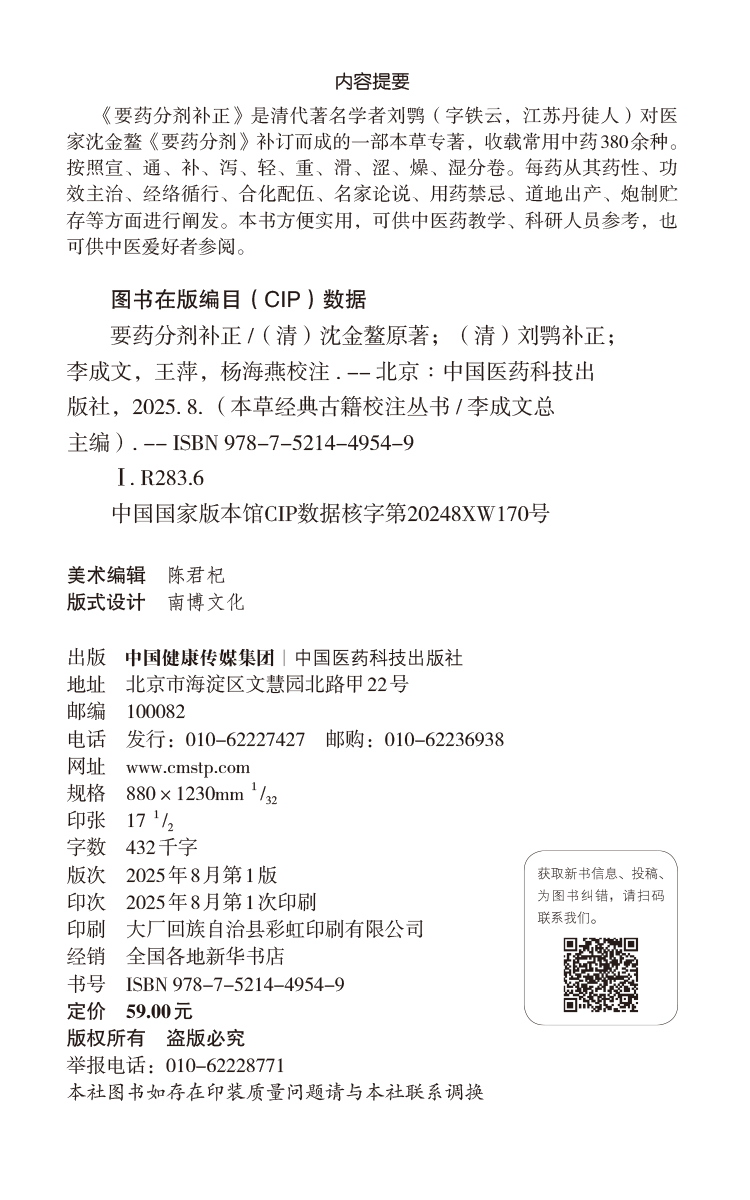 书名:要药分剂补正(本草经典古籍校注丛书)