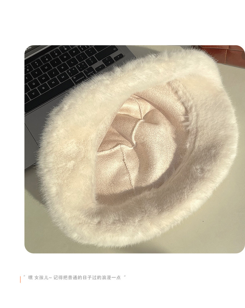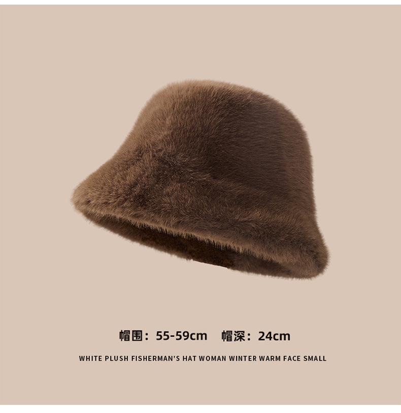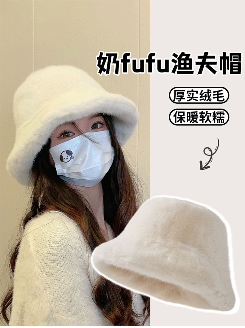【奶fufu渔夫帽!保暖软糯】厚实绒毛,白色毛绒帽子女冬季可爱网红加厚显脸小网红时尚仿水貂跨境渔夫帽。rc