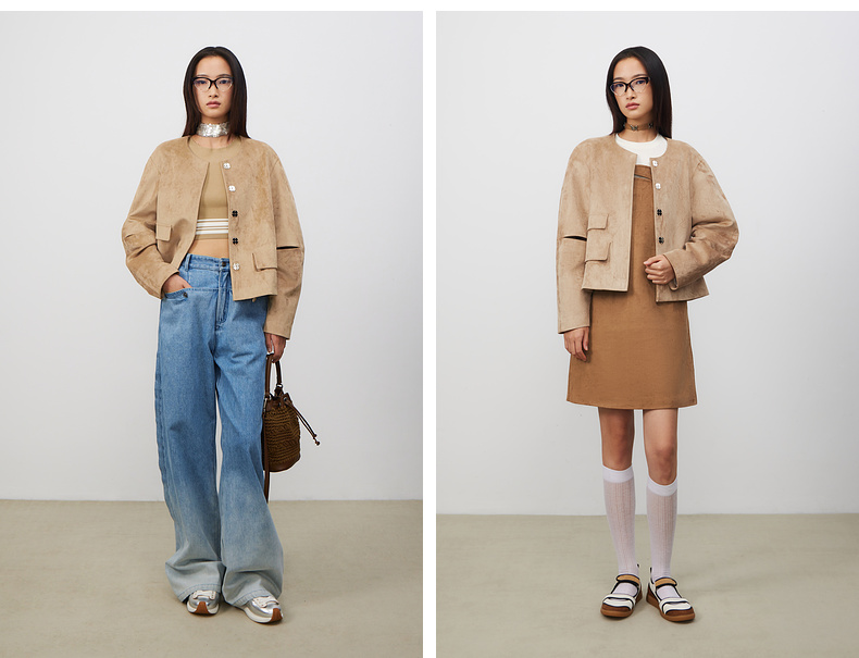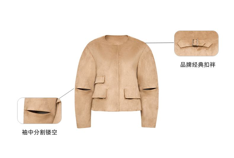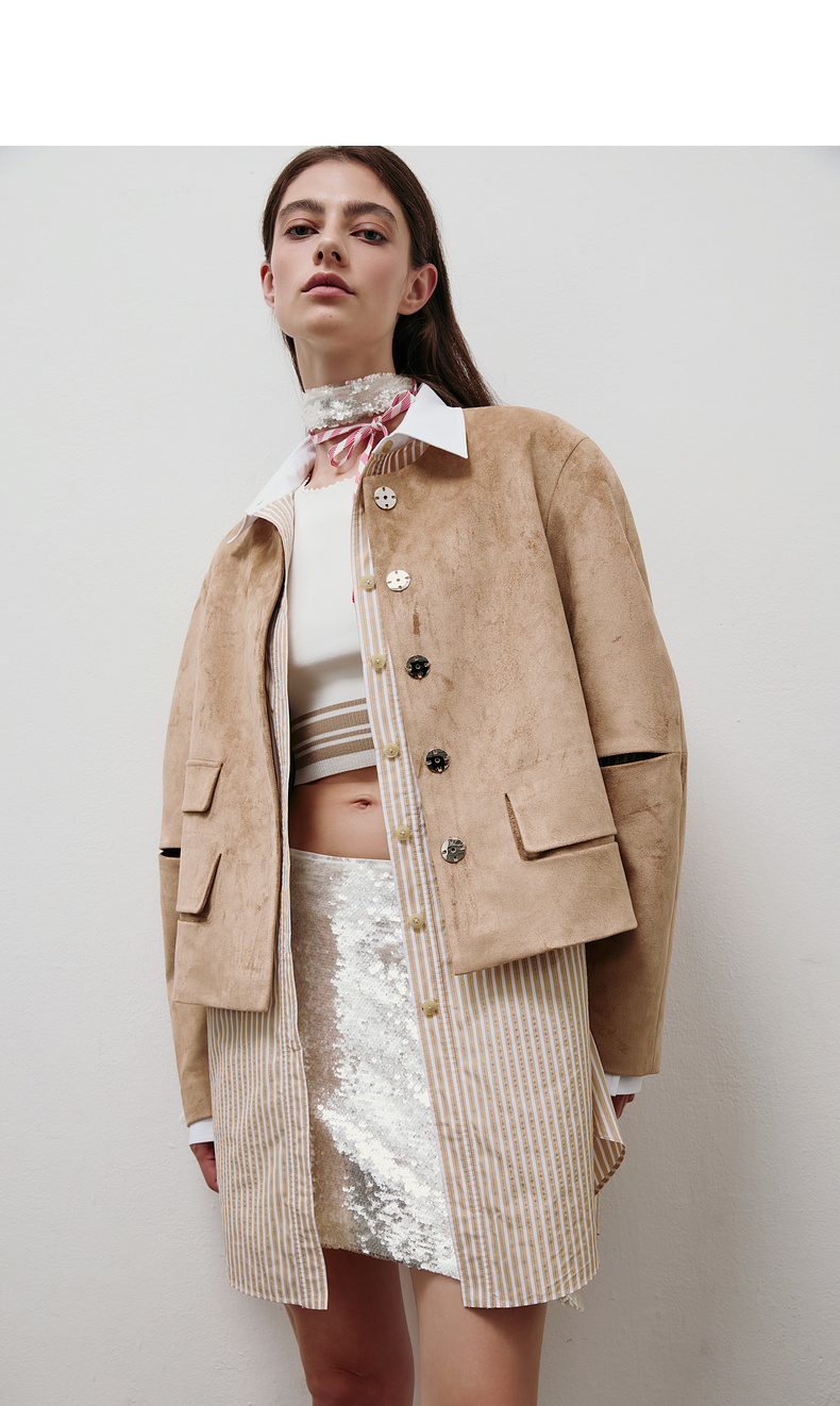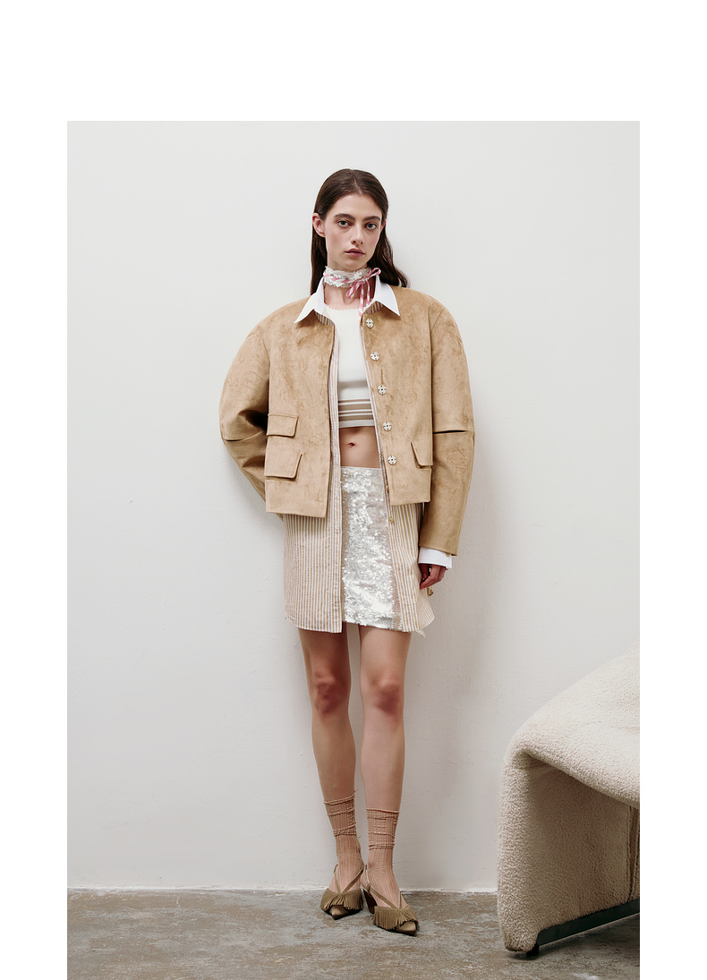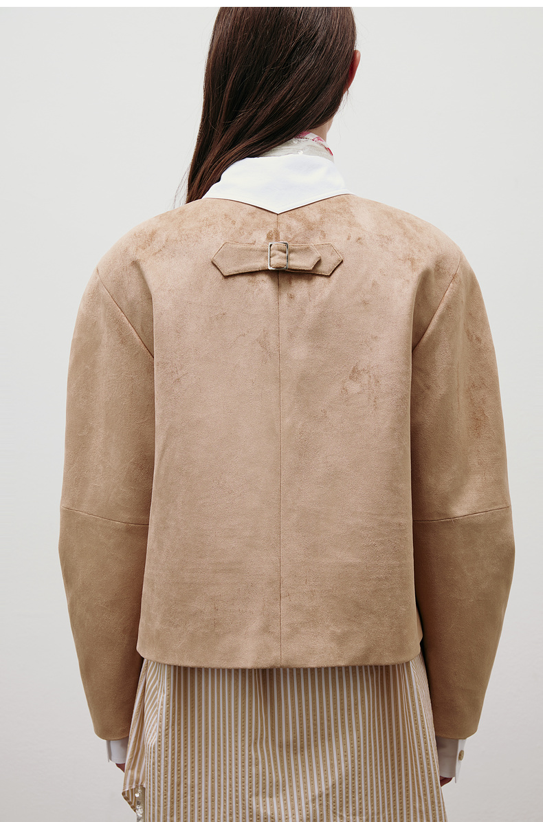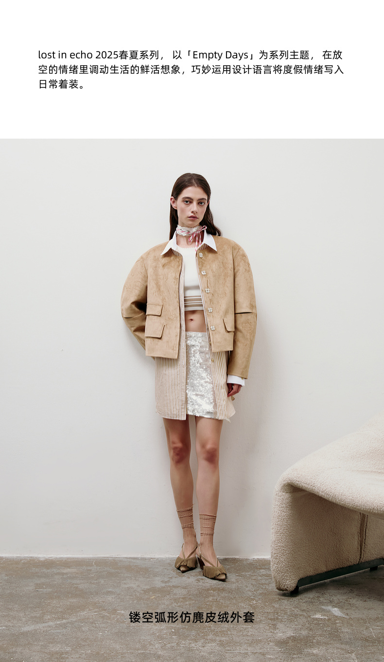 [福利价]lost in echo2025春夏新款经典扣袢弧形高级仿麂皮绒复古短款外套