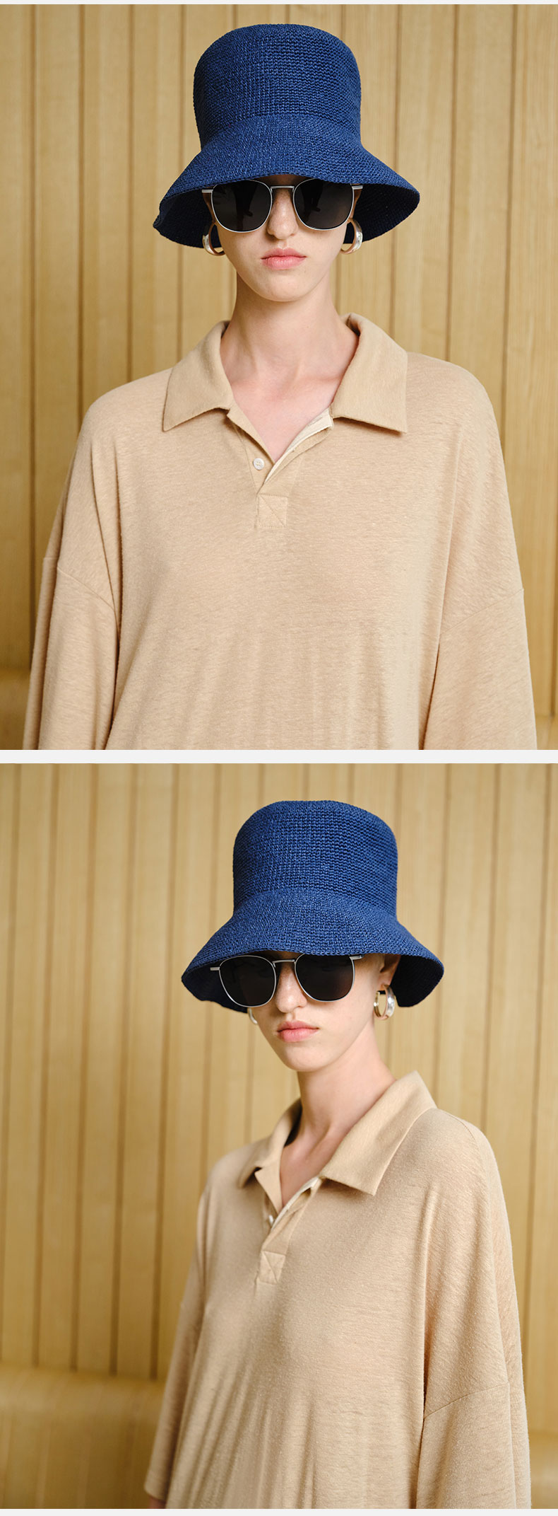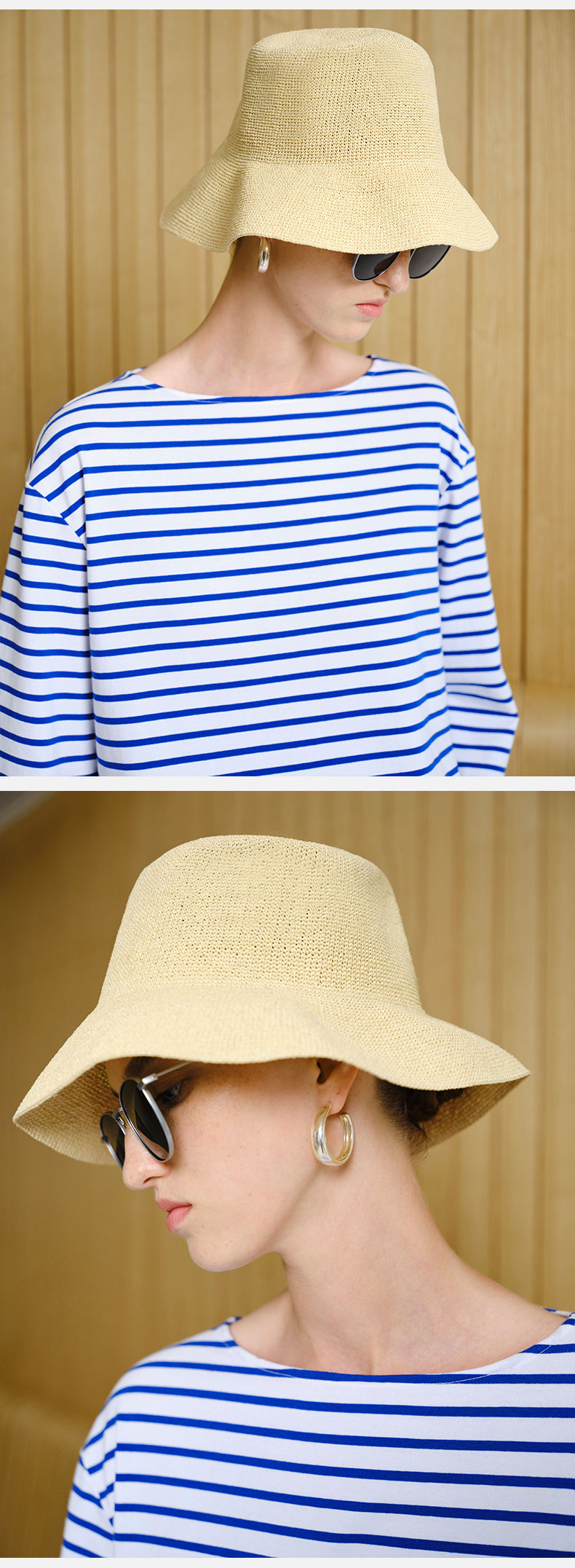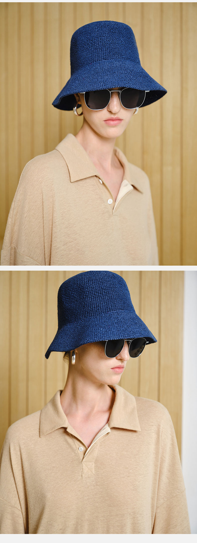 HIDEMI 度假系列手工编织渔夫帽草帽 米色/深蓝色
