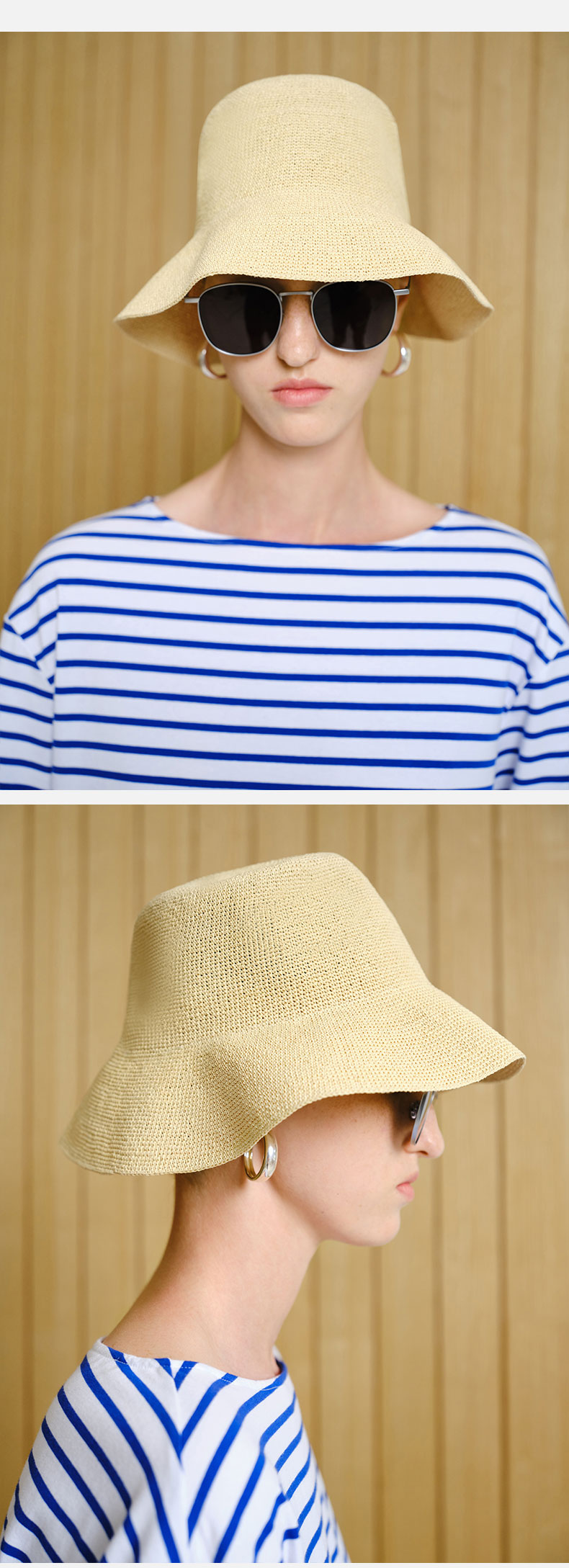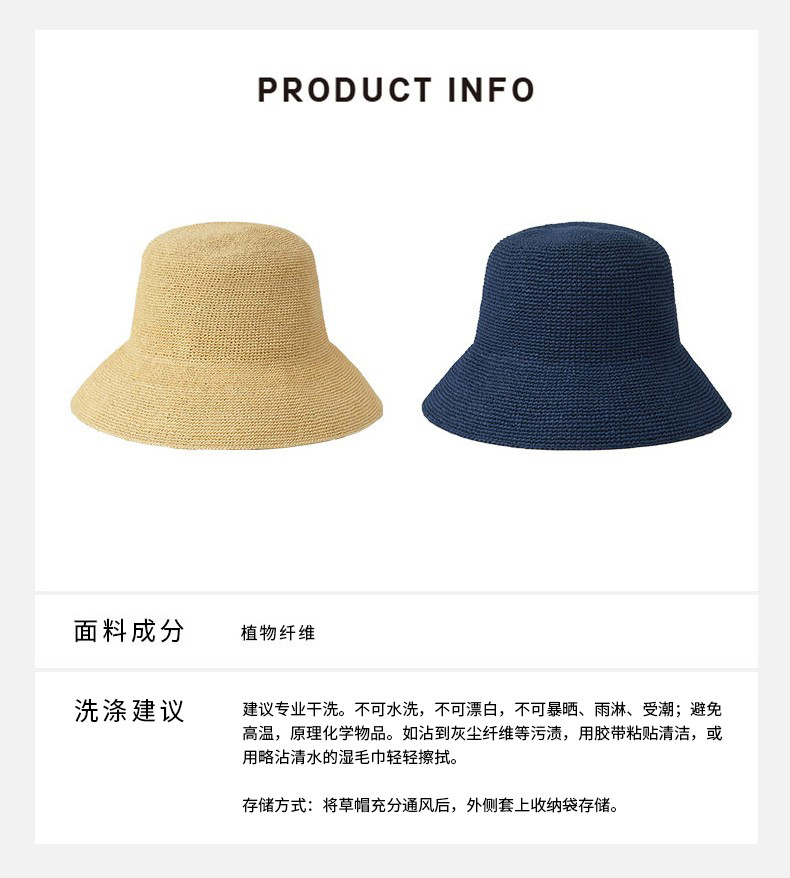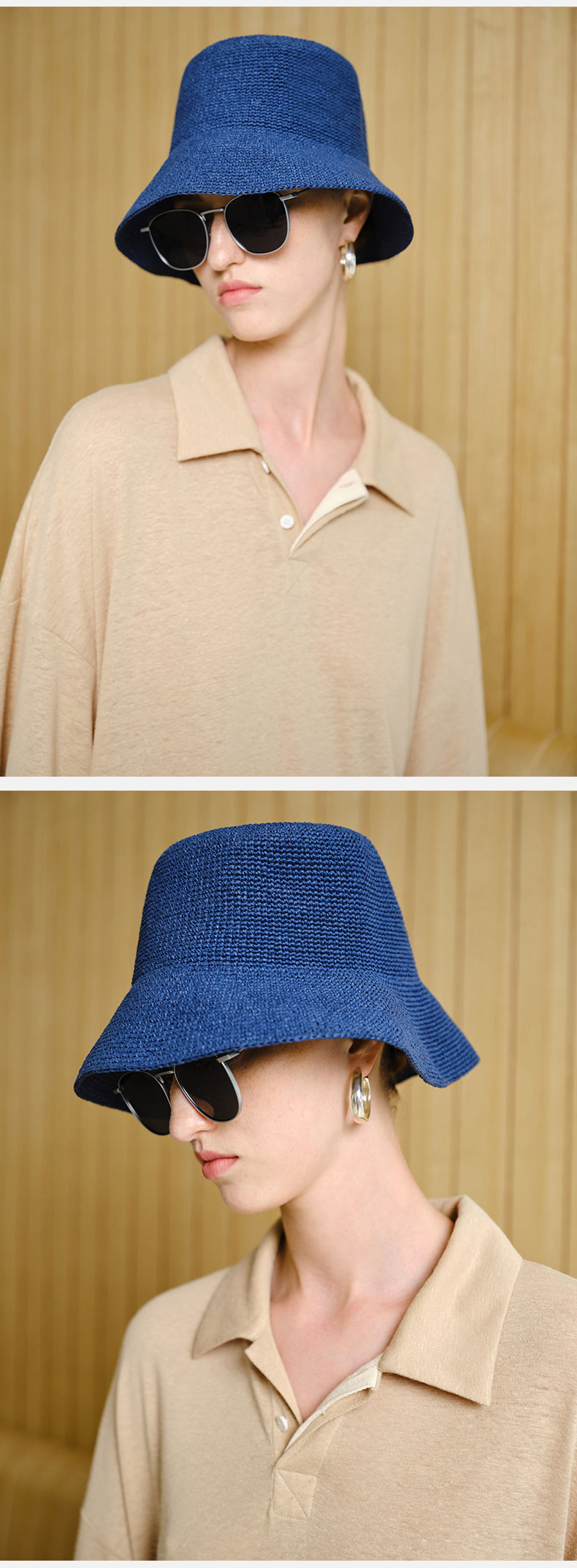 HIDEMI 度假系列手工编织渔夫帽草帽 米色/深蓝色
