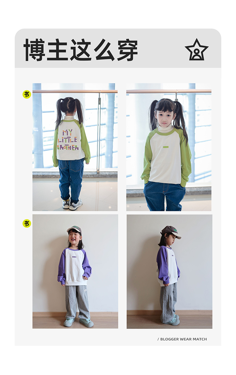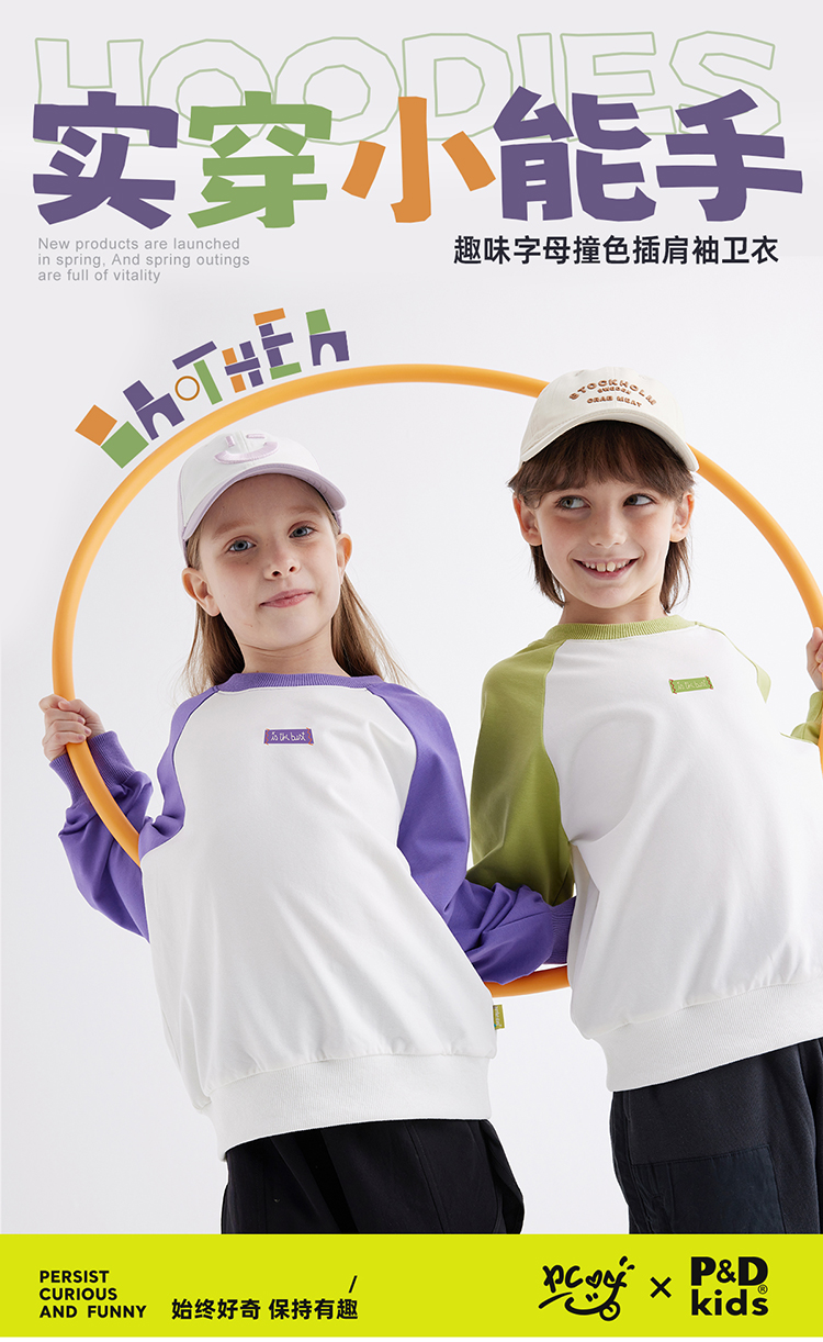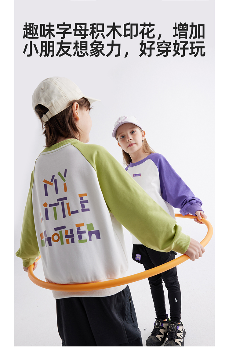 【春游必备 实穿小能手】儿童趣味字母撞色插肩袖卫衣 PCWY2415