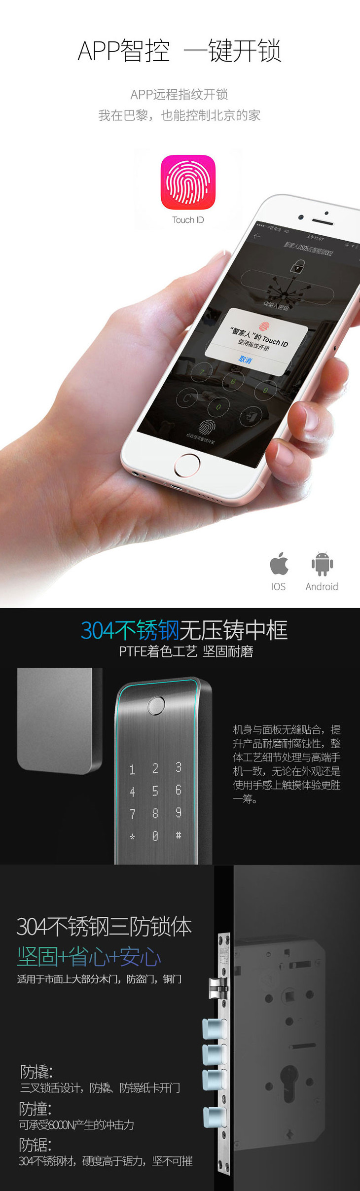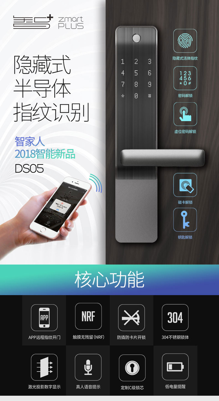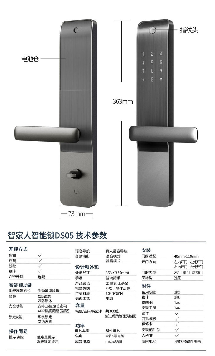 智家人智能锁指纹锁门锁 防盗门木门适用家用电子门锁DS05涂鸦app