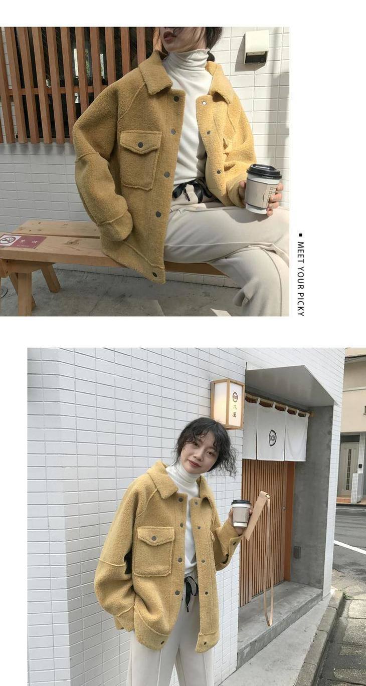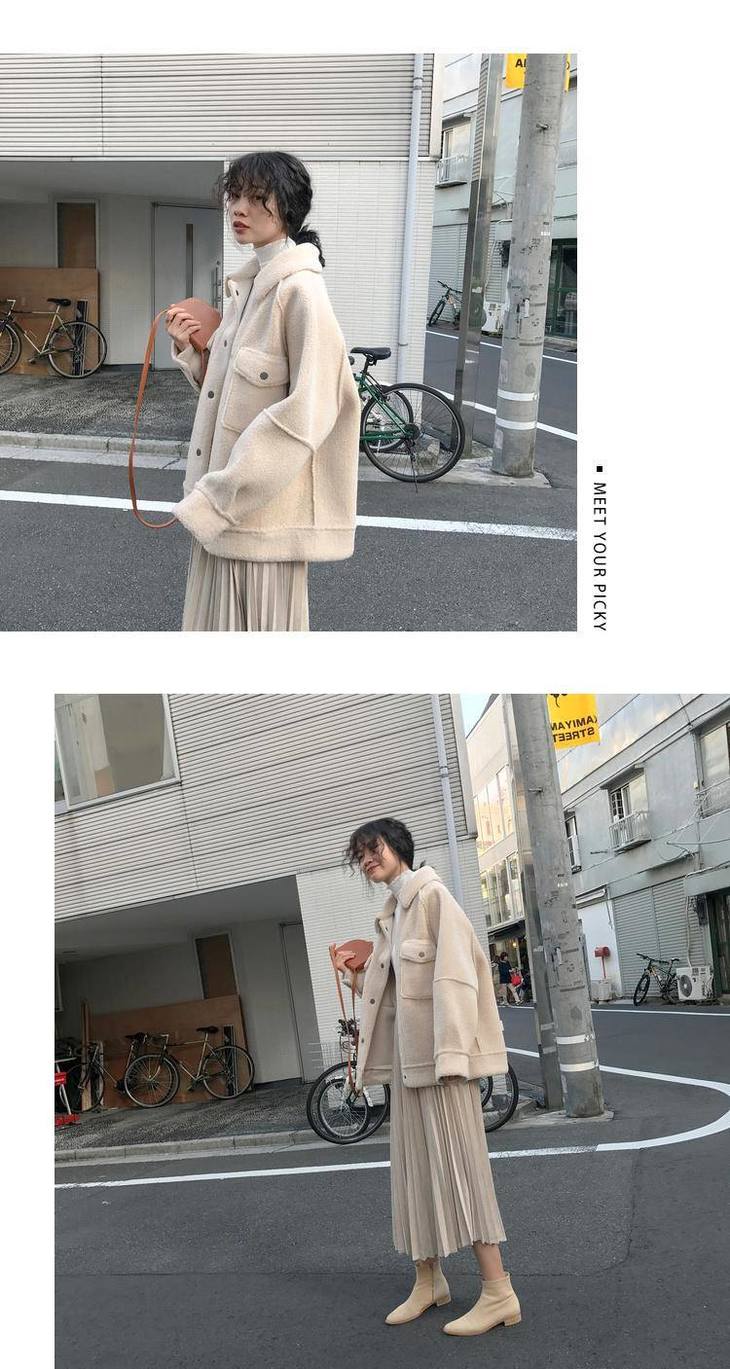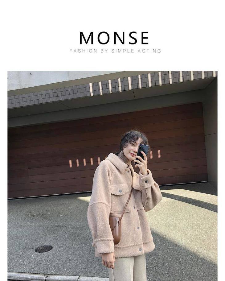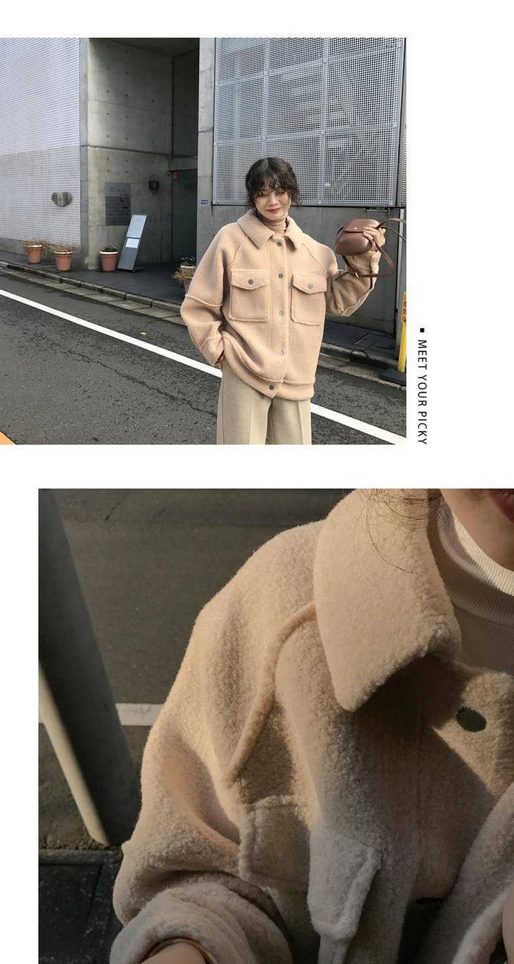 秋冬新款毛绒皮毛一体棉衣女宽松显瘦新款宽松毛绒夹克上衣