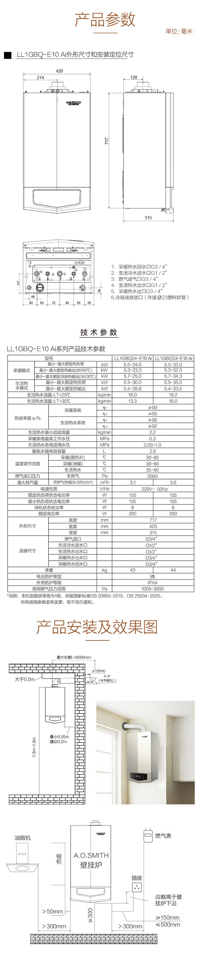 史密斯(12680)燃气壁挂炉LL1GBQ33-E10Ai 天然气家用地暖采暖热水两用炉 一级能效地暖气供暖锅炉 Ai升级款