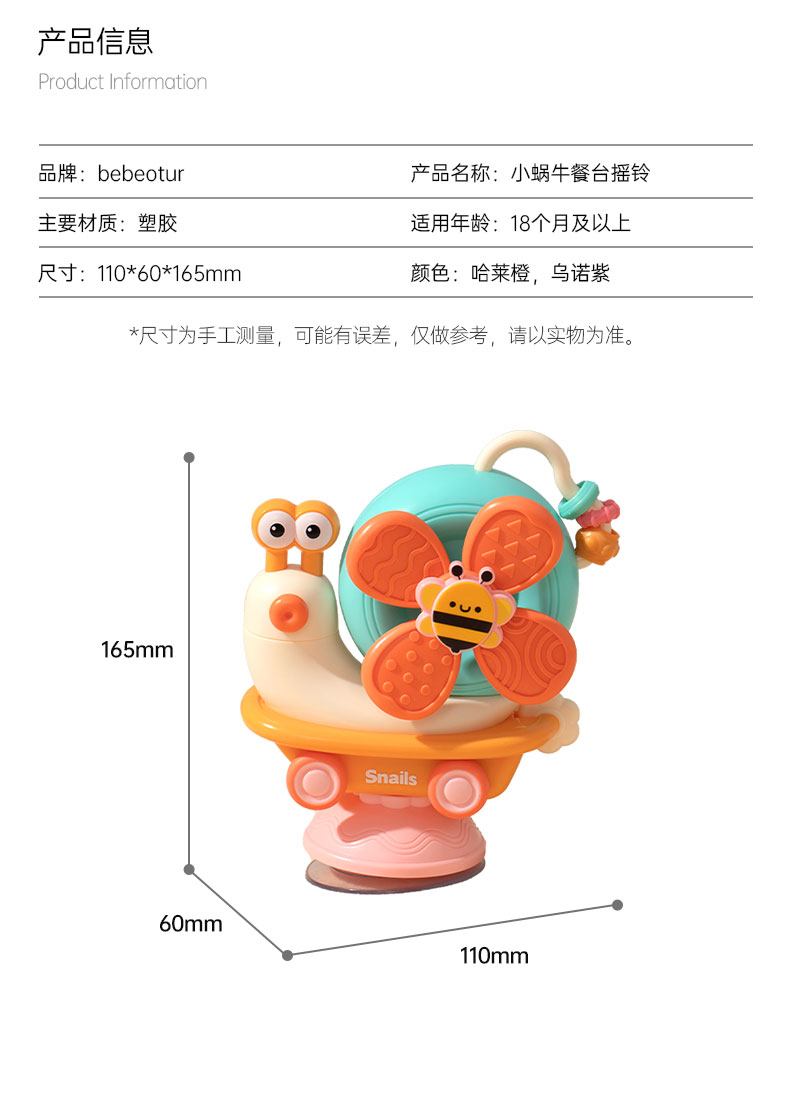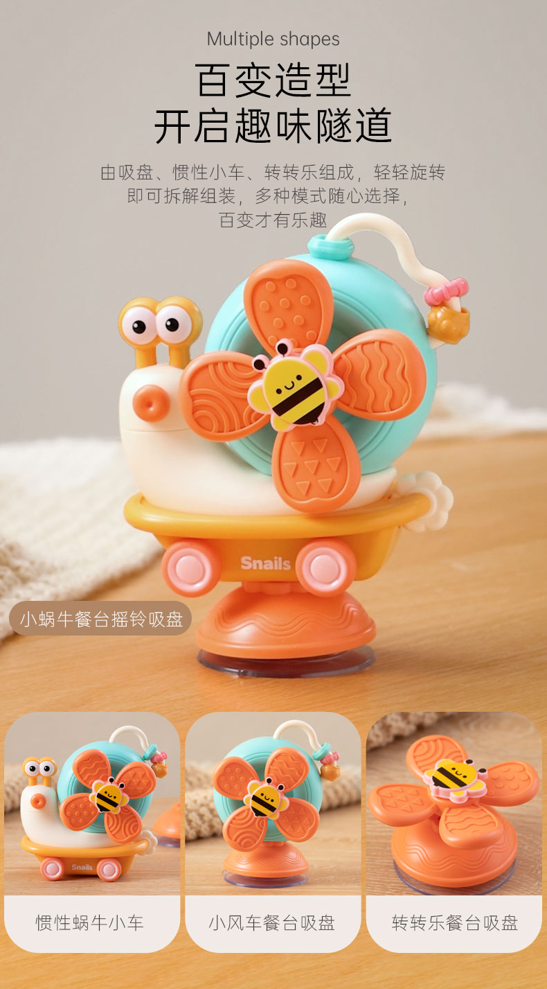 bebetour宝宝吃饭转转乐餐椅玩具0-1岁婴儿安抚摇铃儿童餐台摇铃