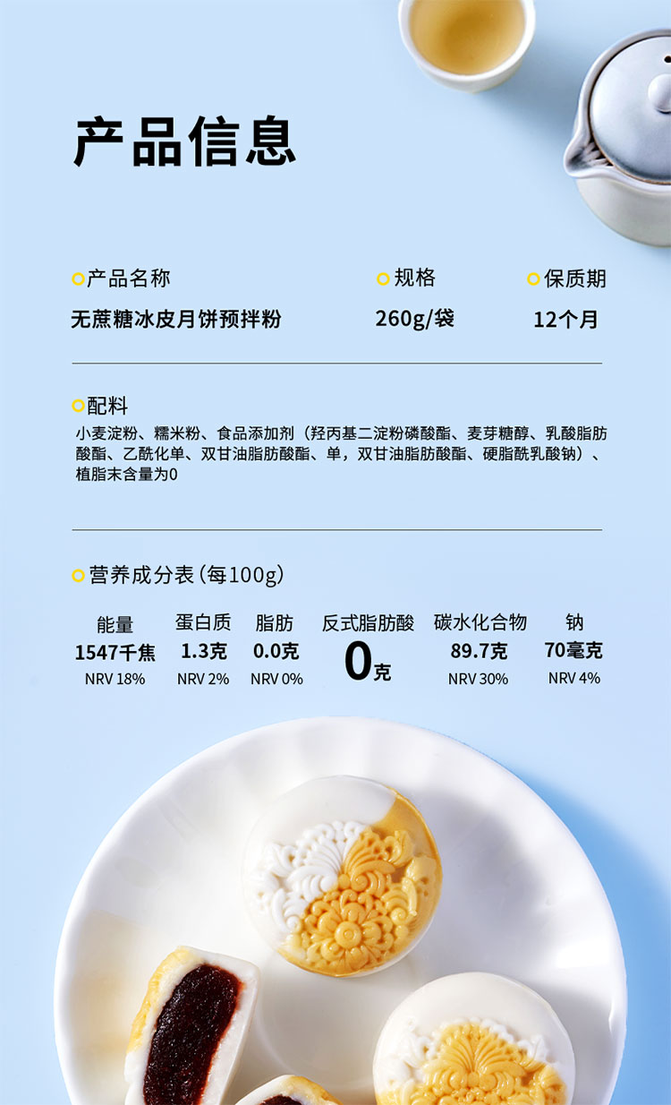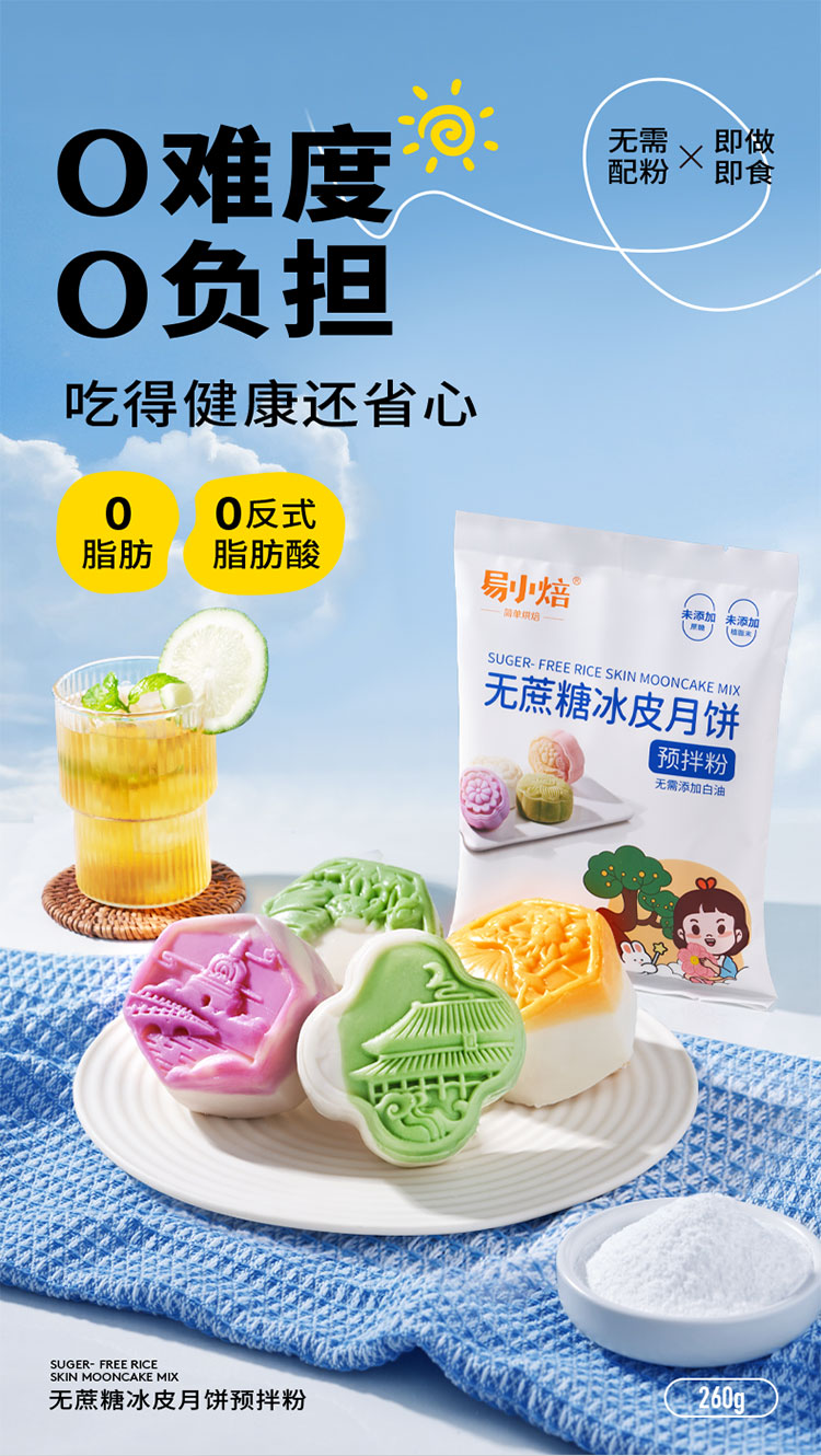 易小焙无蔗糖冰皮月饼专用粉260g自制diy套装材料冰皮月饼预拌粉