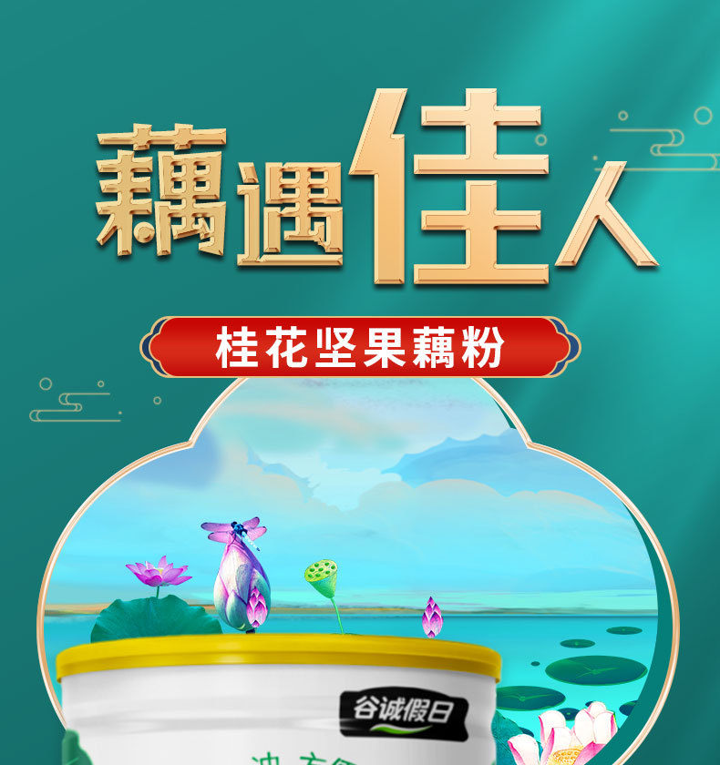 【2罐】每日藕粉桂花坚果羹莲藕粉,无糖精免煮、即食冲饮、营养早餐麦片、代餐谷物、500g/罐