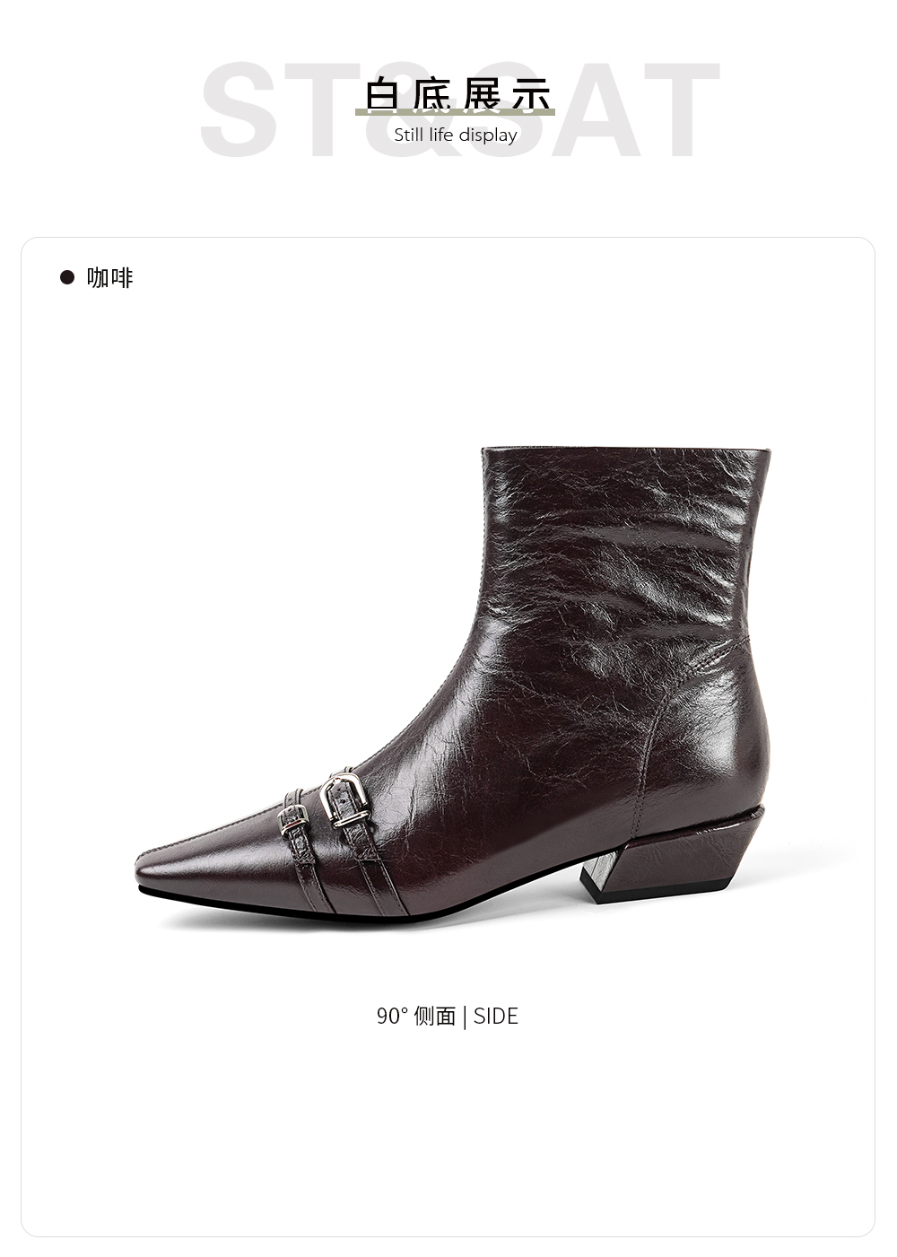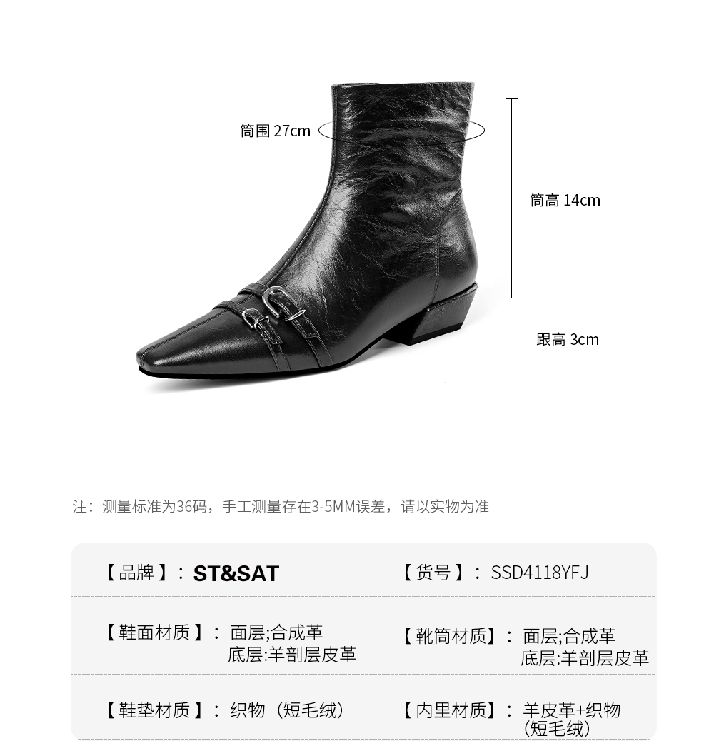 【绒里可选】星期六英伦风双扣带方头粗跟切尔西SSD4116Y7T/SSD4118YFJ