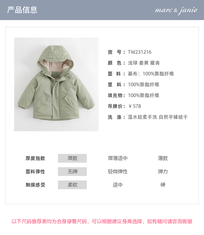 【防泼水】马克珍妮冬装新款 男童户外出行加绒外套231216