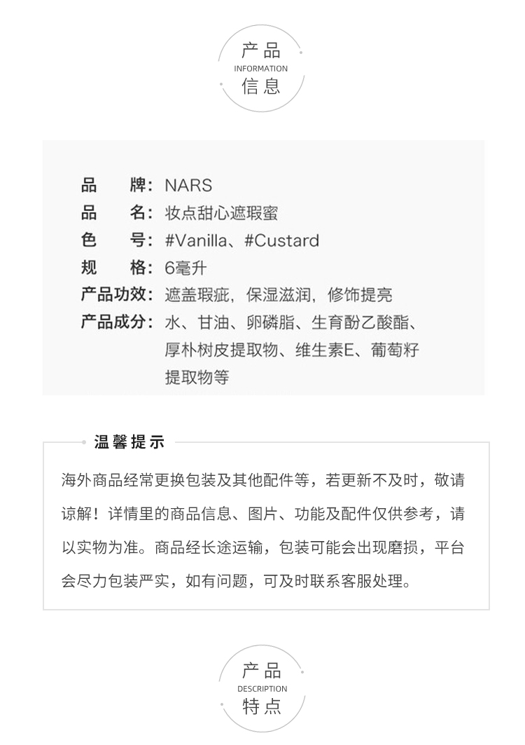 NARS/nars 遮瑕膏遮瑕笔遮瑕蜜 眼袋痘印法令纹 保湿细腻